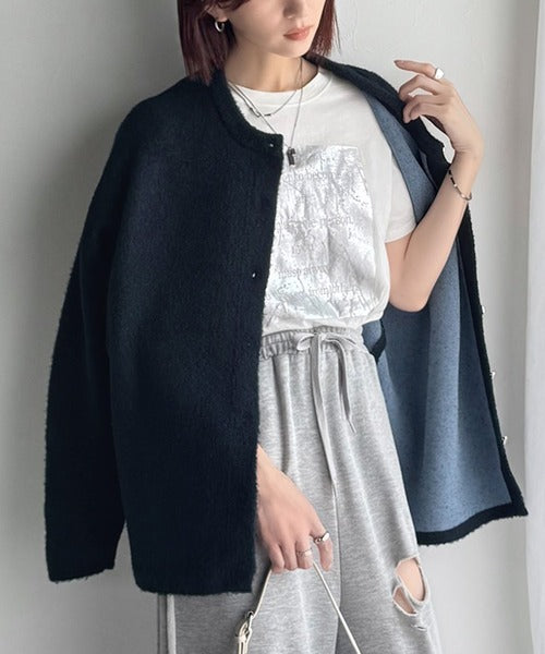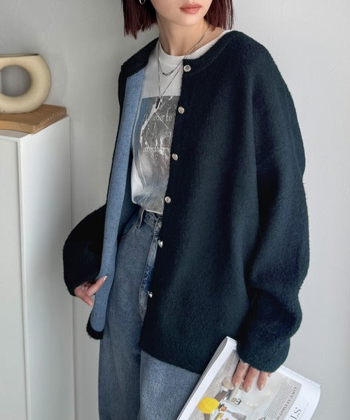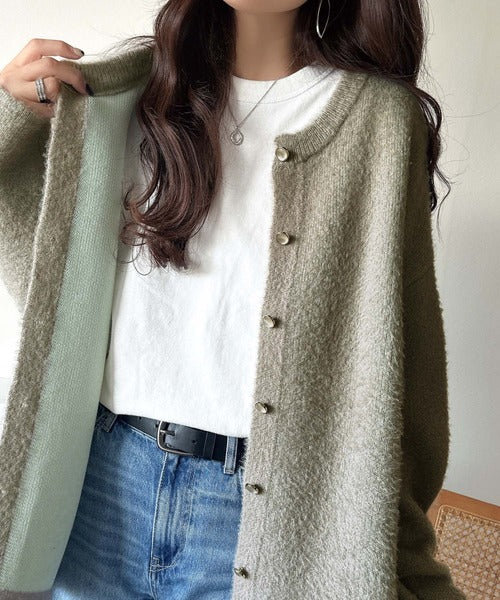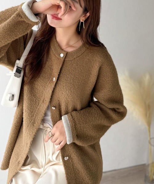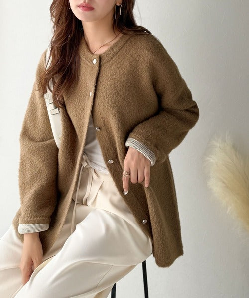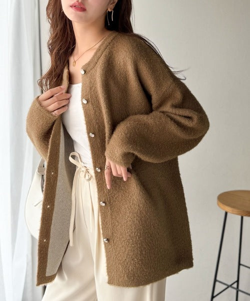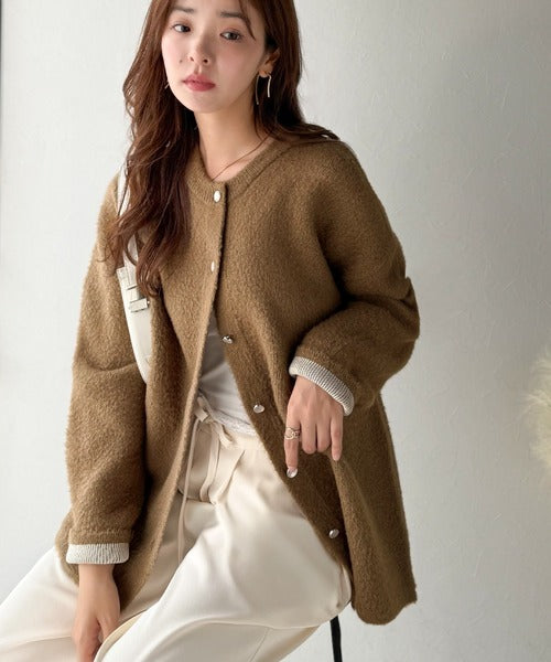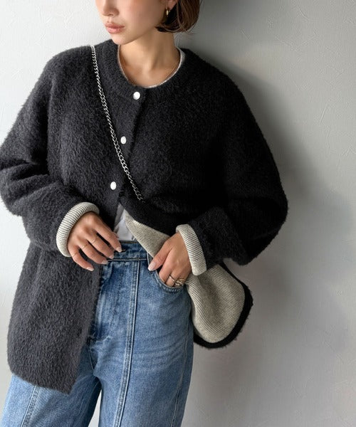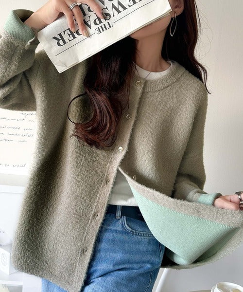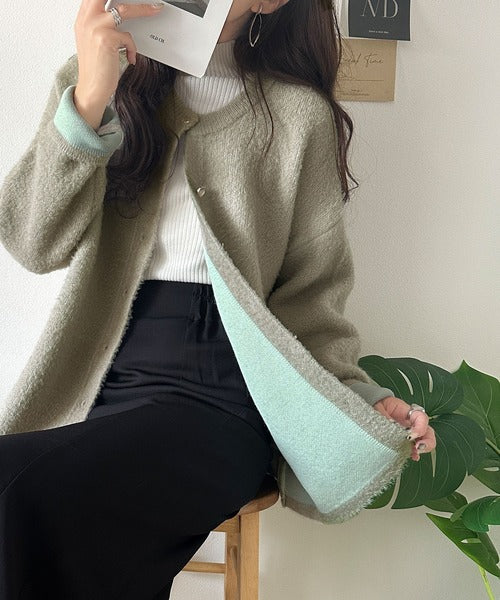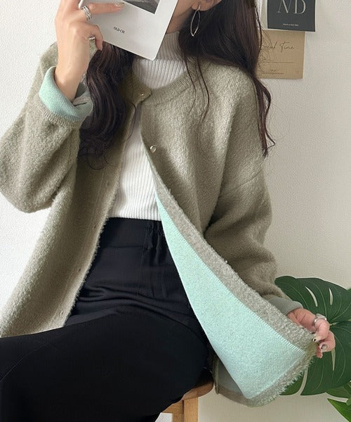 絶妙な配色がお洒落心をくすぐる!ダブルフェイスフェザーカーディガン ce1020286