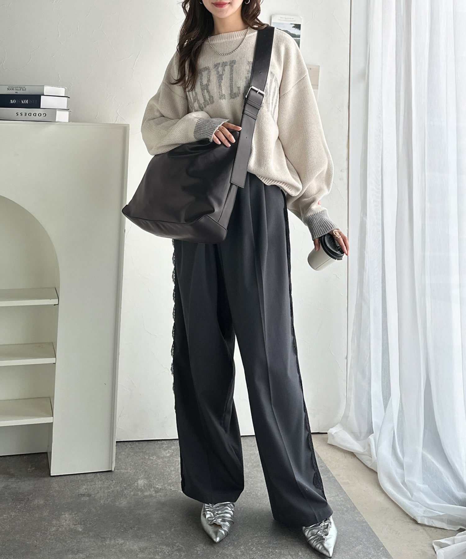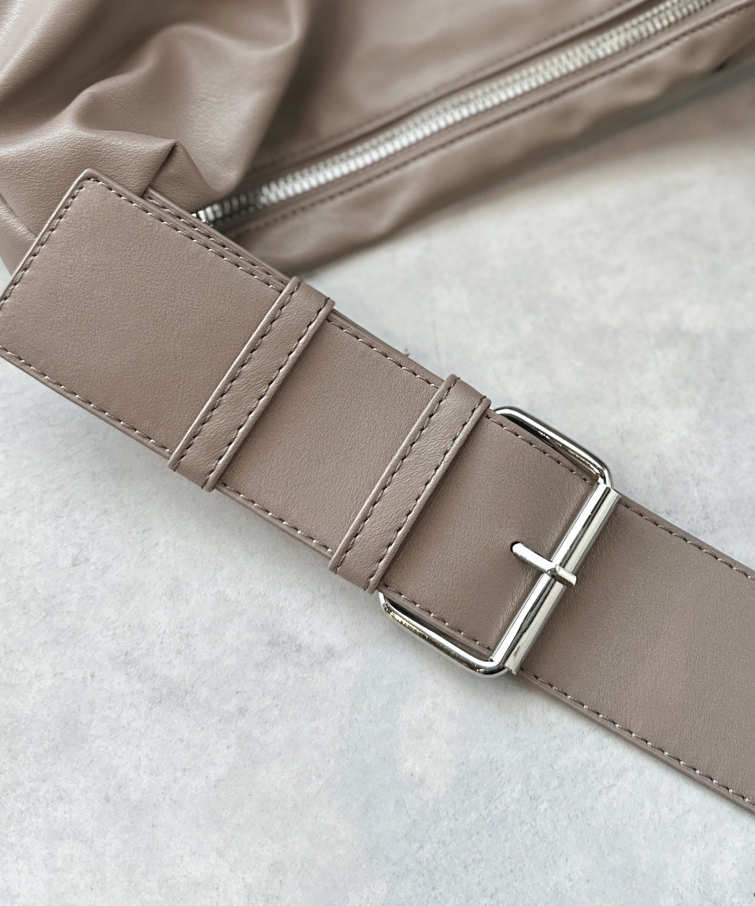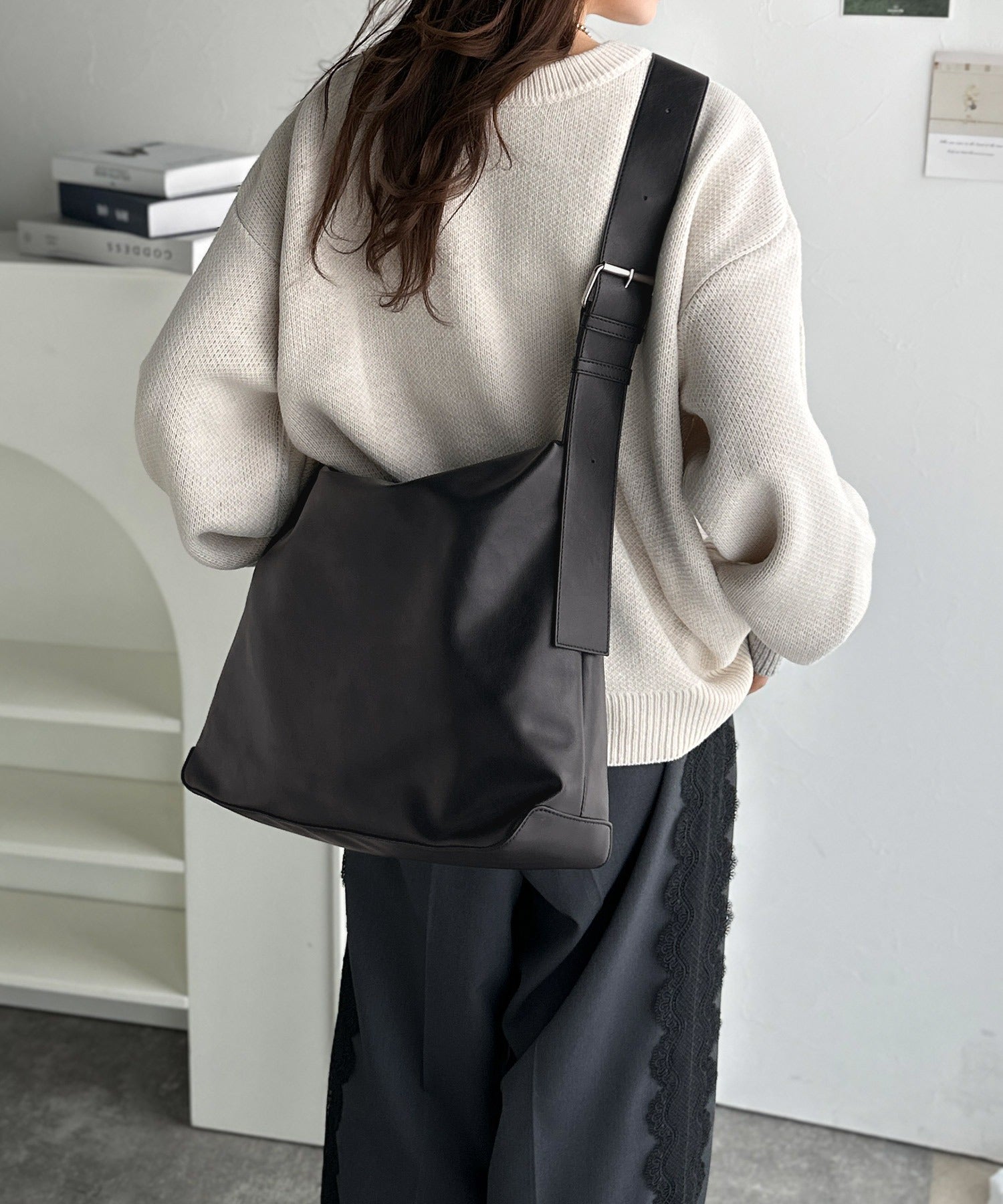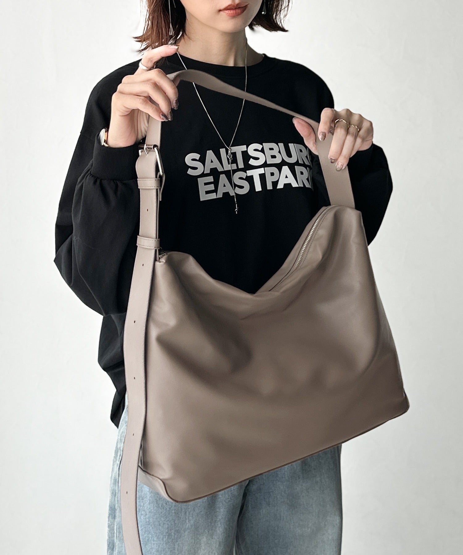 ワイドストラップがアクセントになり、荷物が多い日でも肩への負担を軽減。