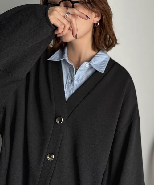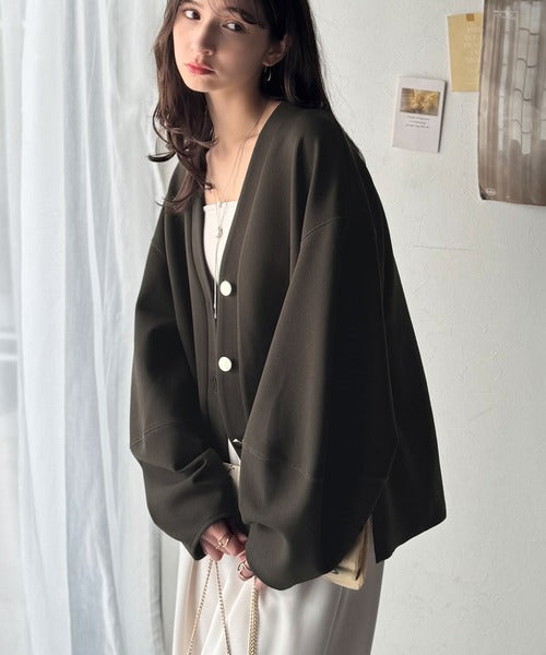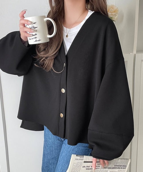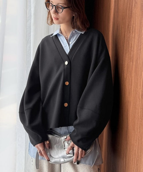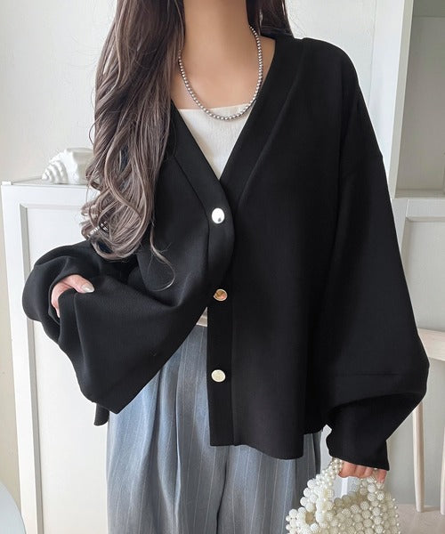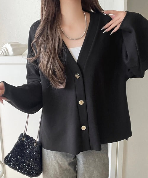 たっぽり袖×ゴールドボタンの欲張りカーデ。ランタンスリーブ金釦Vネックカーディガン ce1110150