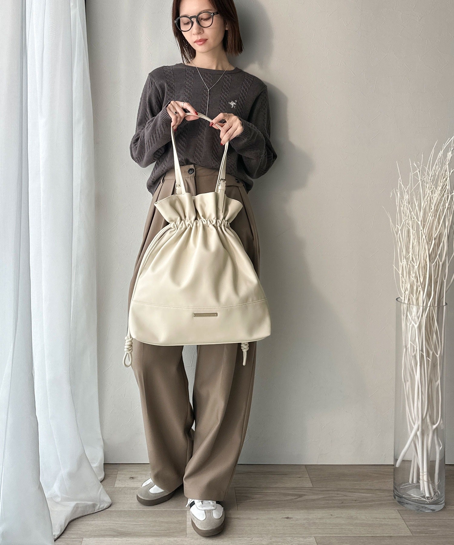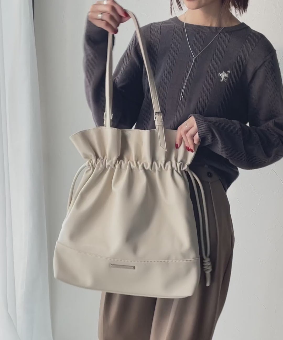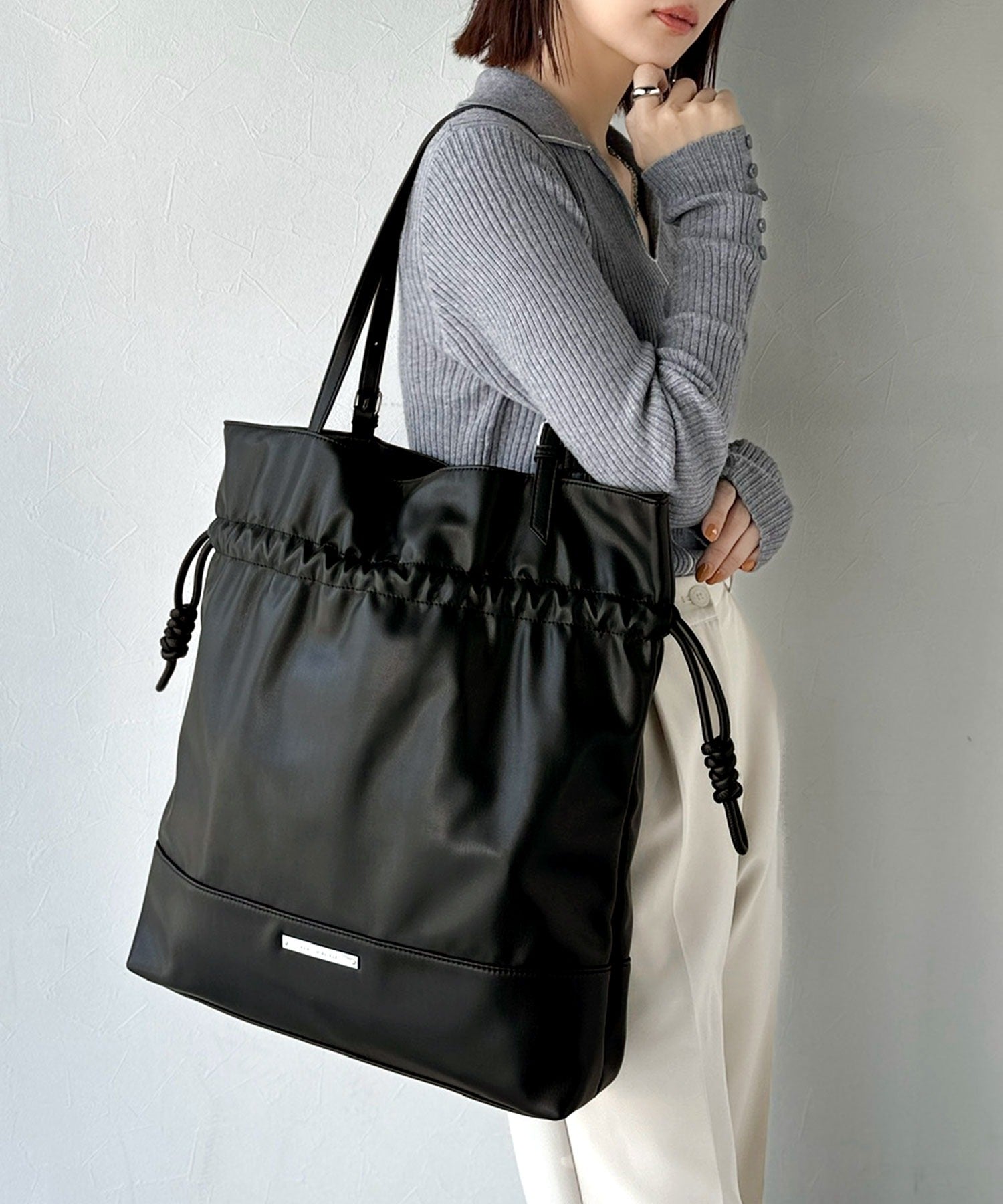 【classicalelf】きゅっと絞って可愛さ◎フェイクレザービッグトートバッグ ce1179073