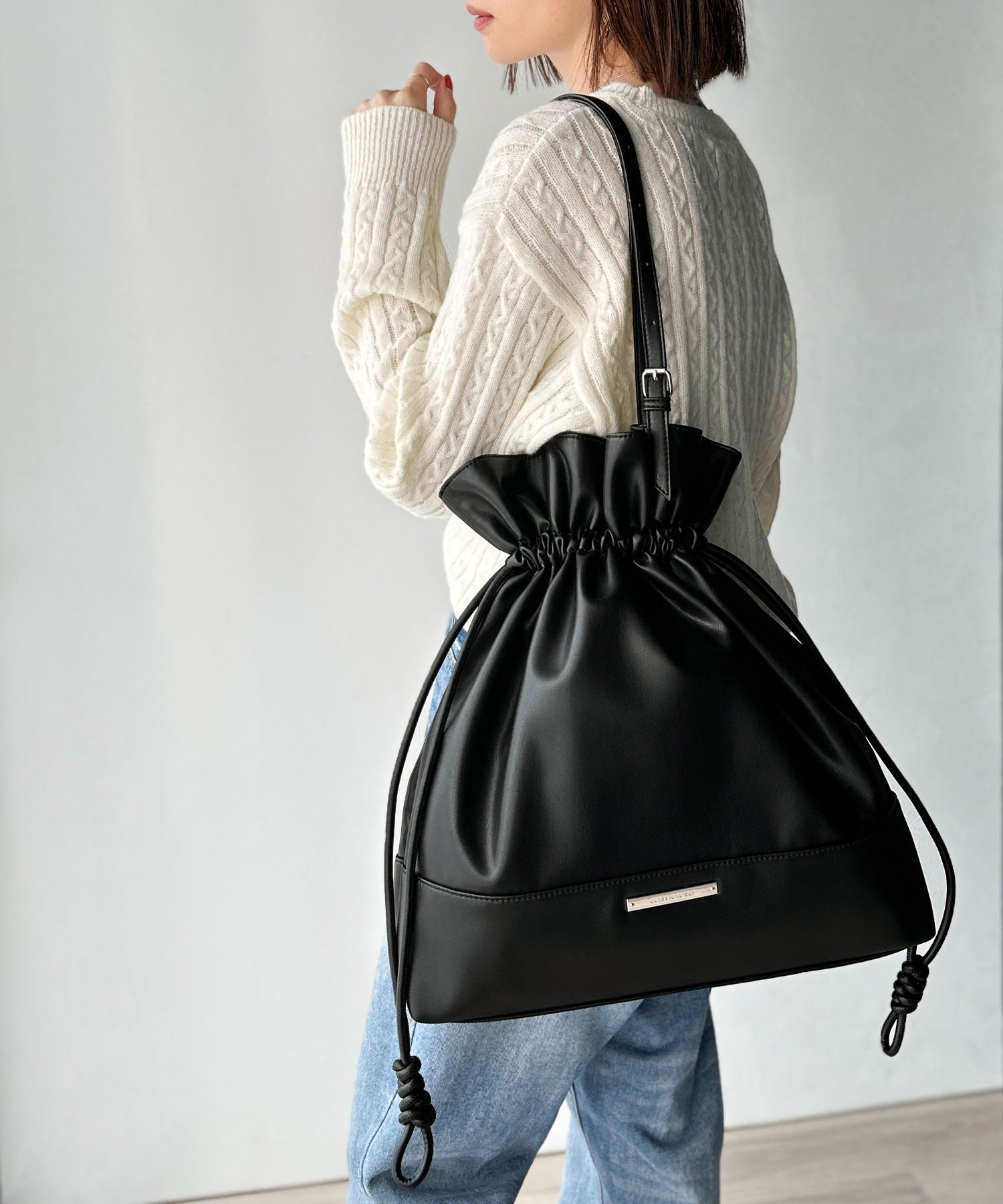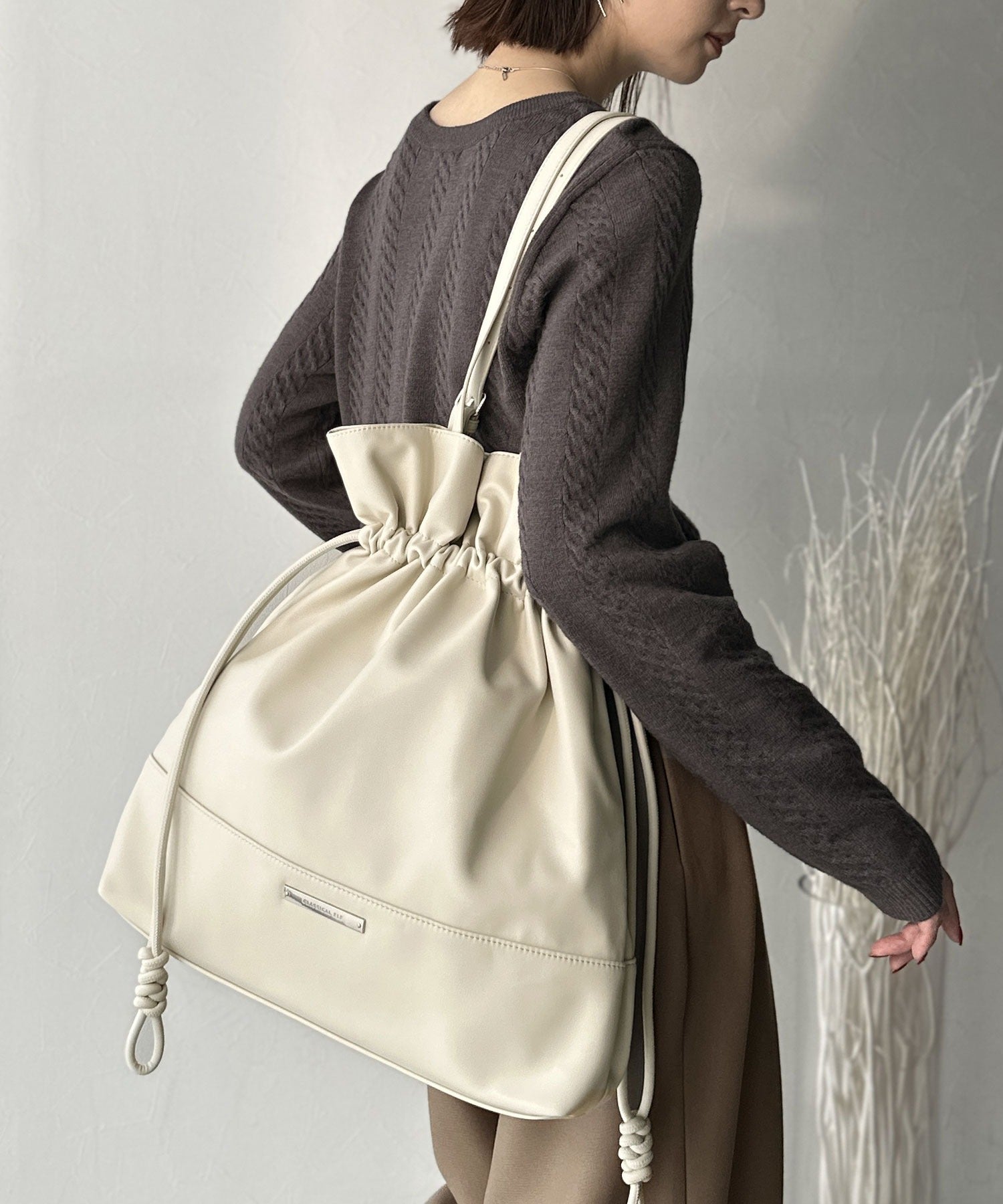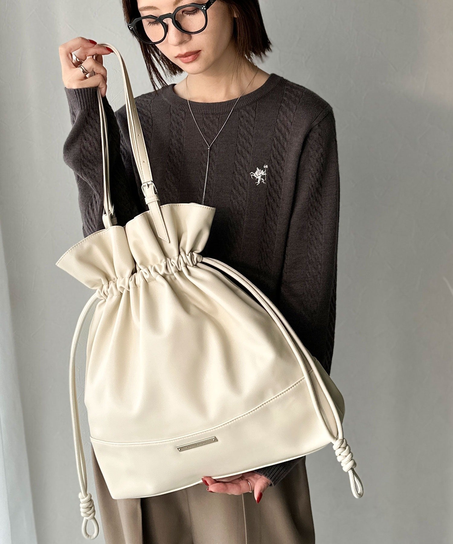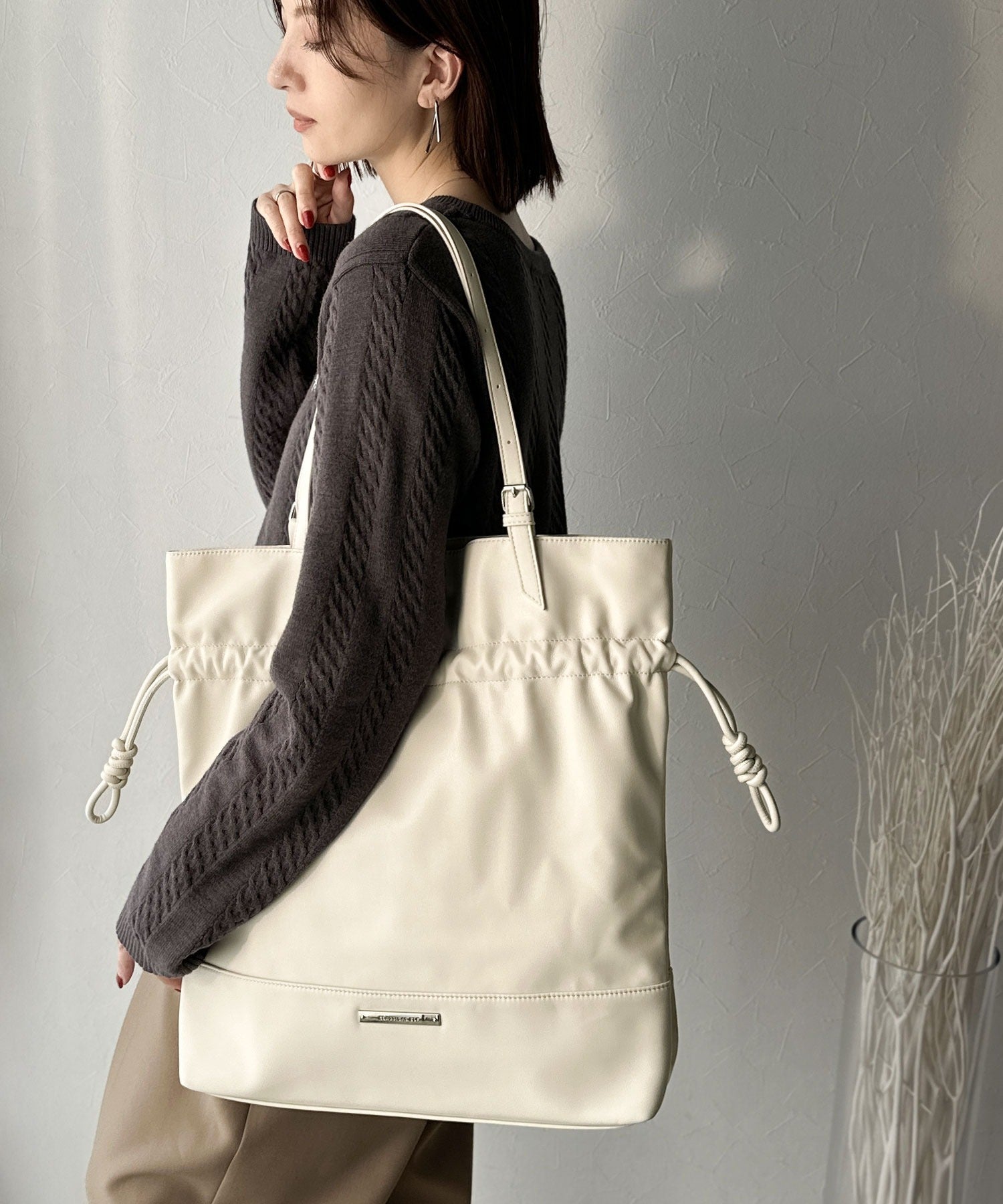 【classicalelf】きゅっと絞って可愛さ◎フェイクレザービッグトートバッグ ce1179073