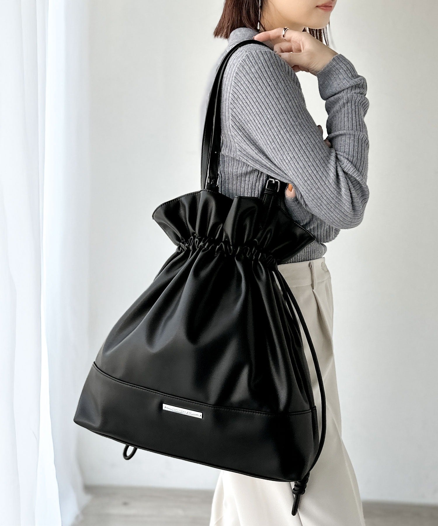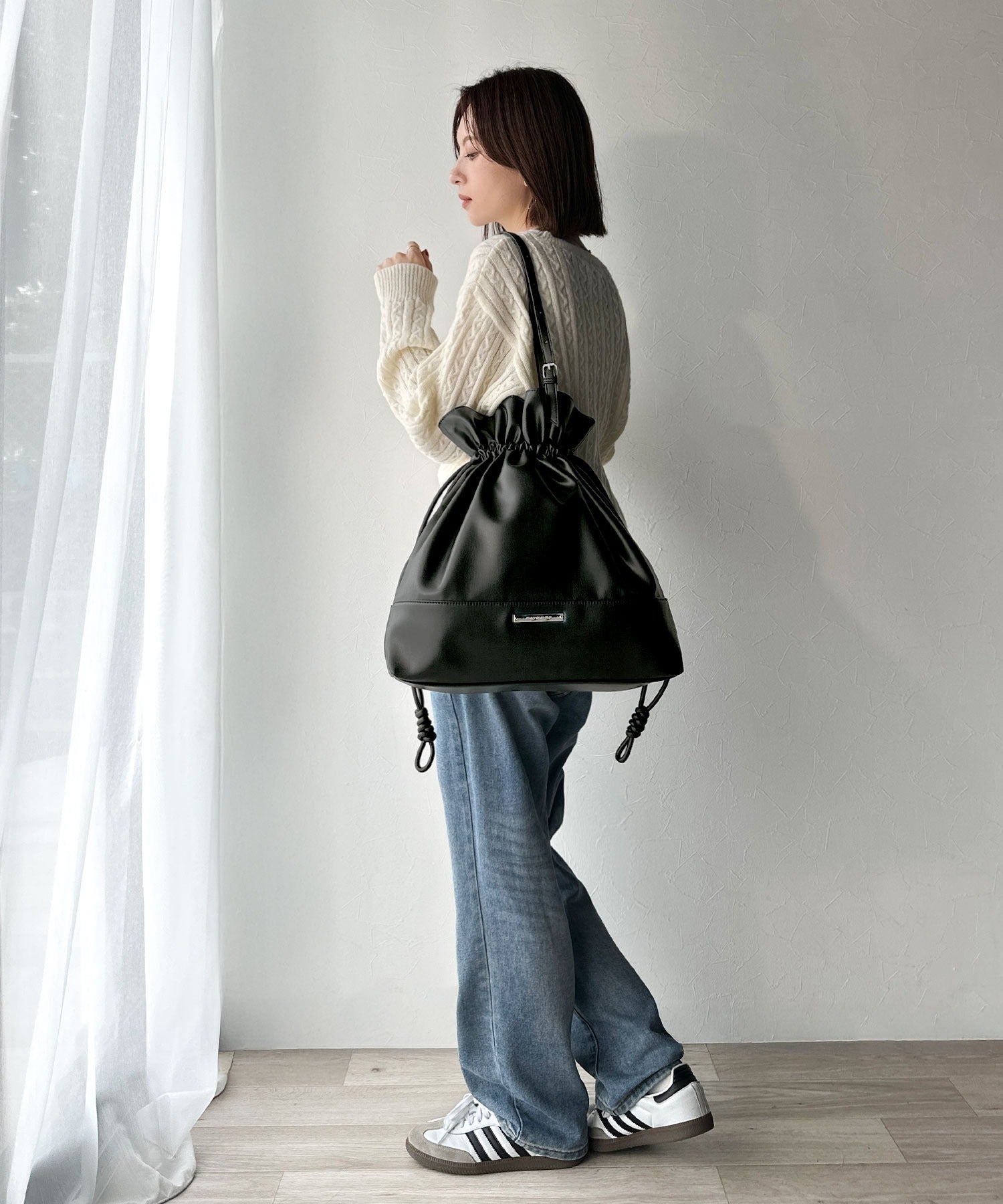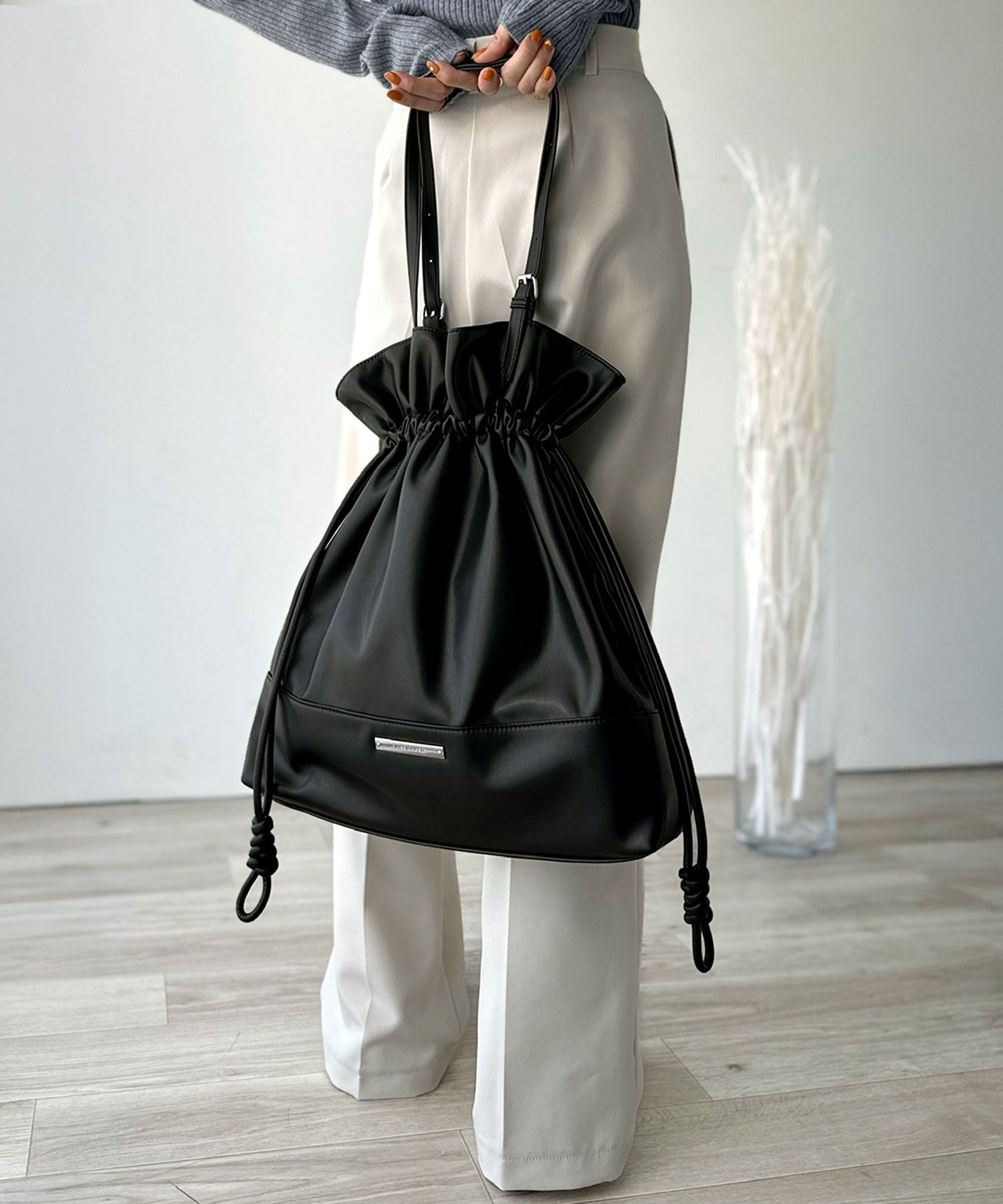 巾着のように口をきゅっと絞ることで、丸みのある可愛らしいシルエットを楽しめます。
