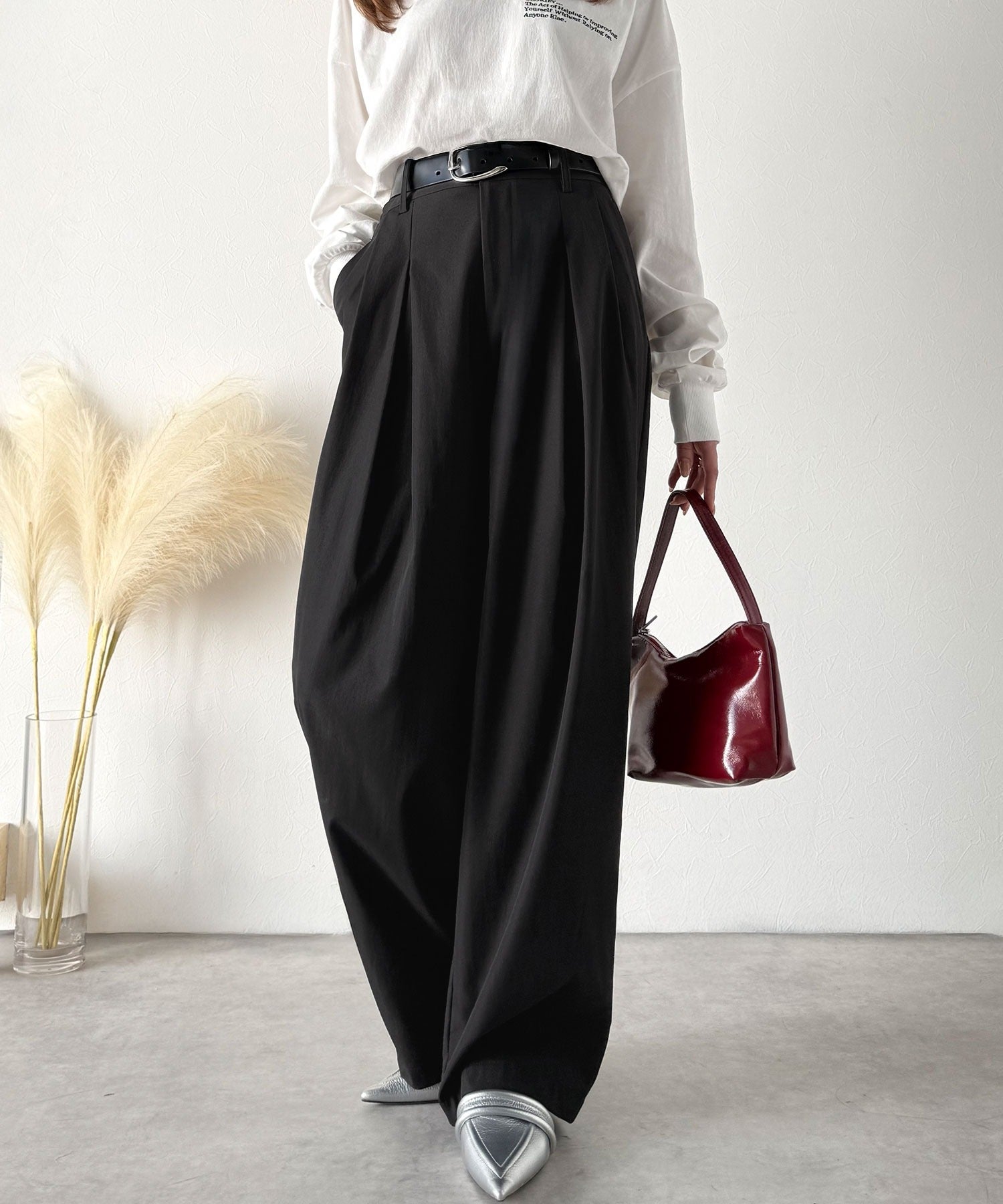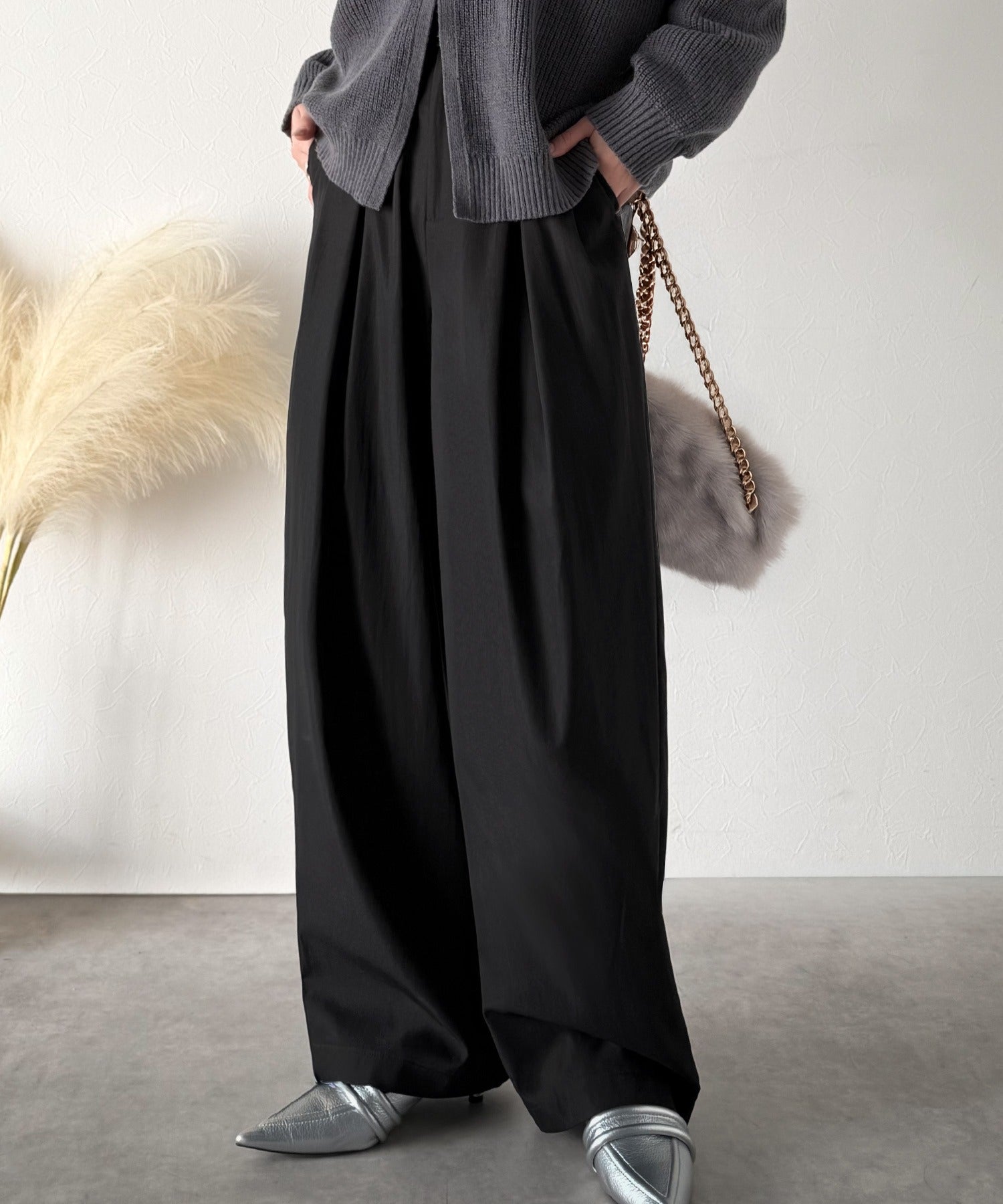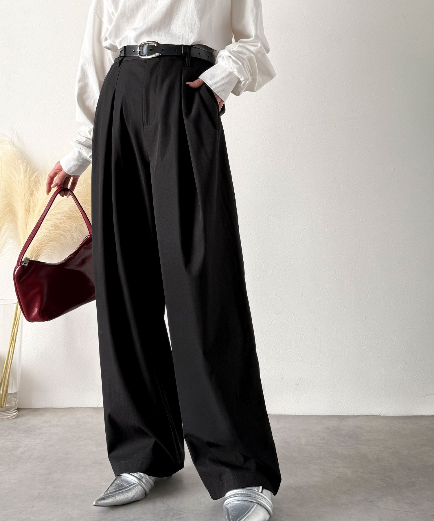 ウエストタックが生み出す立体シルエット。