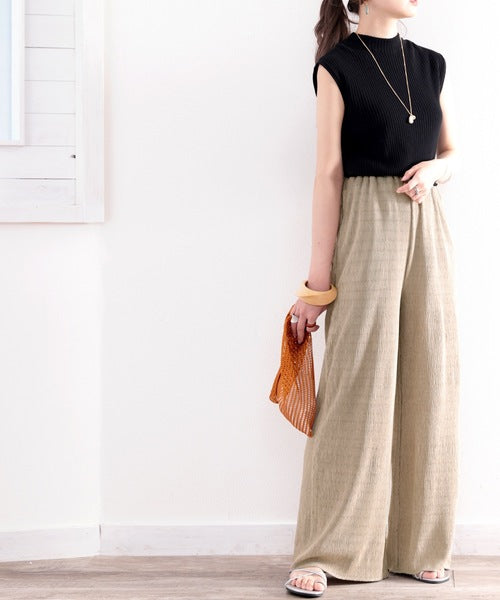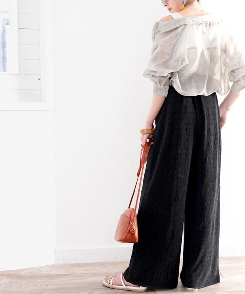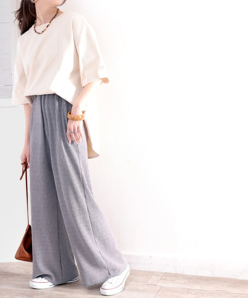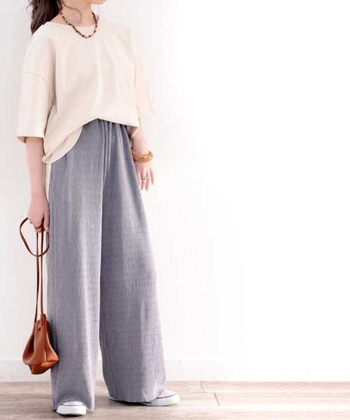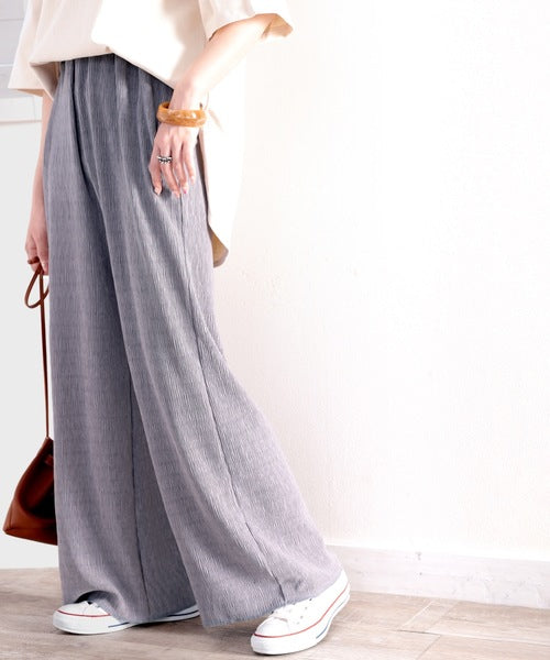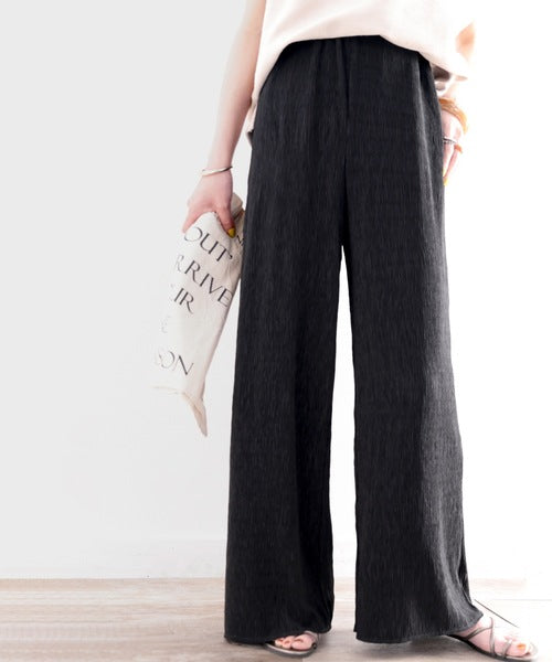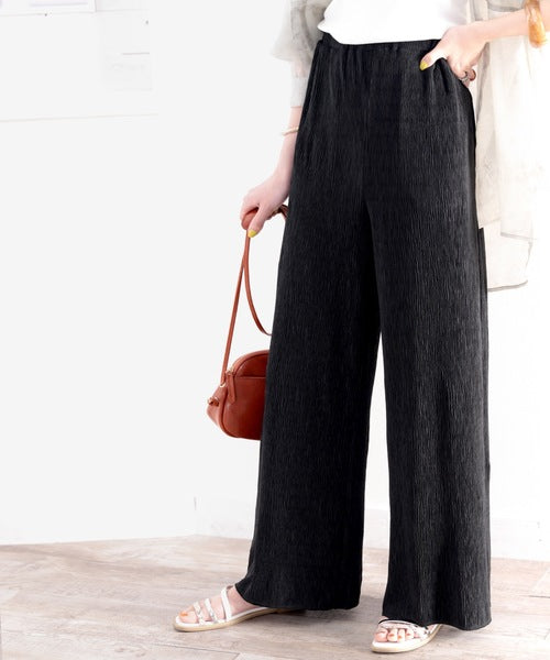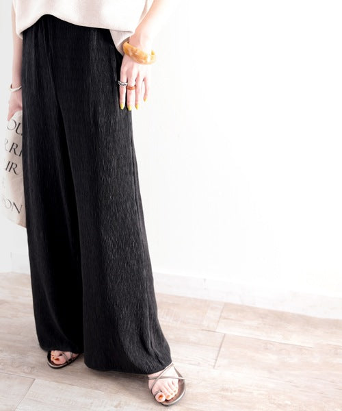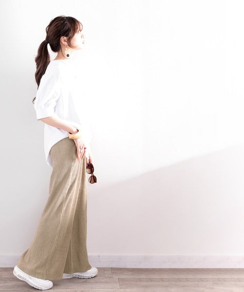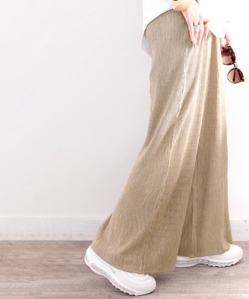 クリンクル加工(シワ加工)プリーツで肌へ張り付かず、ストレスフリーな履き心地。
