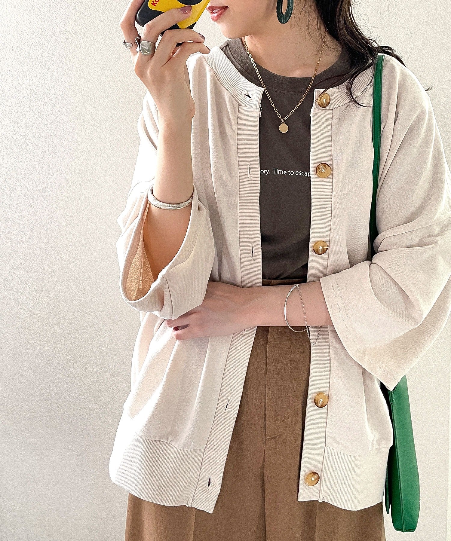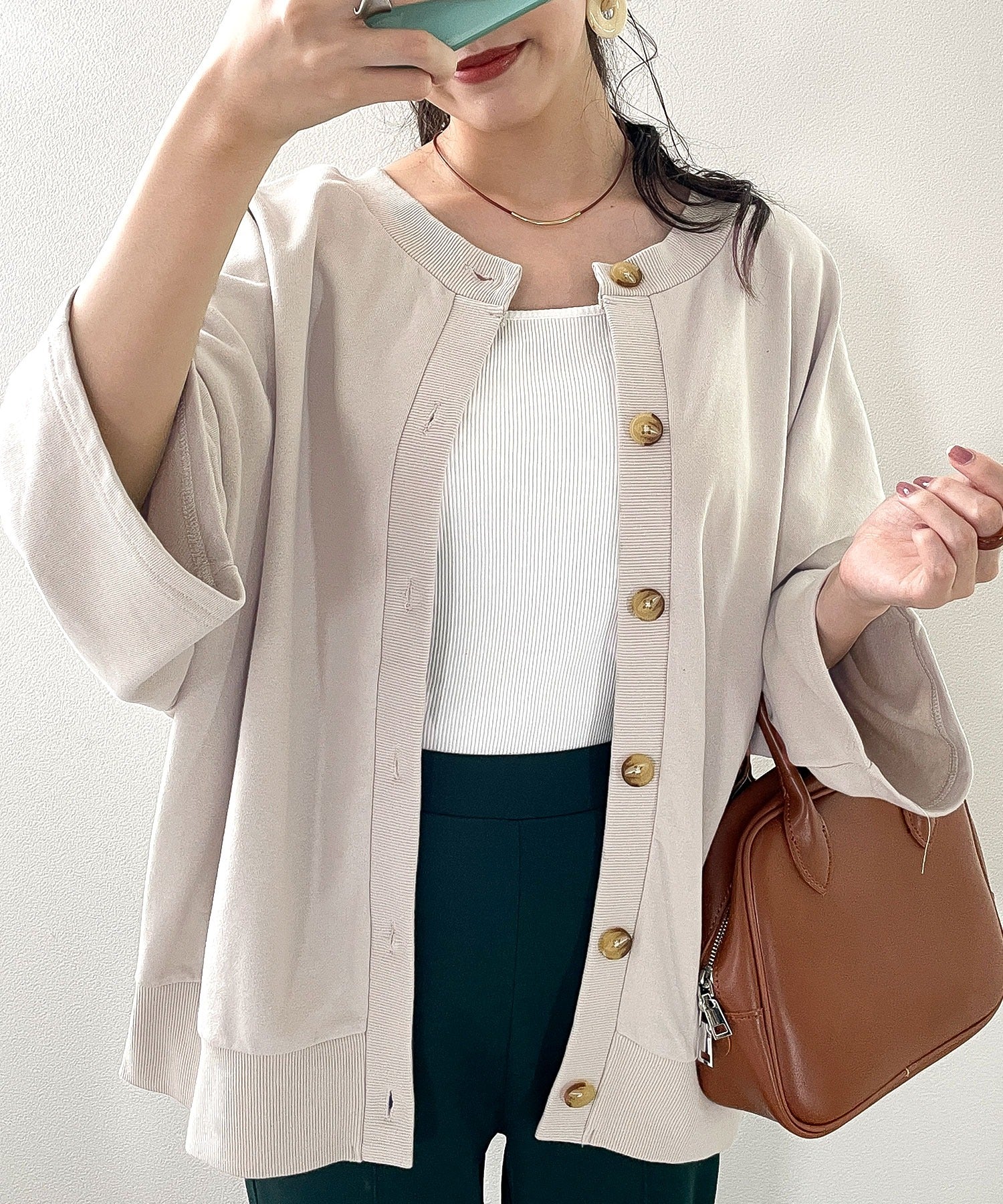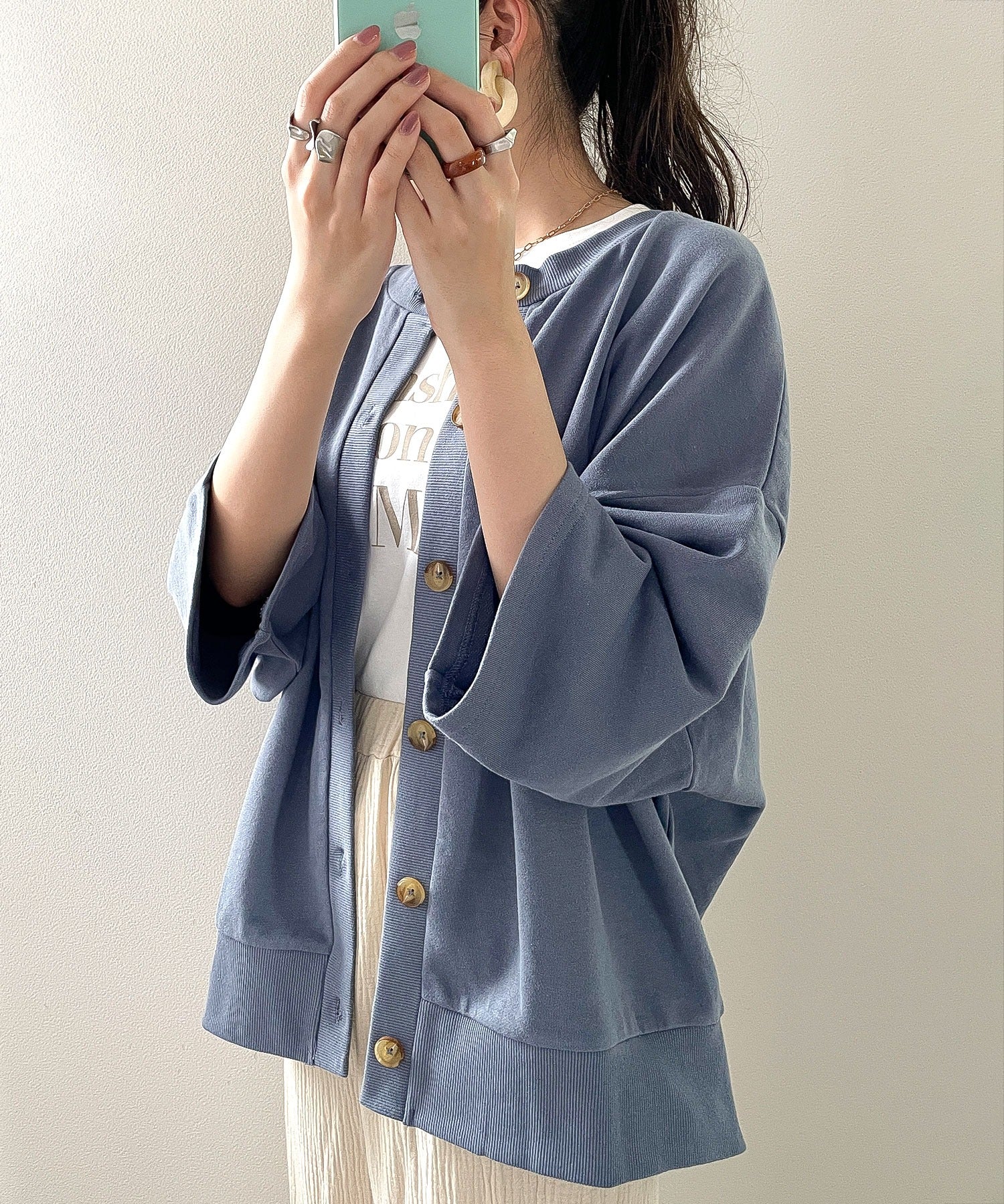 【sustaina+】【family+】前後で表情が変わる。USAコットン裏毛2WAY7分袖カーディガン ce0960036