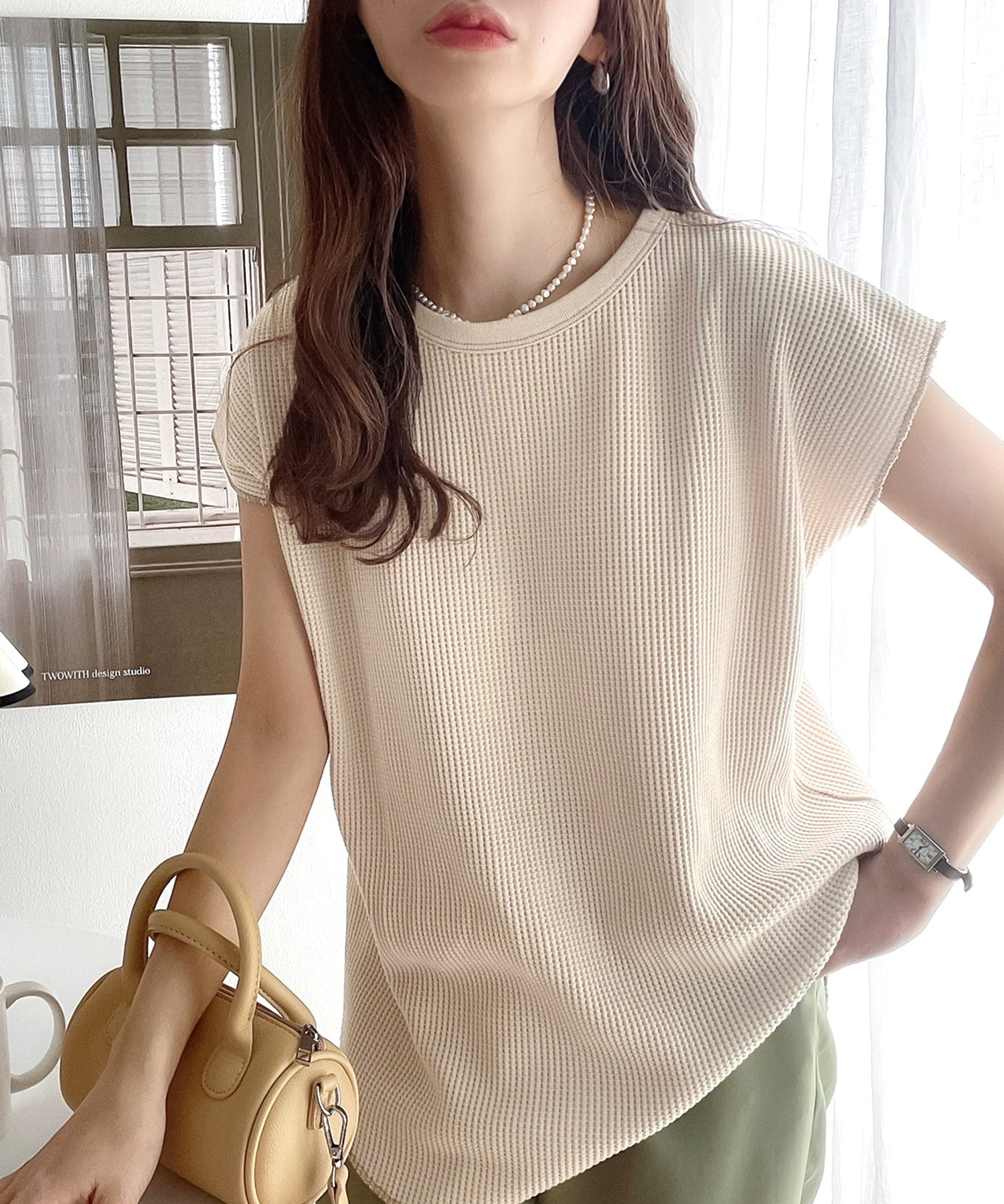 ちょっと長めの袖も華奢感を生むポイント。