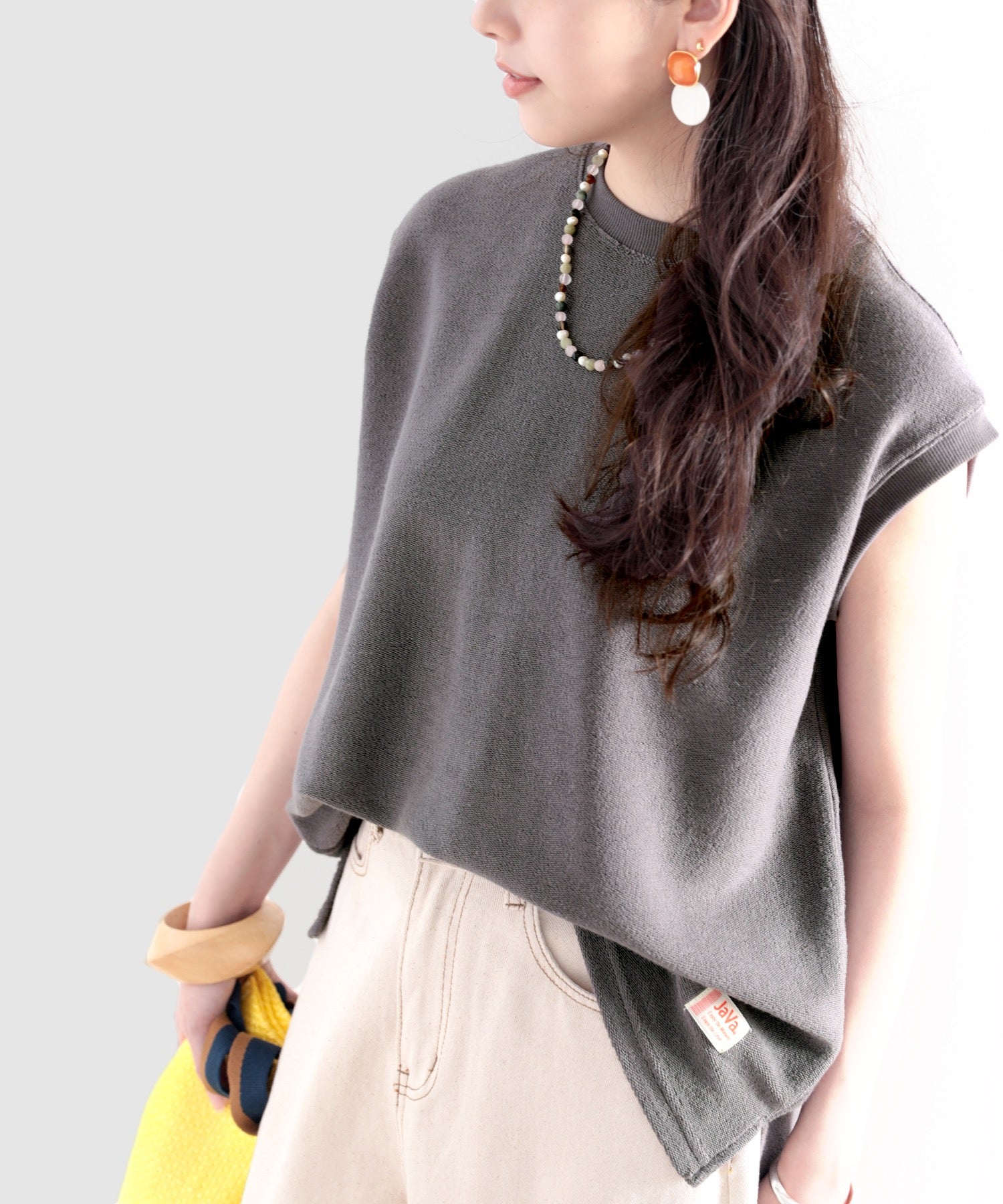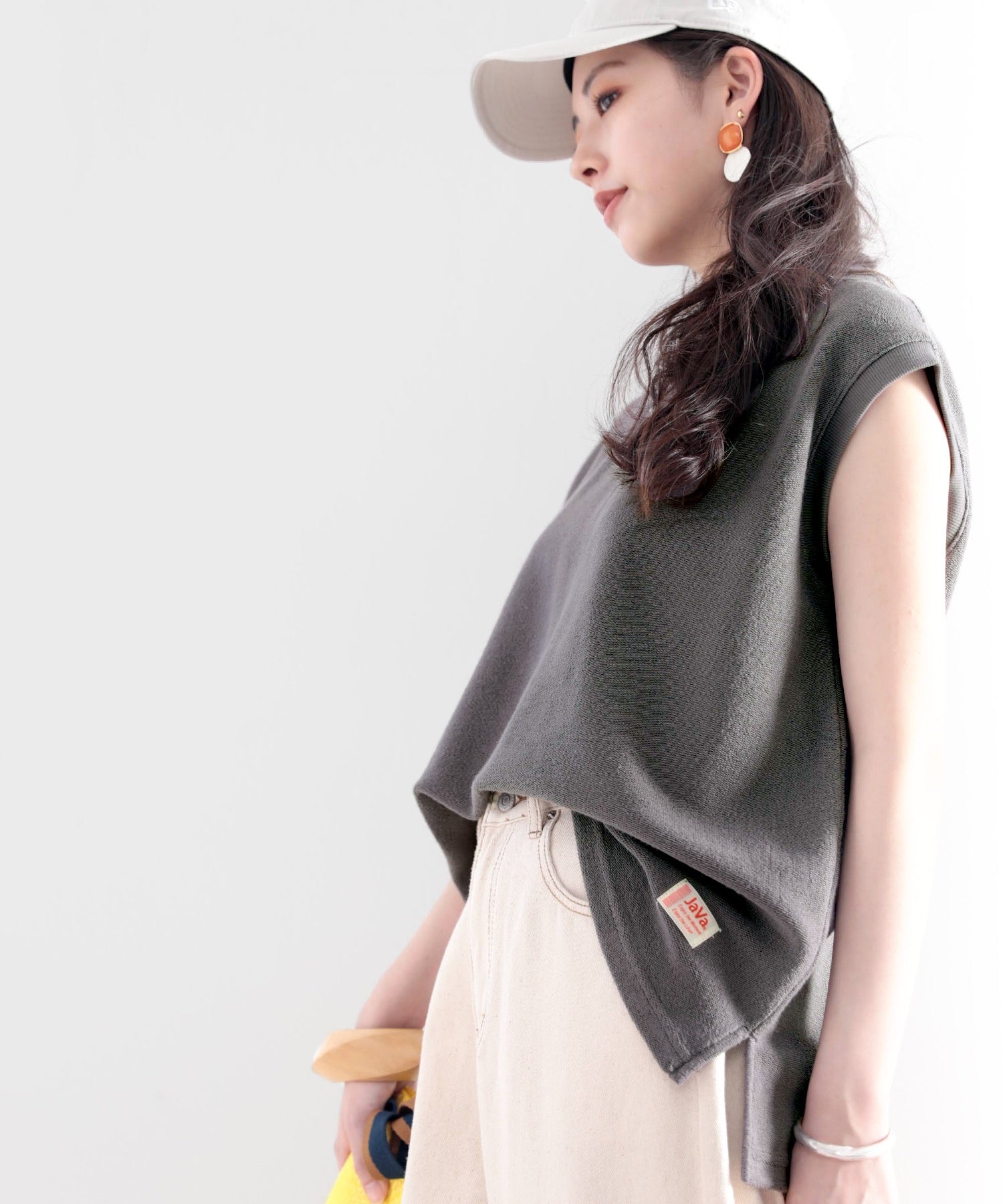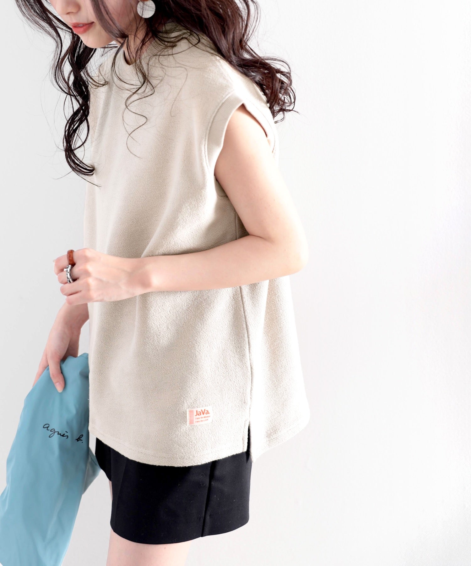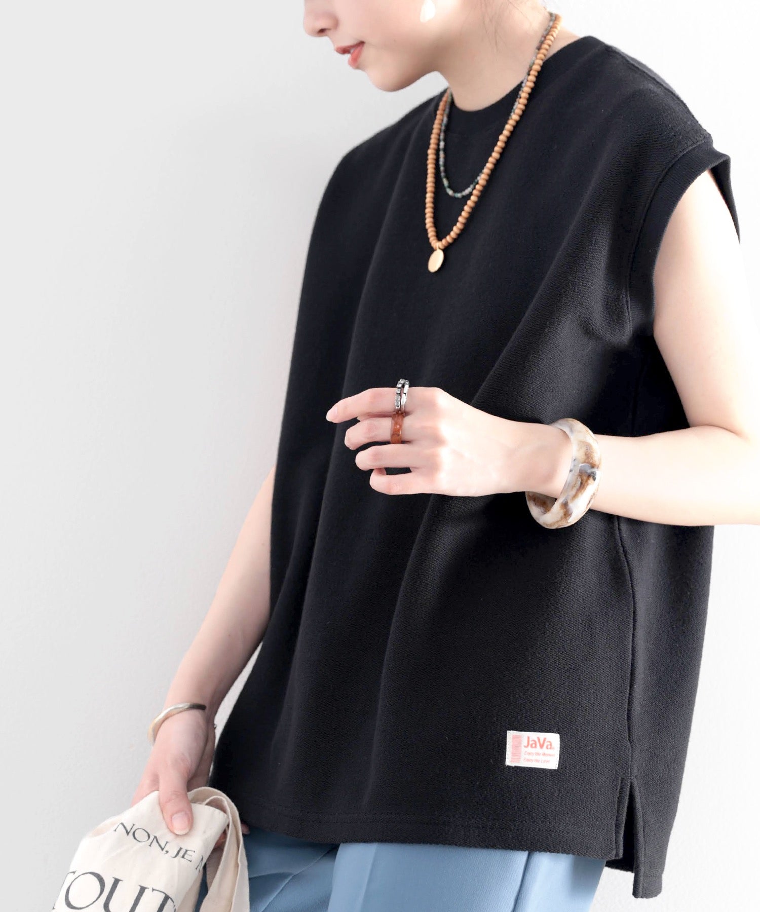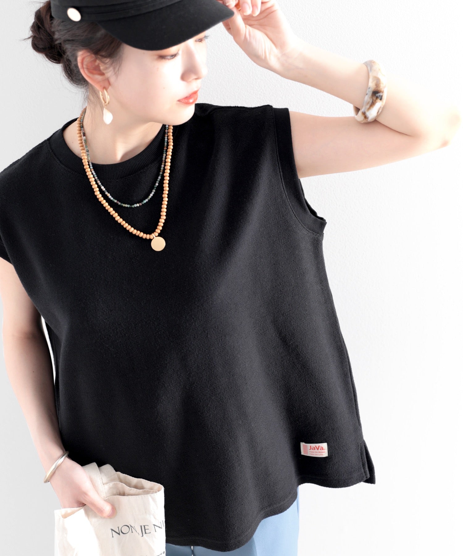 【family+】【sustaina+】《JaVaジャバ コラボ》ふわり柔らか♪USAコットン&パイル地ノースリーブトップス ce0970034