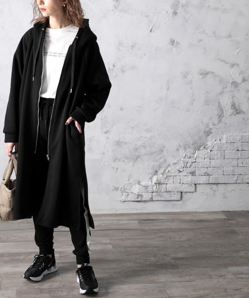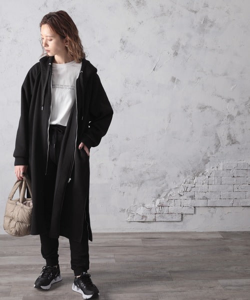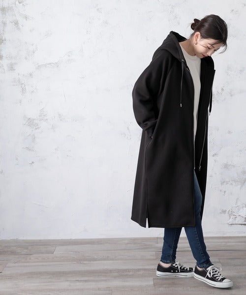 カジュアルな素材感とシンプルで着回ししやすい、定番大人気のロング丈パーカーコート!