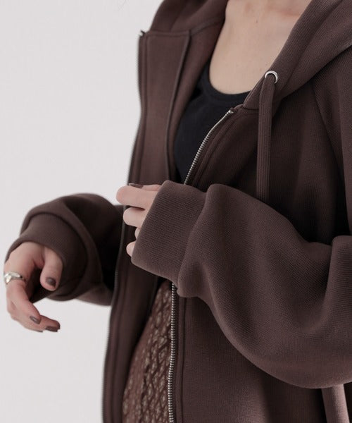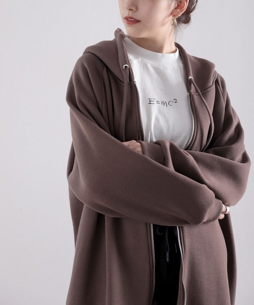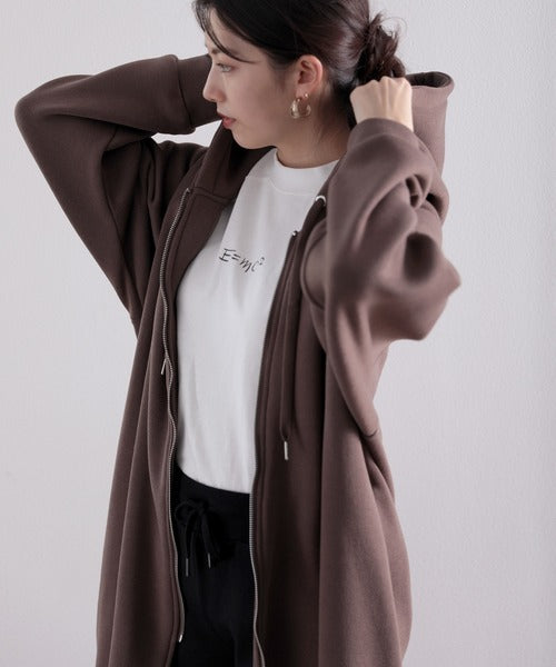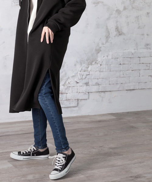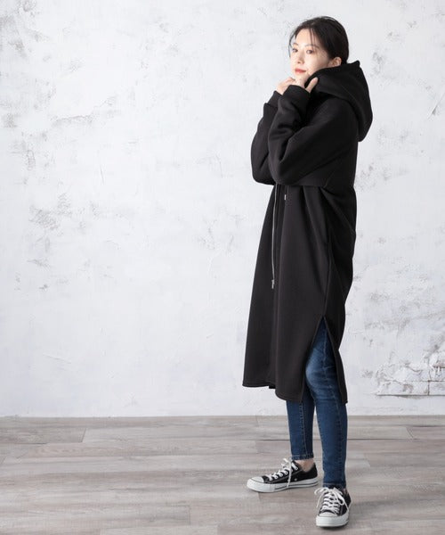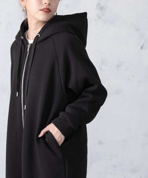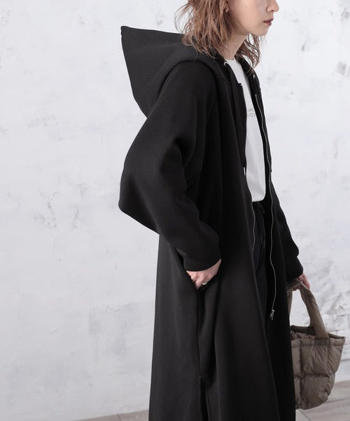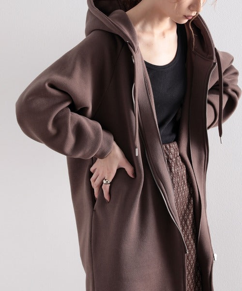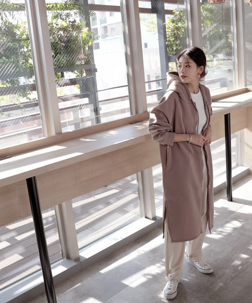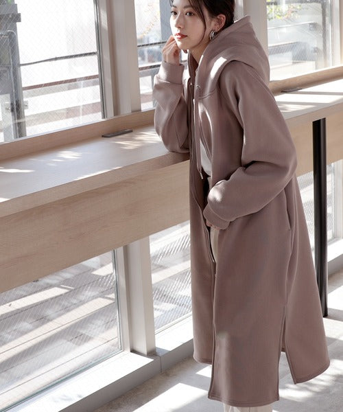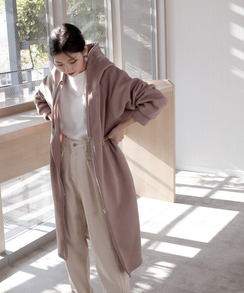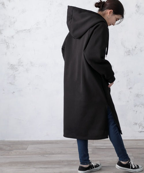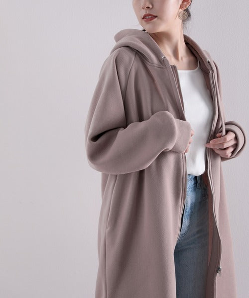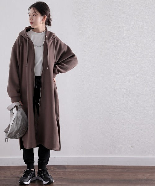 裏起毛無地ロング丈ジップアップフーデットコート(長袖) ce1000002