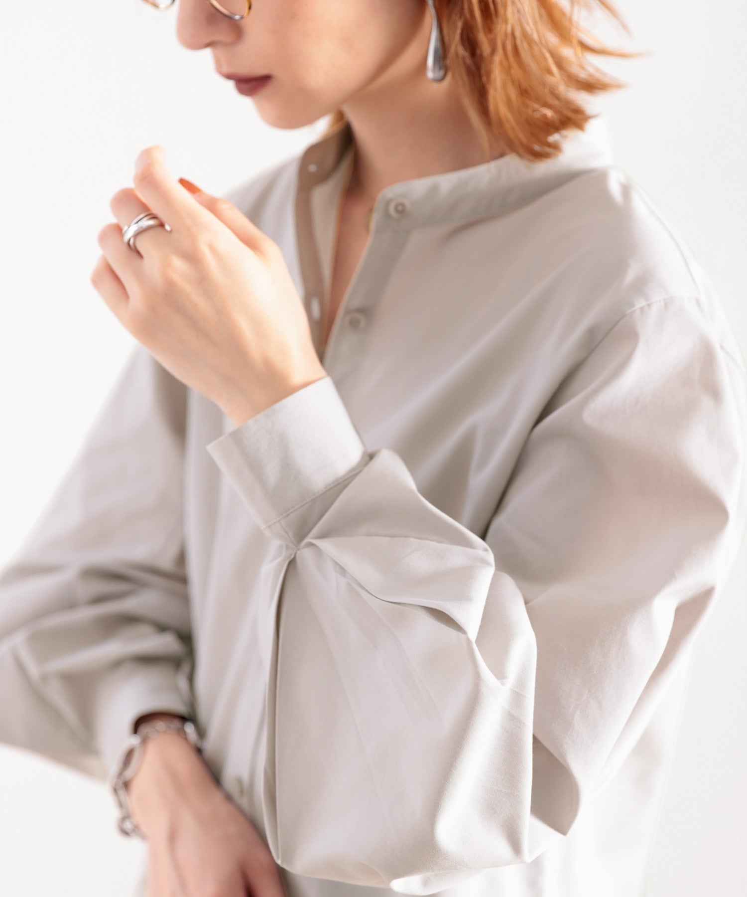 トレンドの1枚!袖Wタックバンドカラーシャツ。 ce1010007