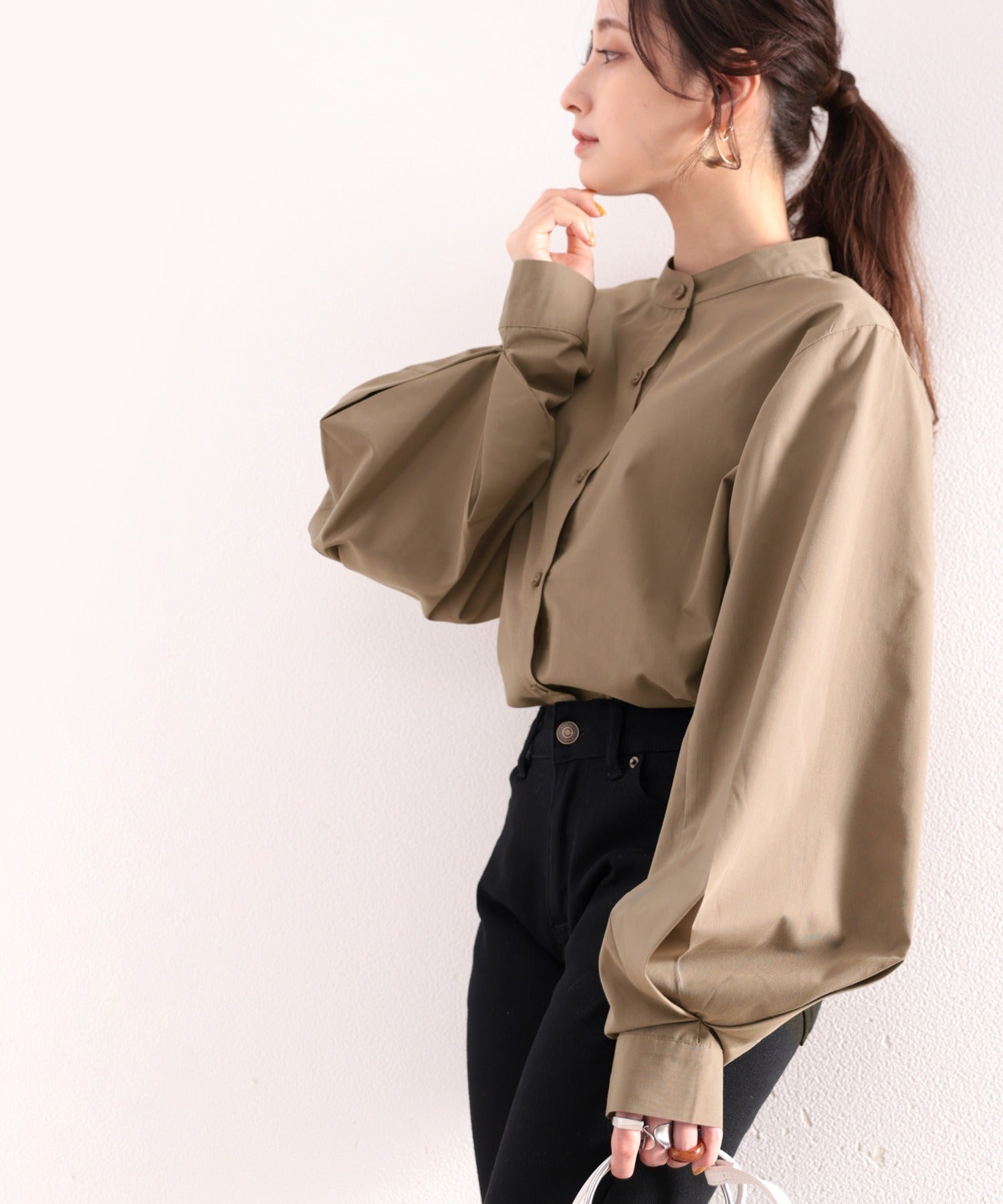 ふわっとした立体感のある袖は着るだけで丸みのある女性らしいシルエットに。