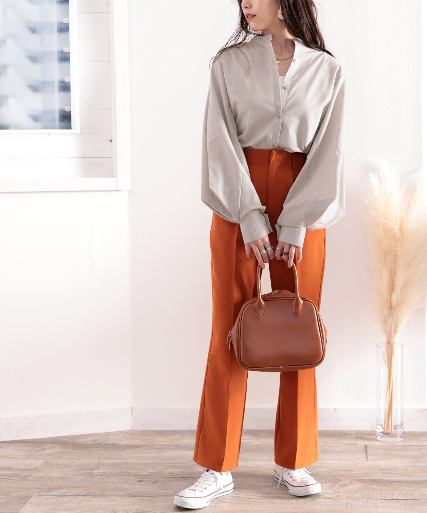 タックスリーブの女性らしい雰囲気と清楚な着こなしを表現した1枚。