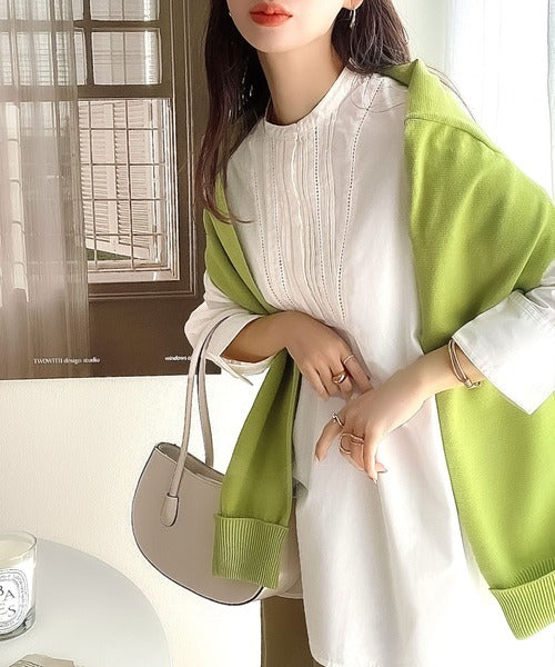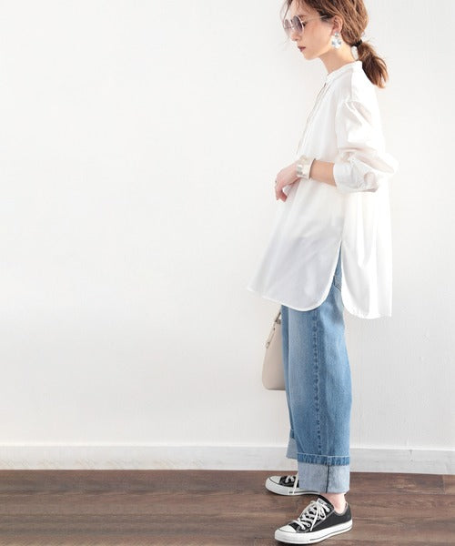 1枚でもインしてもOK!抜き襟にするとさらにこなれ感がアップ。