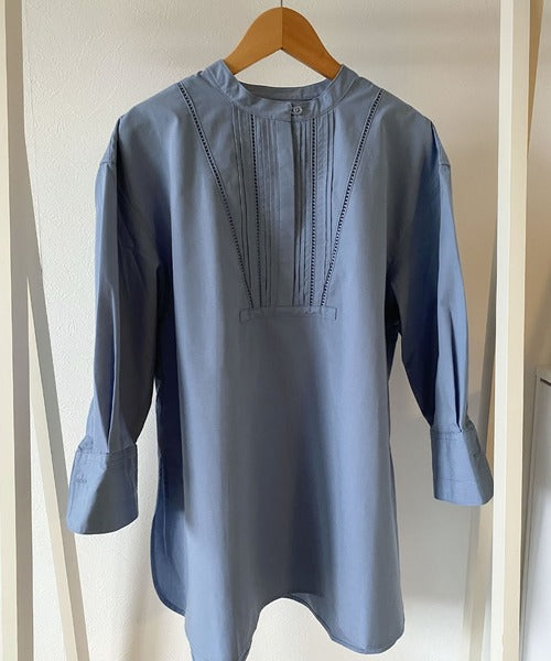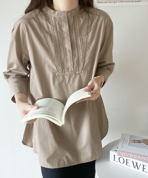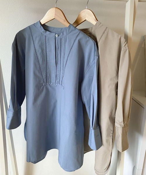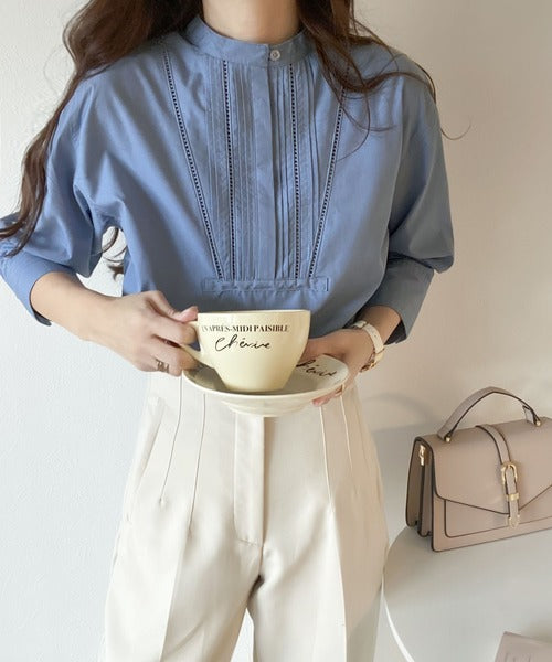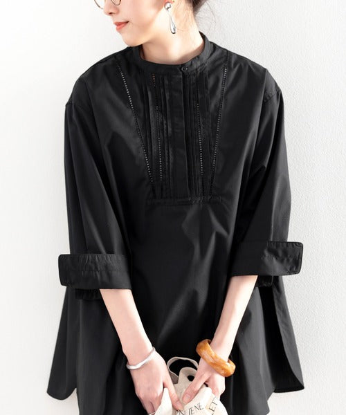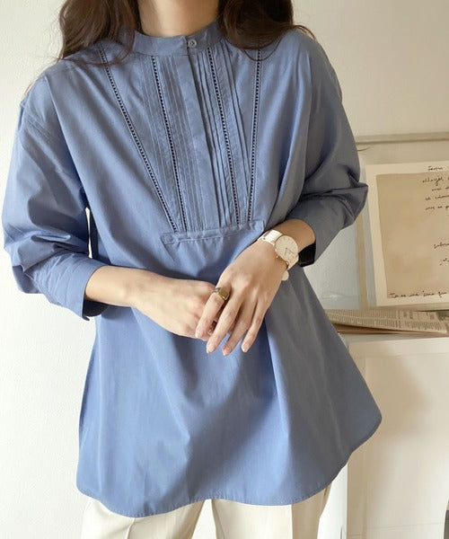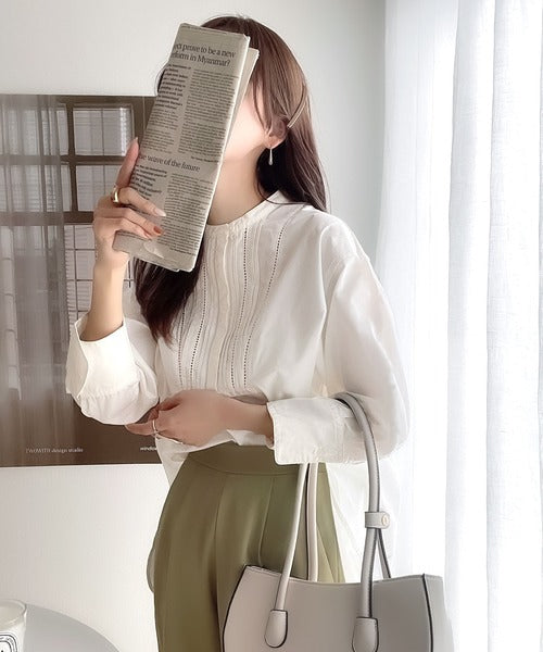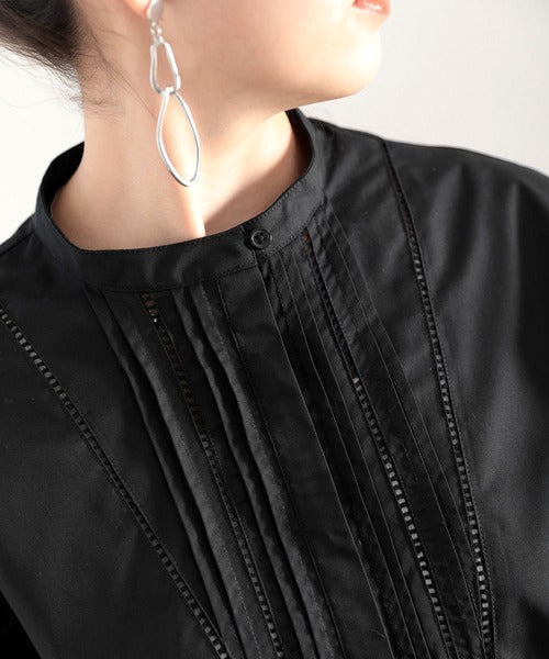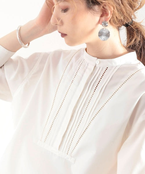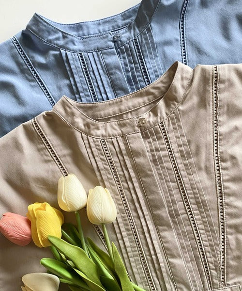 フロントにピンタックとはしごレースの切り替えデザインで、