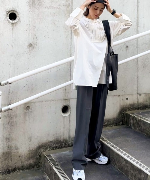 程よい張りと光沢のある素材で大人カジュアルな雰囲気に。
