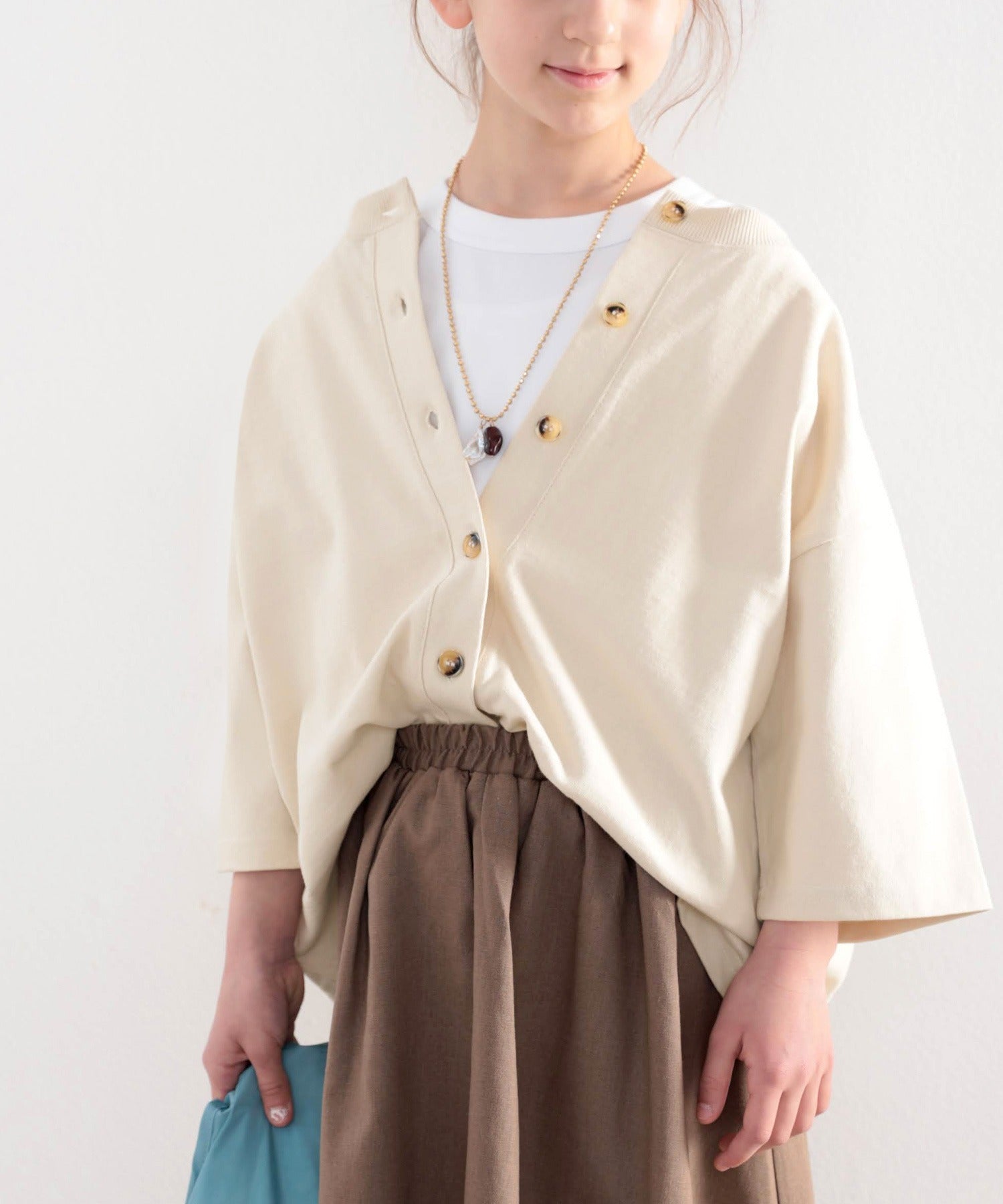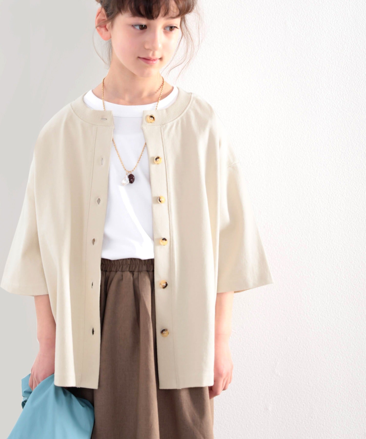 【family+】キッズ 綿100%しっかり生地。2way楽しめる5分袖カーディガン ck0590025