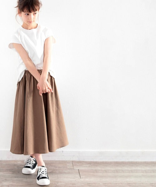 タックインしてフレアスカートと合わせれば大人と同じトレンドが楽しめる。