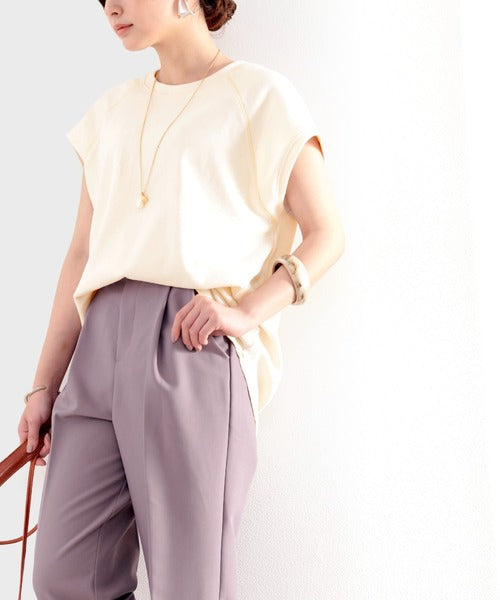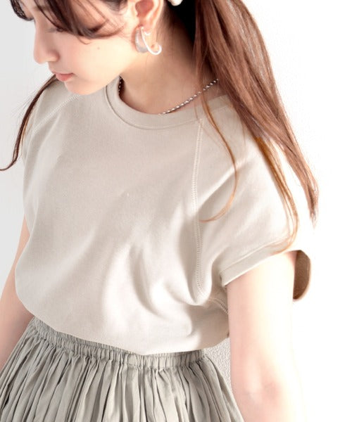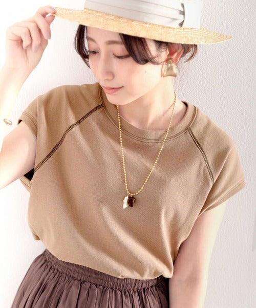 ステッチをアクセントに、大人っぽい着こなしが叶うフレンチスリーブトップス。