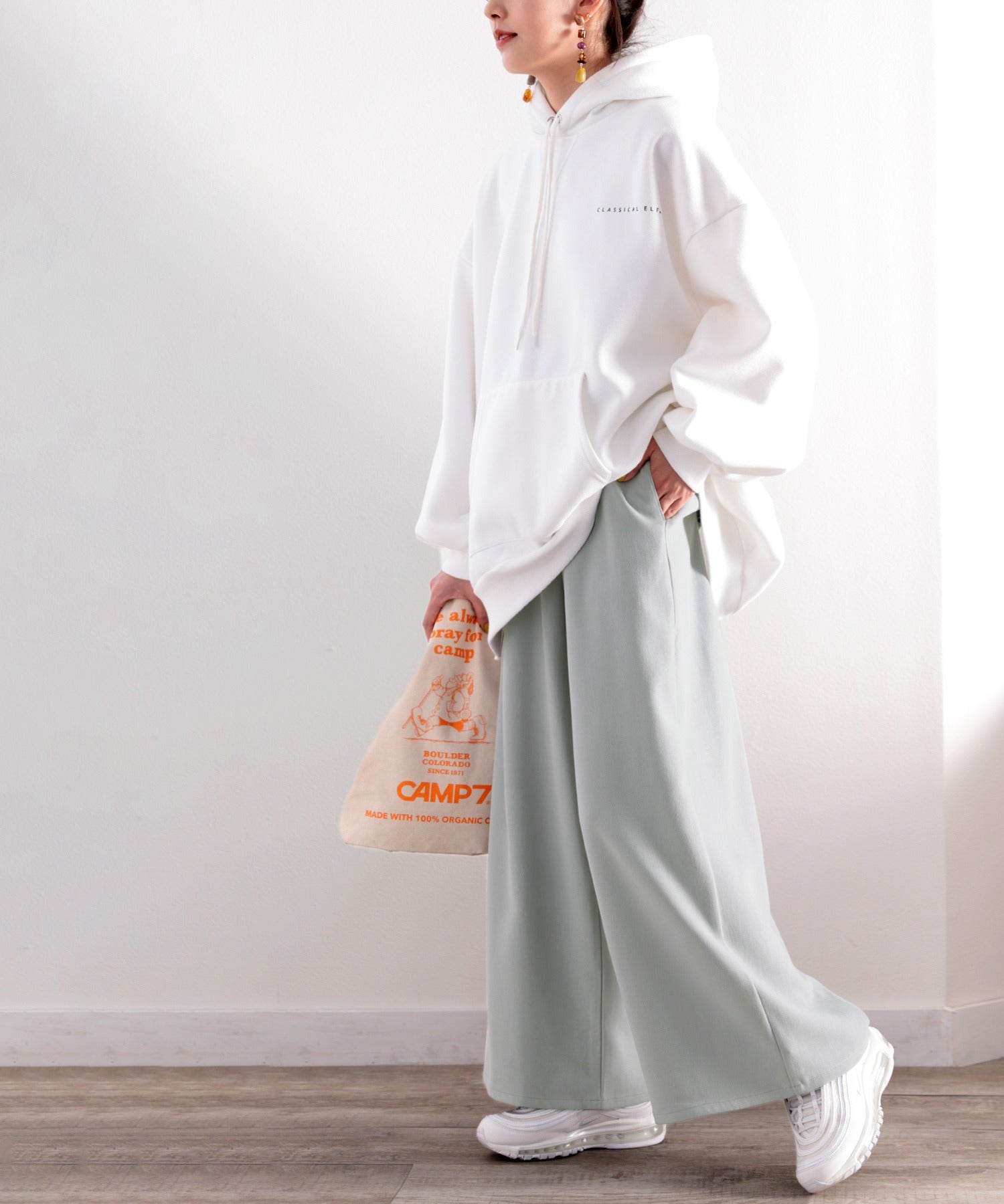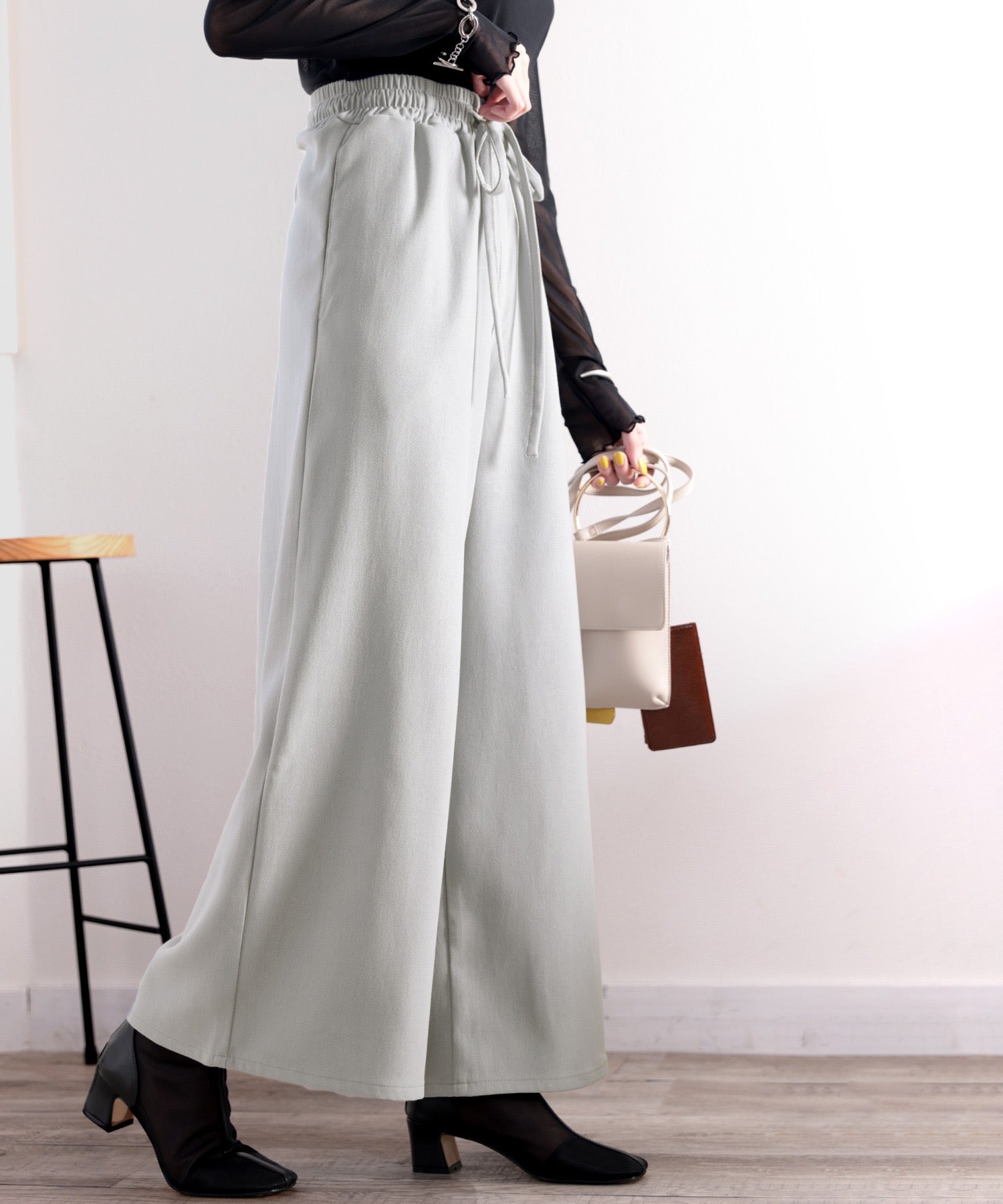 シンプルなコーデでも計算された存在感を与えてくれる、レディなワイドパンツ。