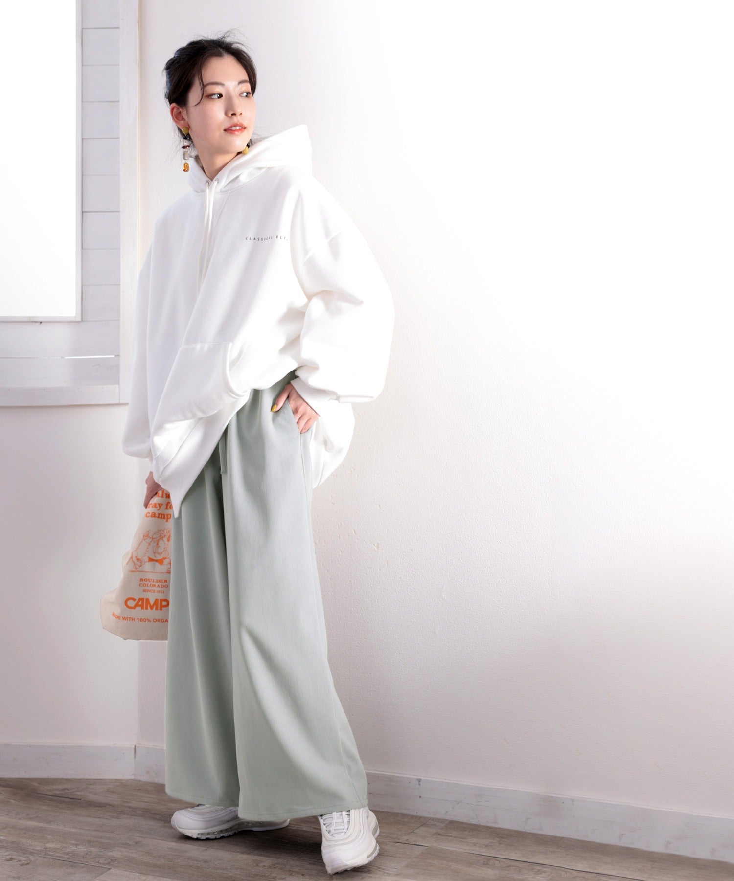 ピーチ起毛で柔らかく心地よい。マットな質感で上品な大人っぽいワイドパンツ。