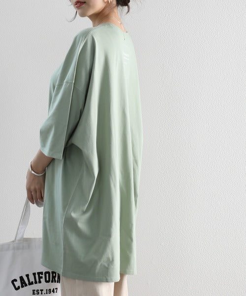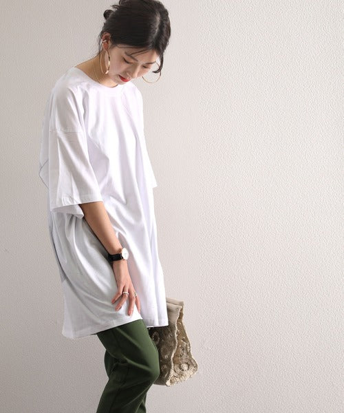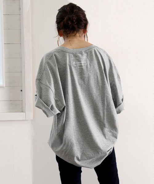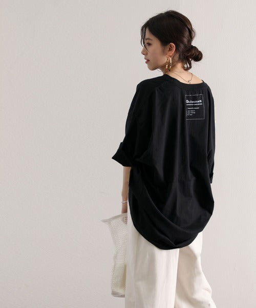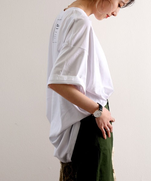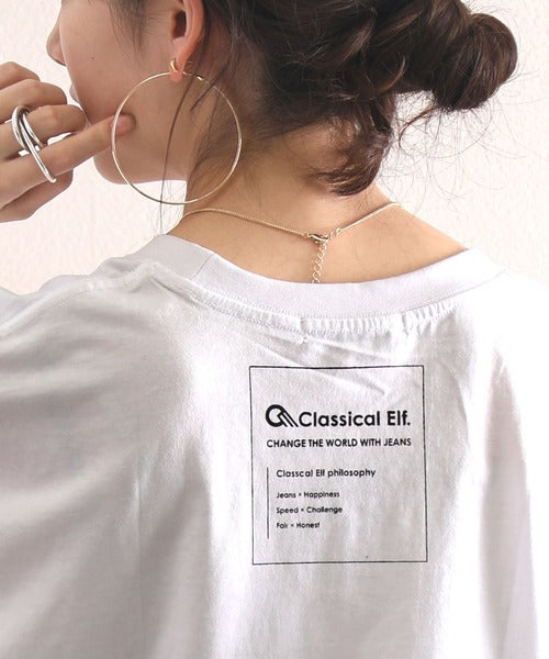 Classical Elf オーバーサイズ ロング丈バックプリント無地クルーネックロゴビッグTシャツ(半袖) cl3003
