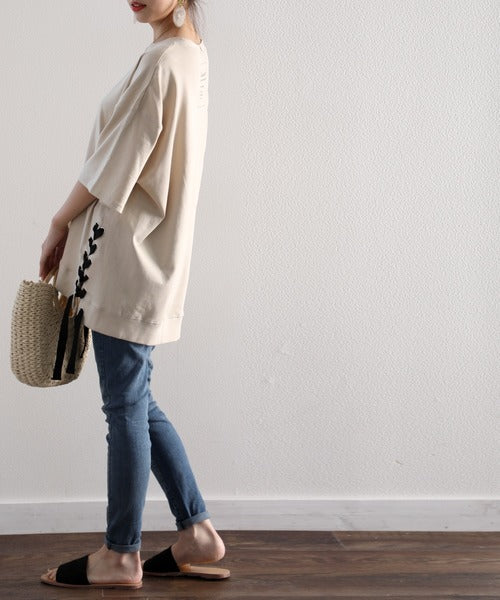 ★サイドの編み上げ+バックロゴで360度抜かりないトップス★