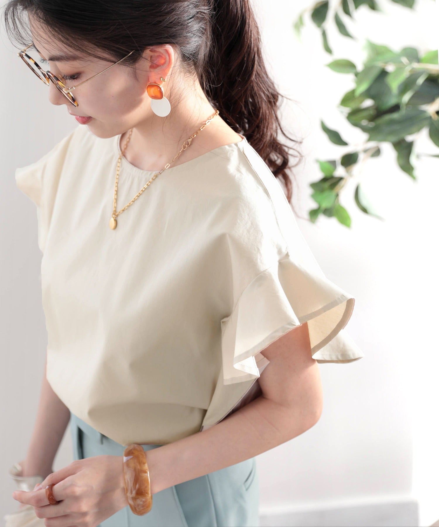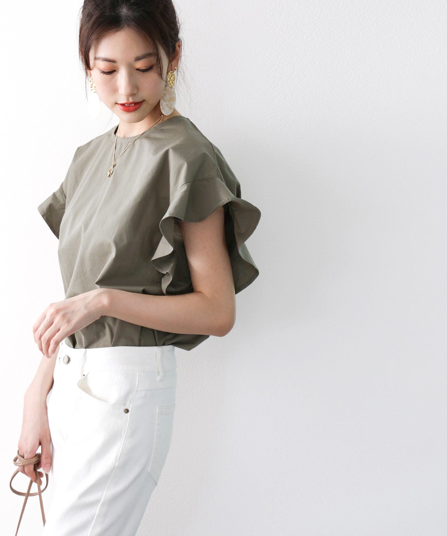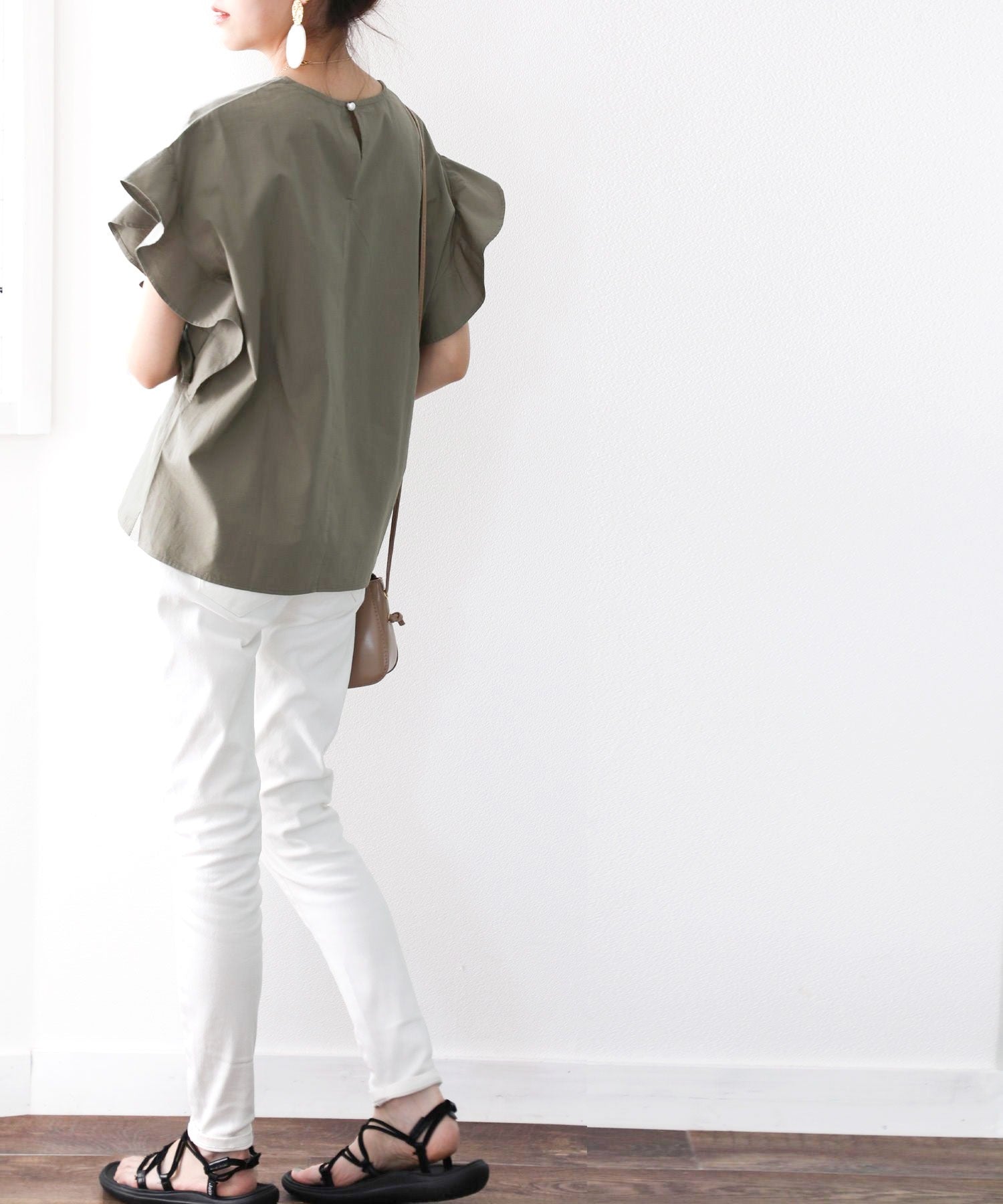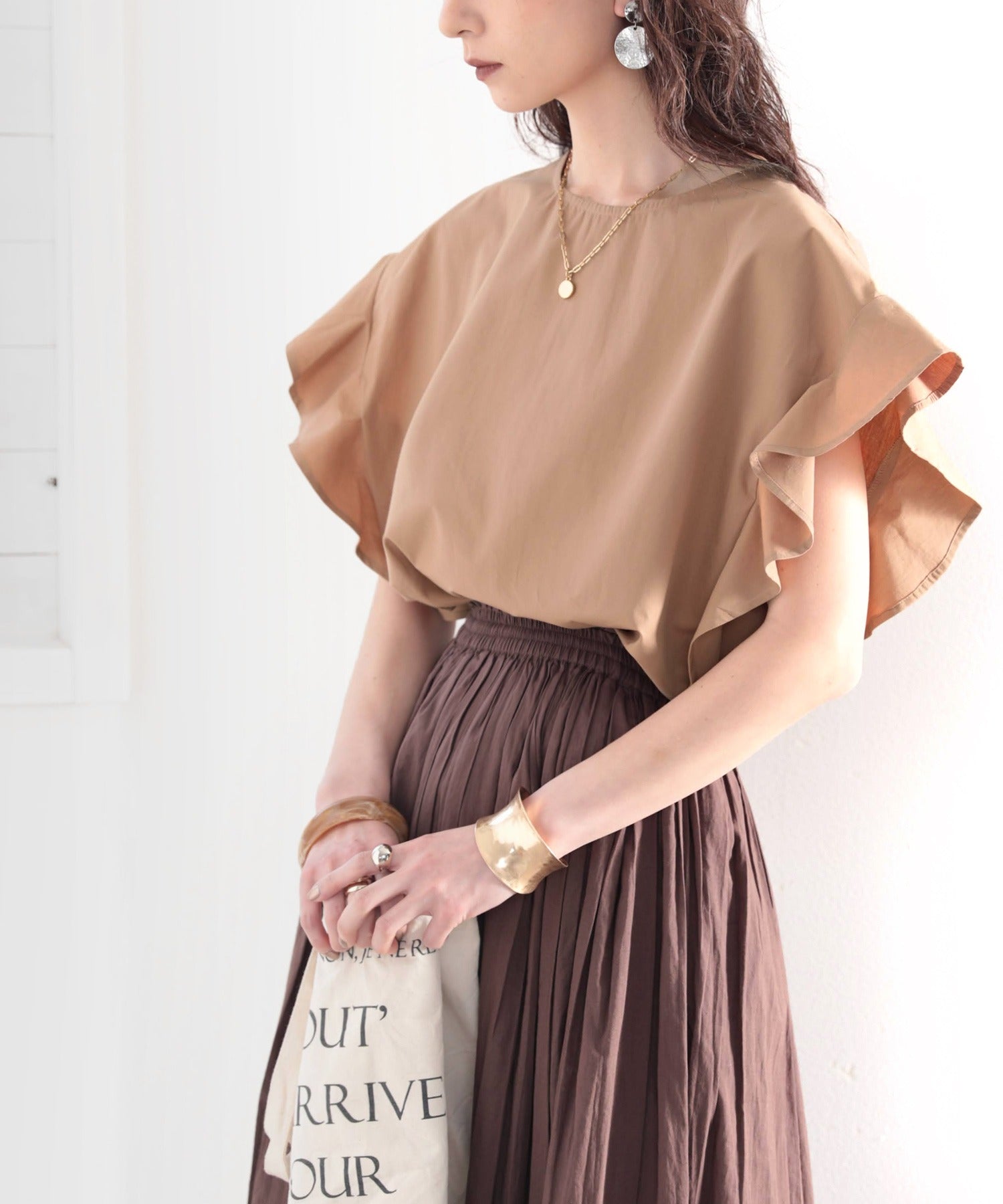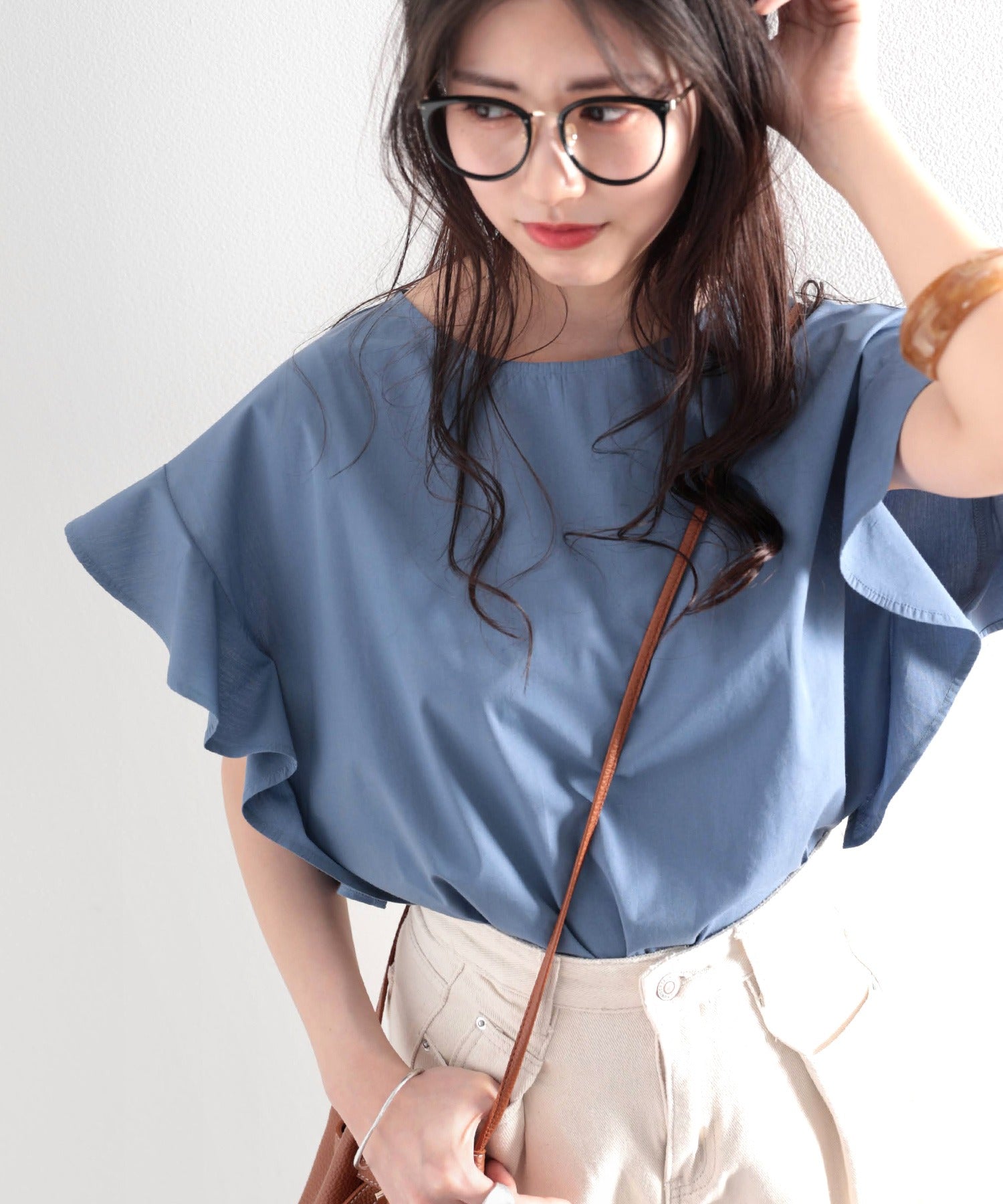 袖のフリルが大人カワイイ。さらりと着られて着回し力抜群ブラウス。