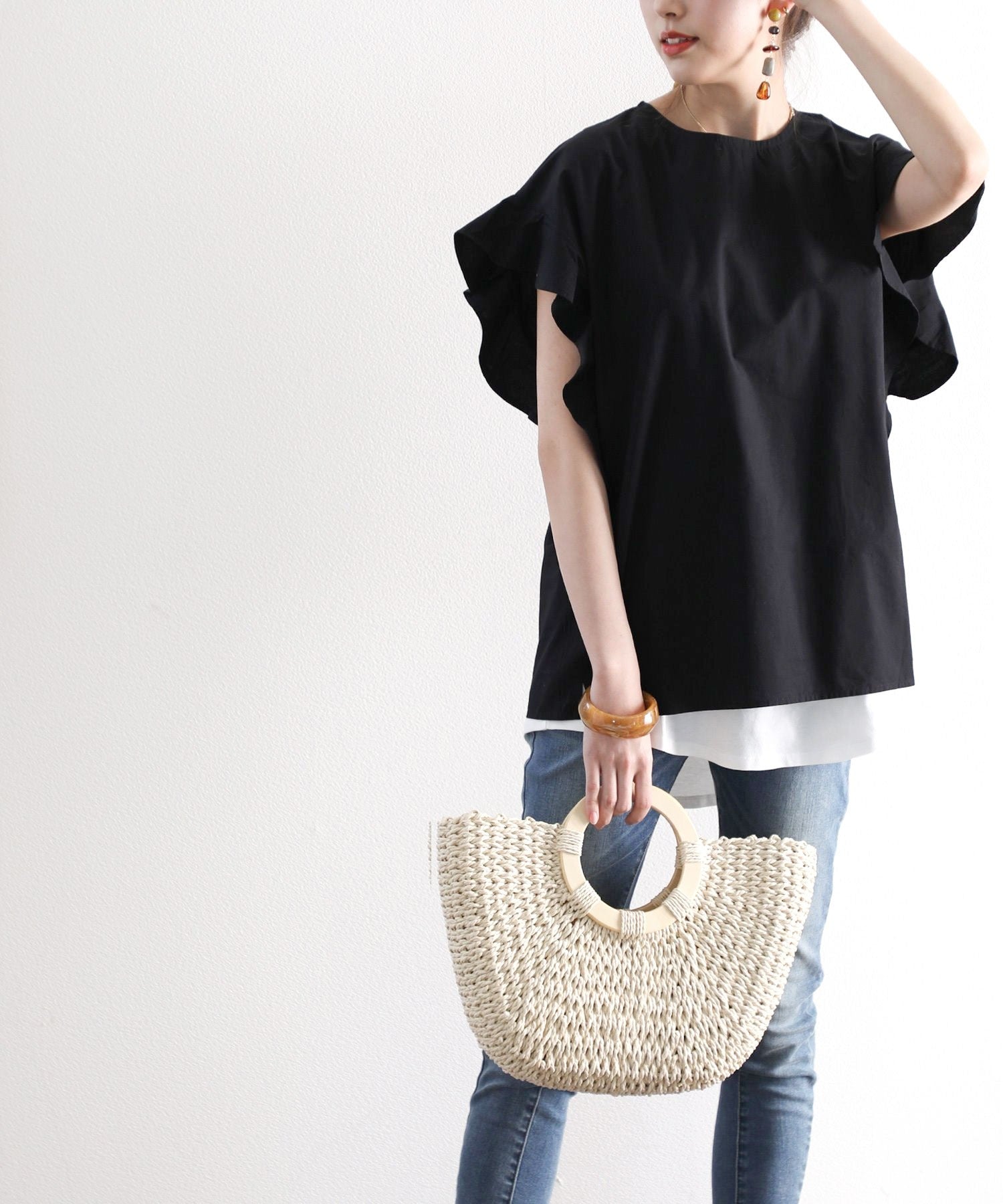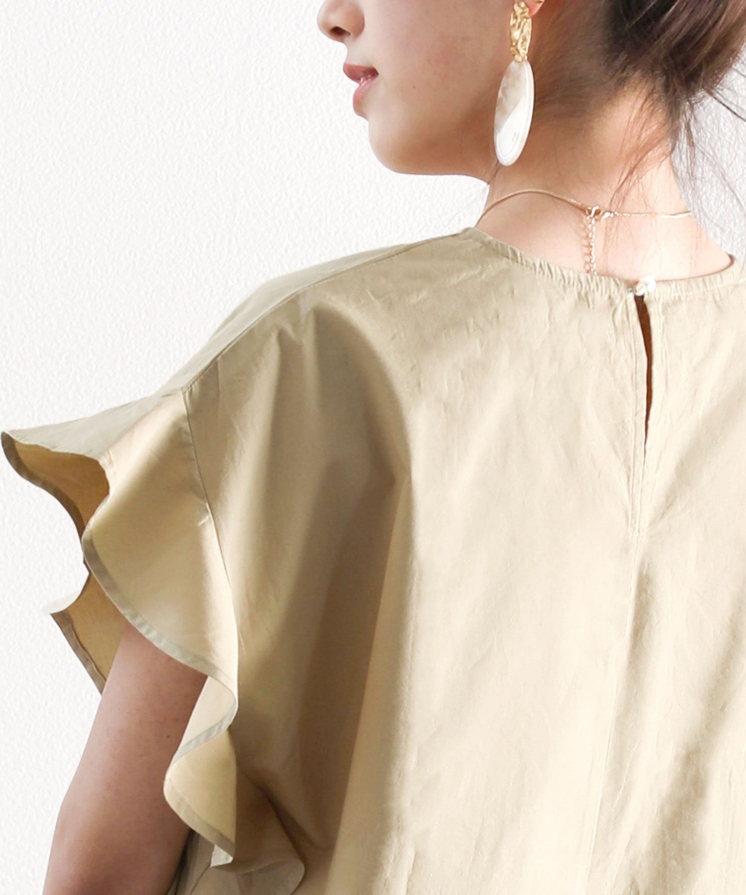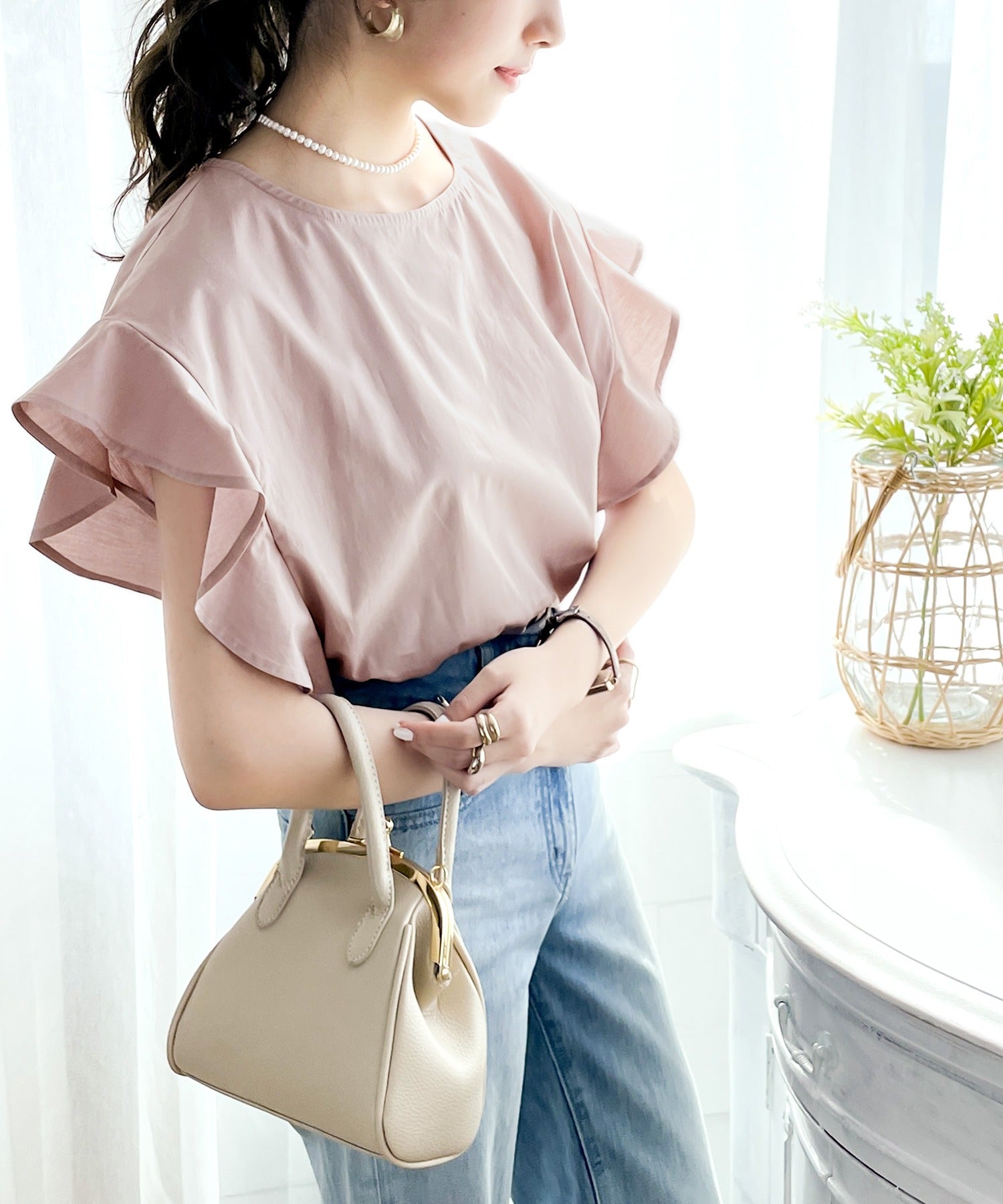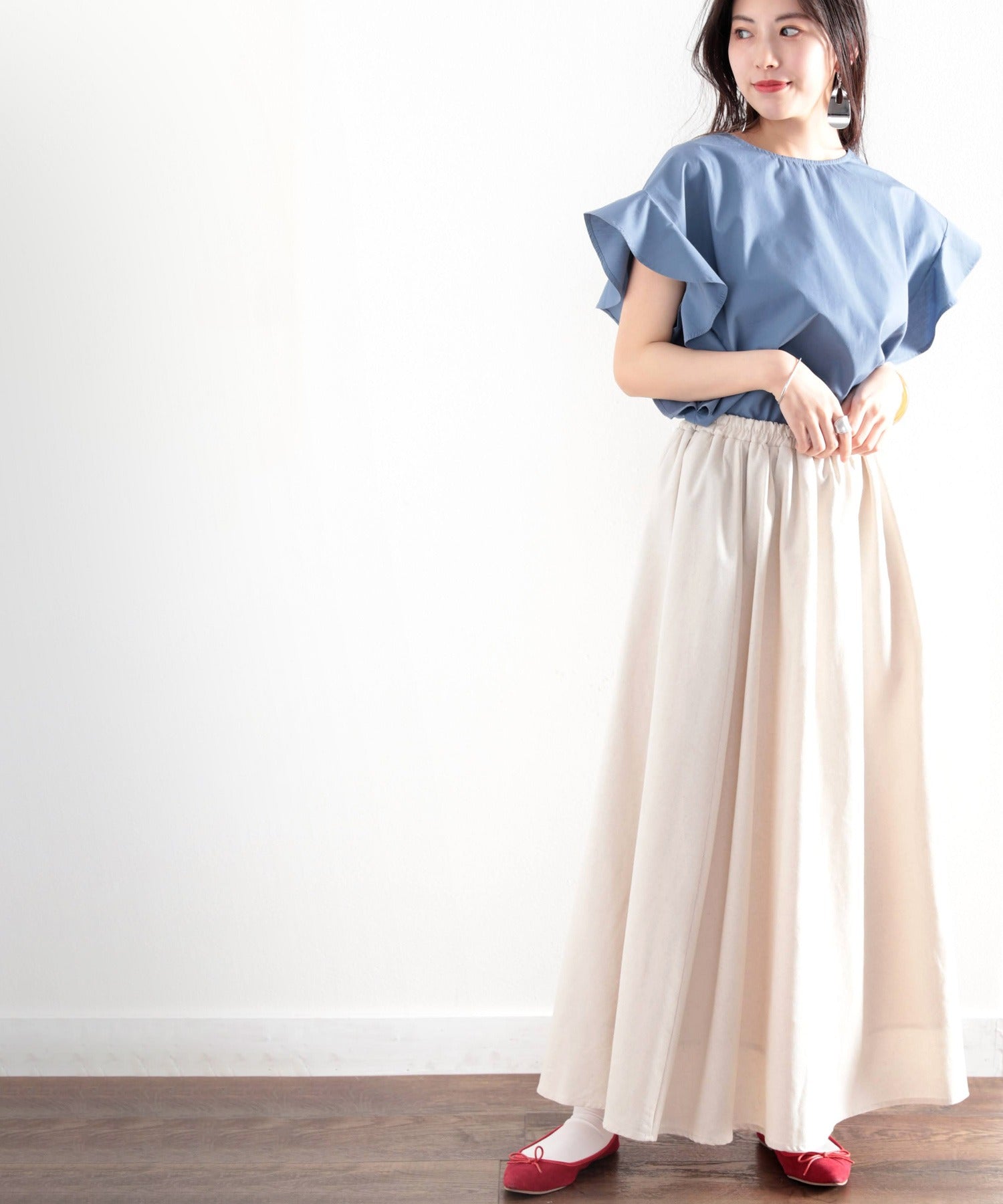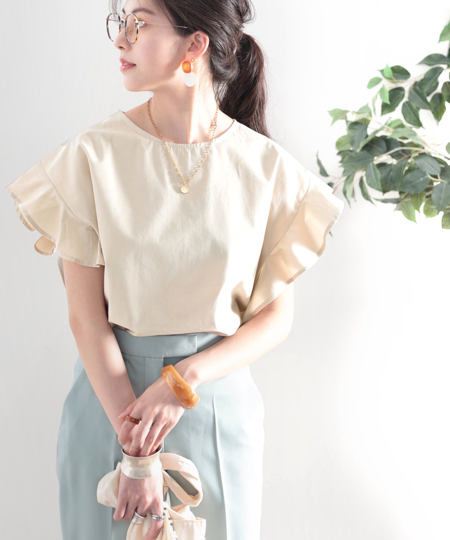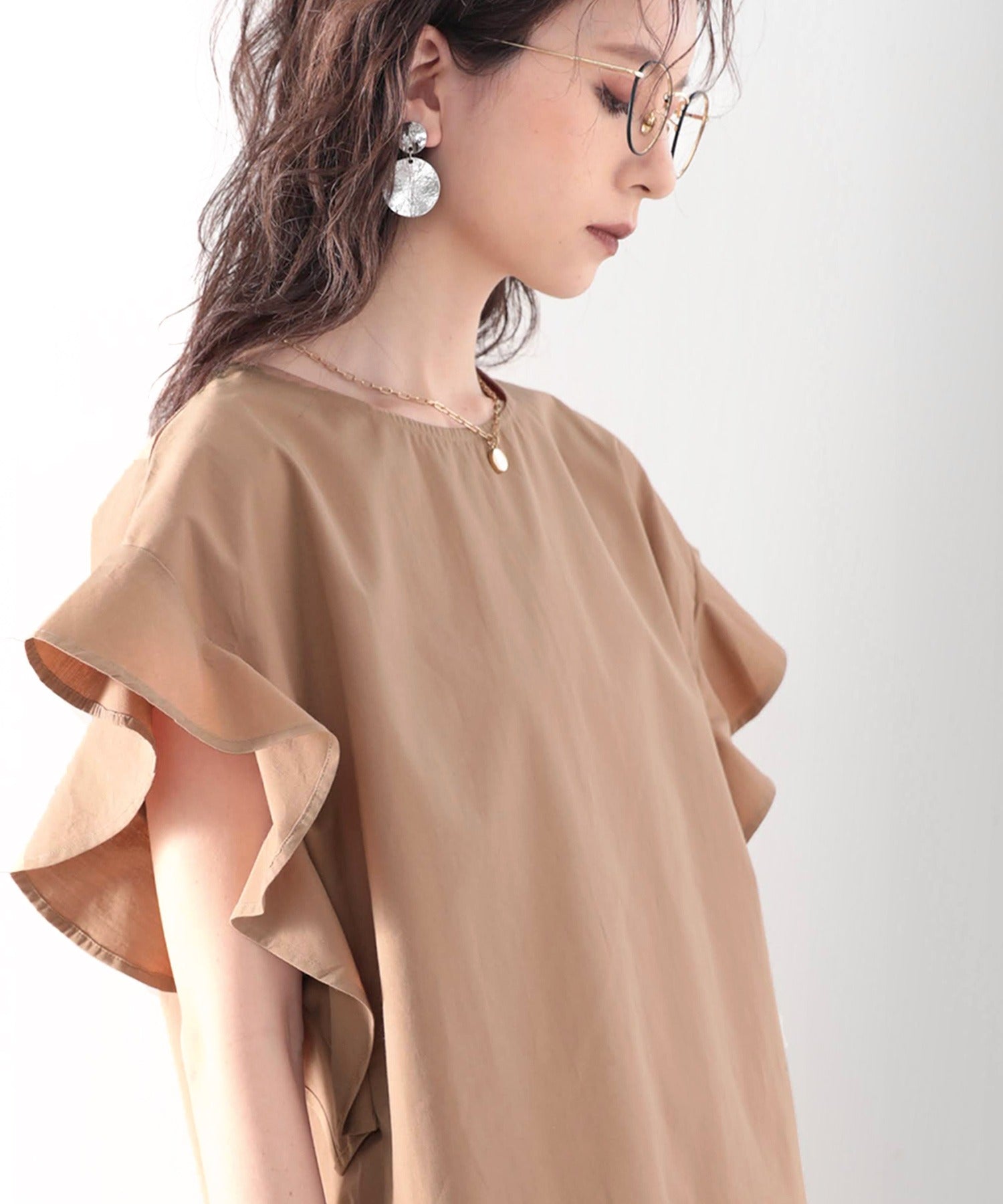 袖のフリルが大人カワイイ。さらりと着られて着回し力抜群ブラウス。