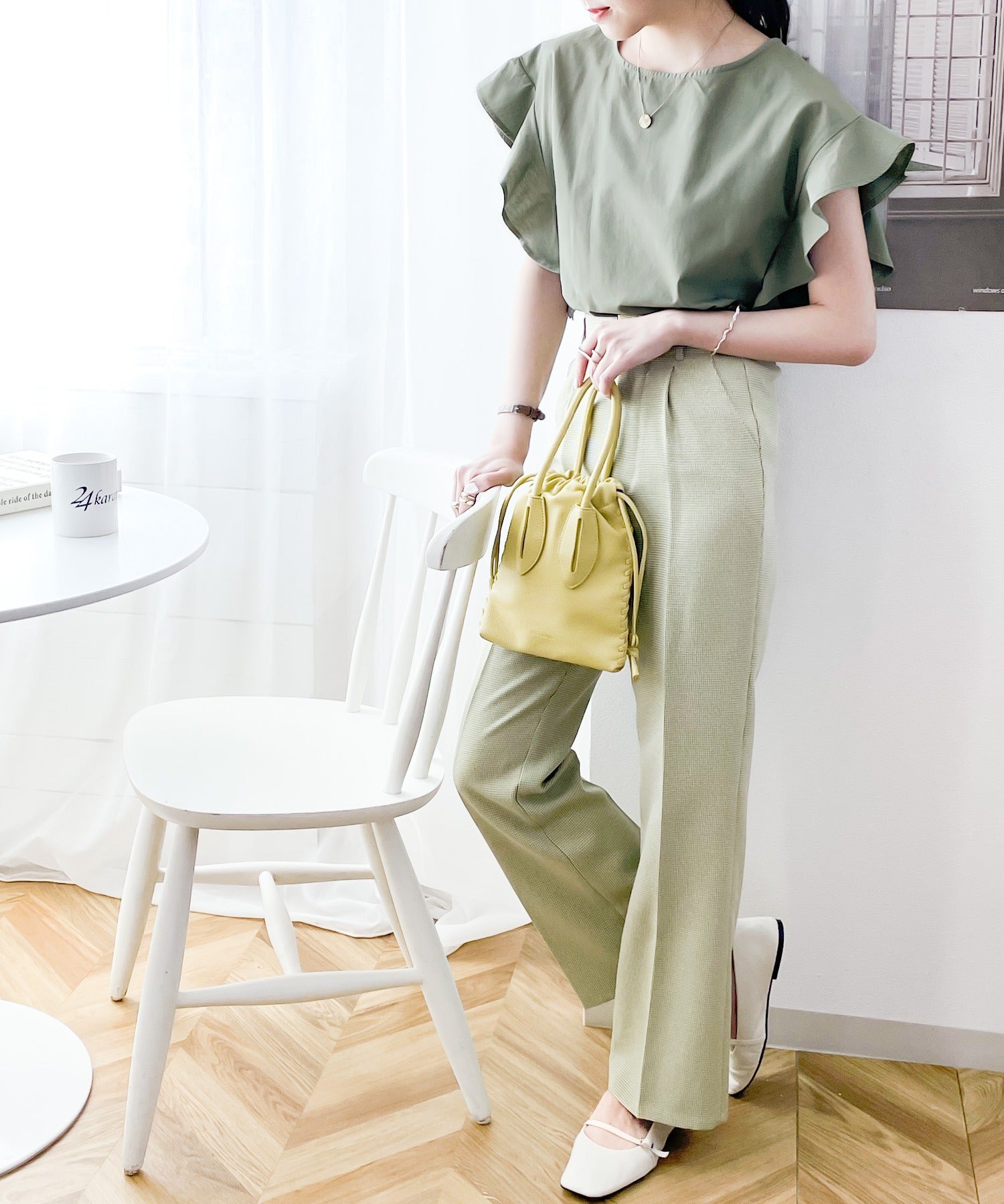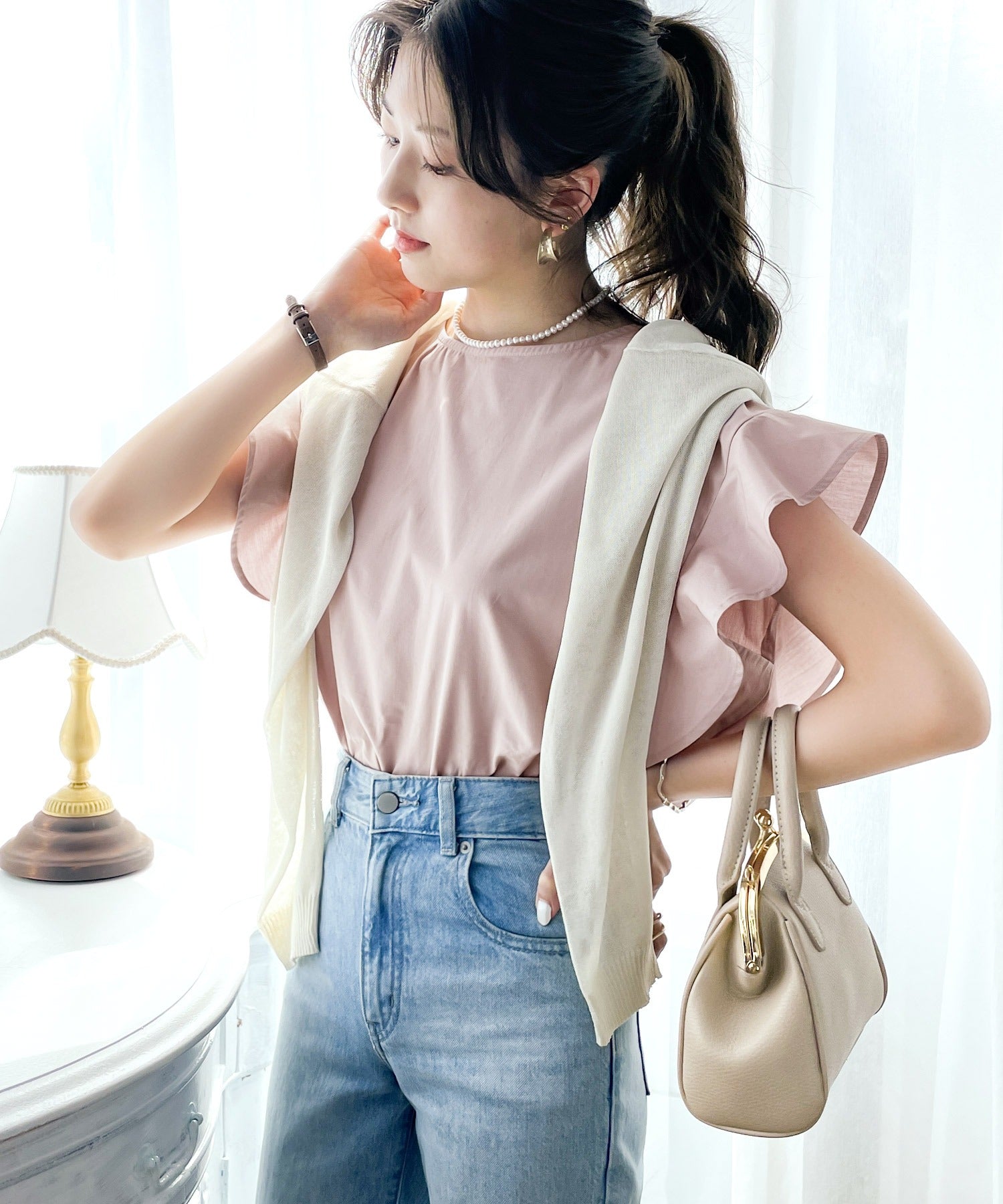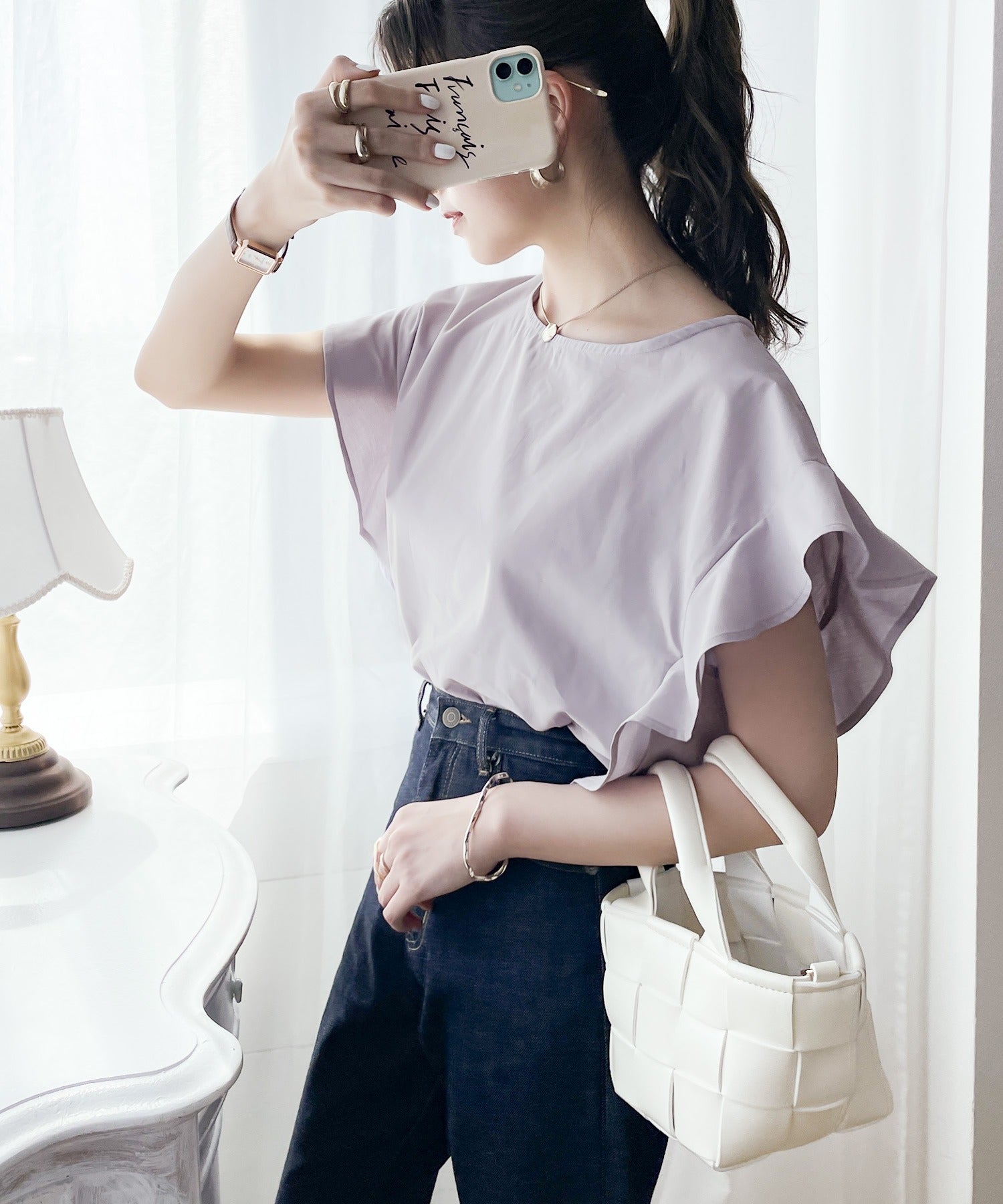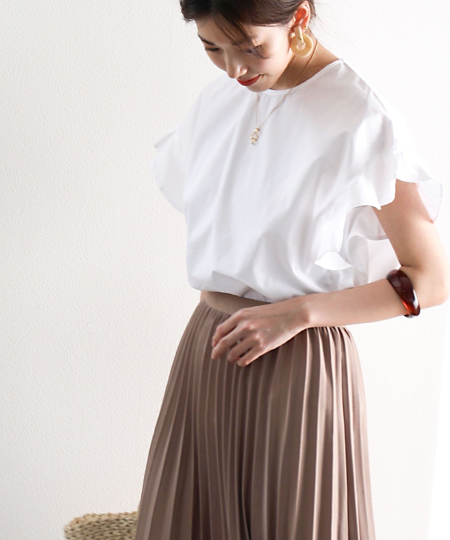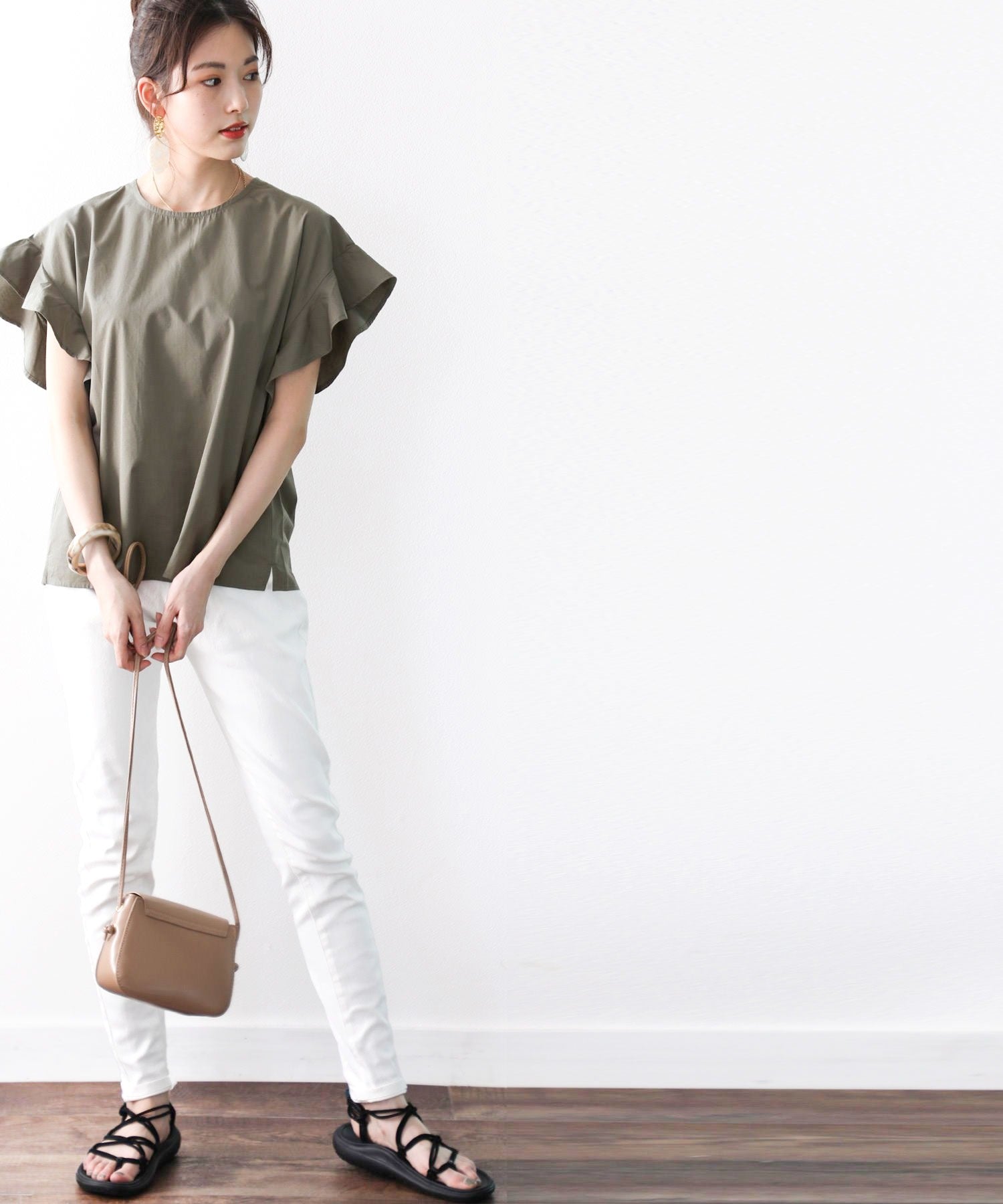袖のフリルが大人カワイイ。さらりと着られて着回し力抜群ブラウス。