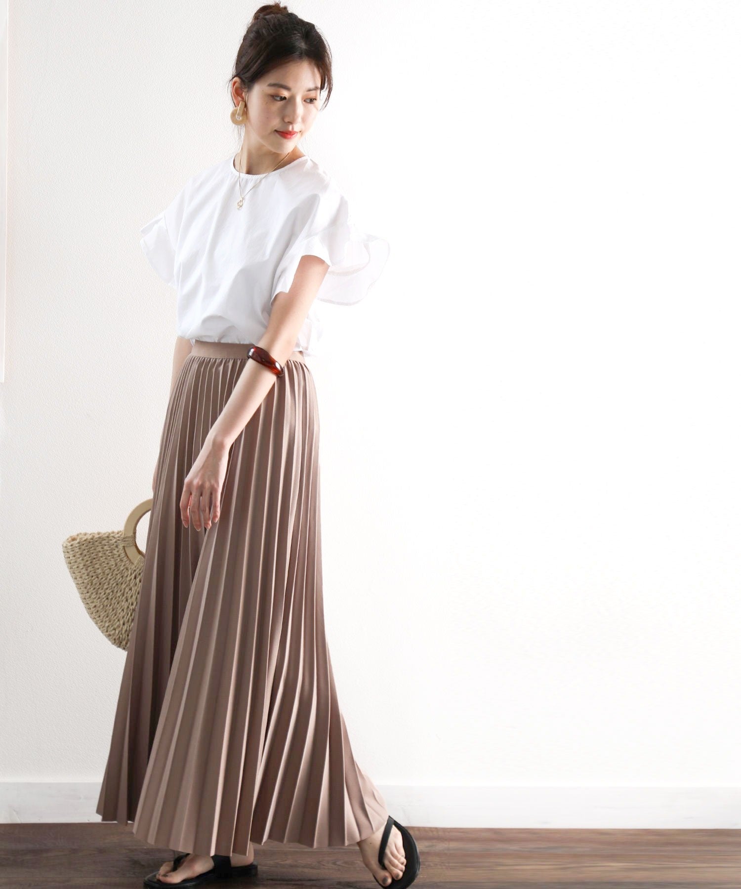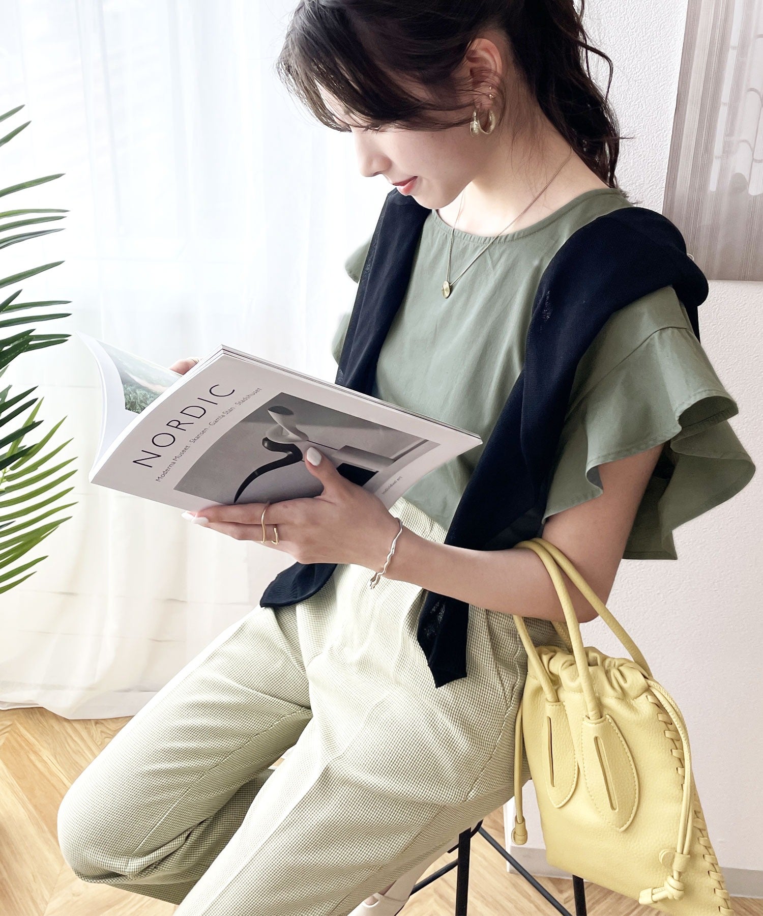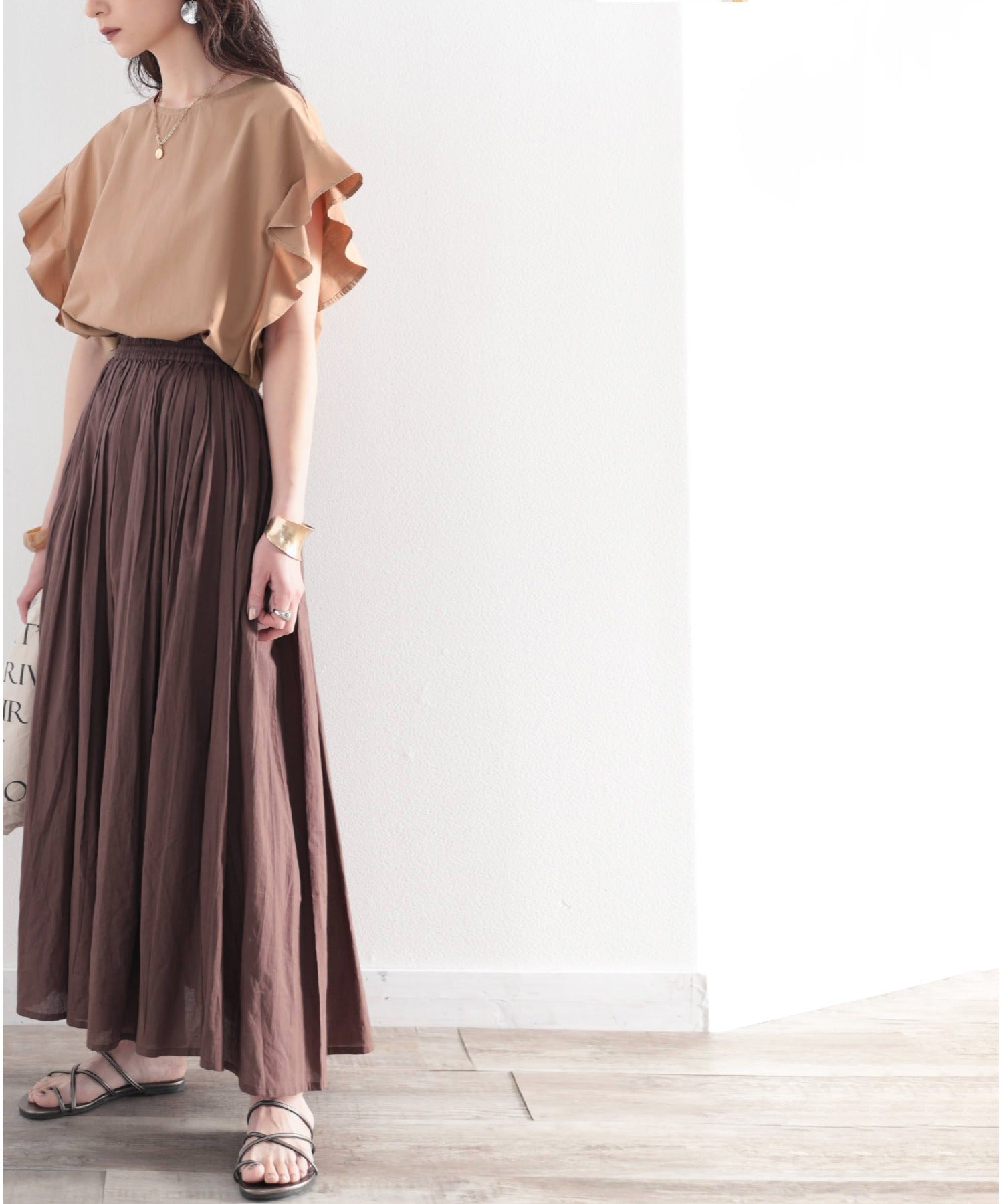 軽やかな生地と落ち着いたカラーで大人っぽさをプラス