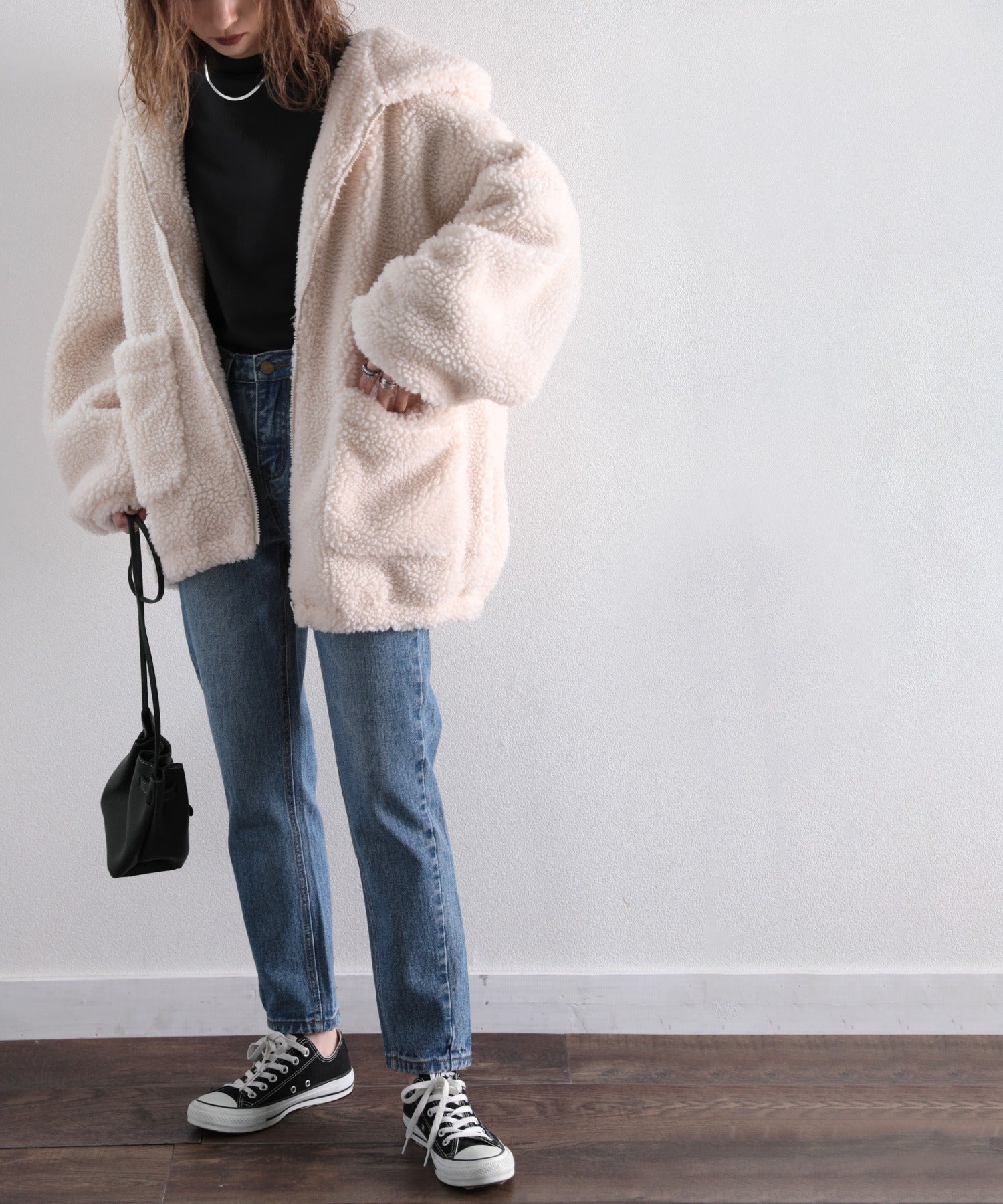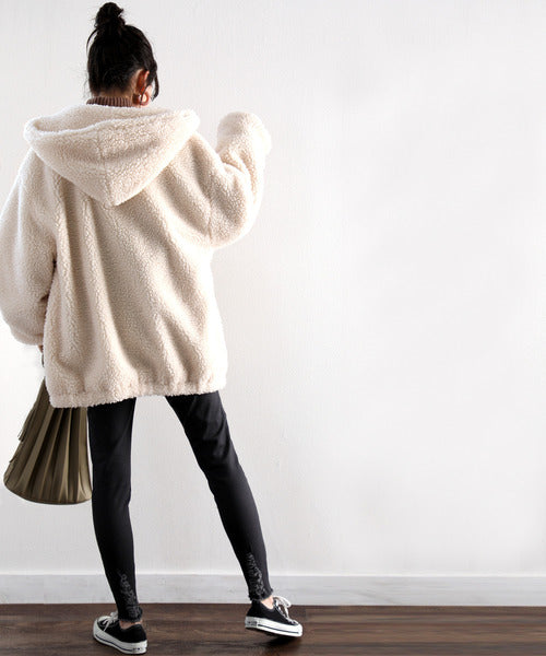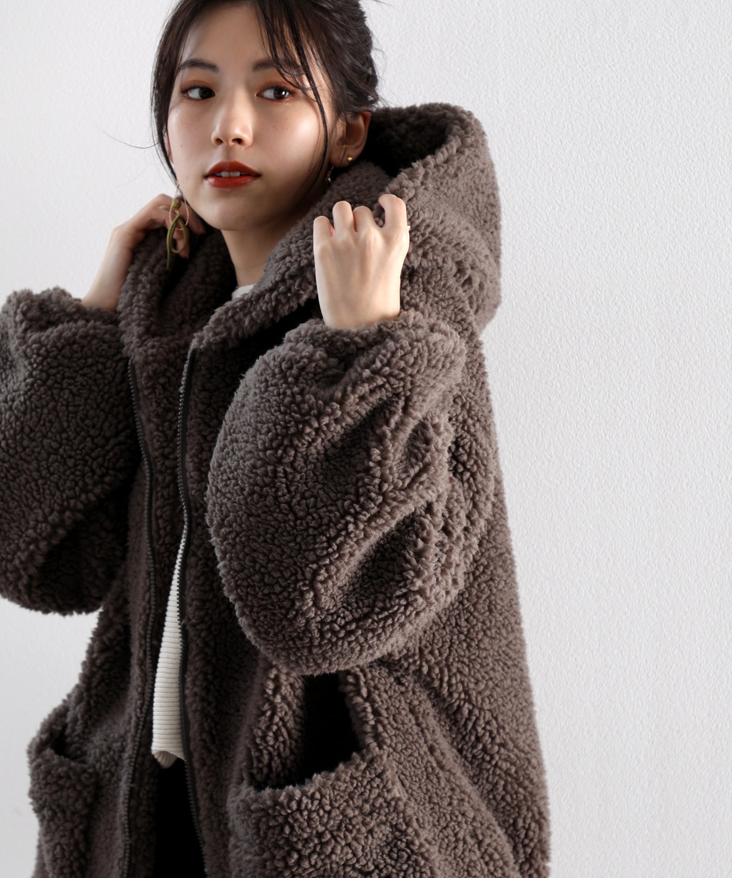 ボリューム感あるもこもこのフーディーは、どこから見ても暖かな印象を与えてくれる◎