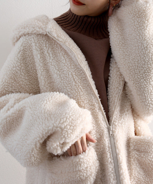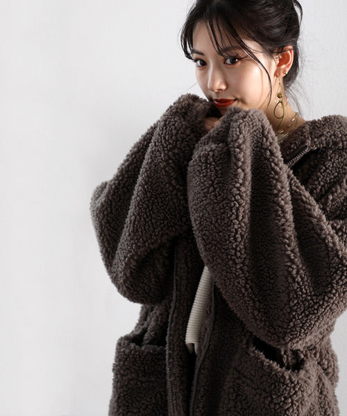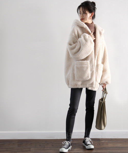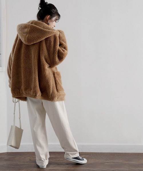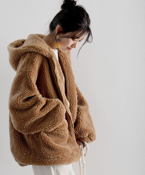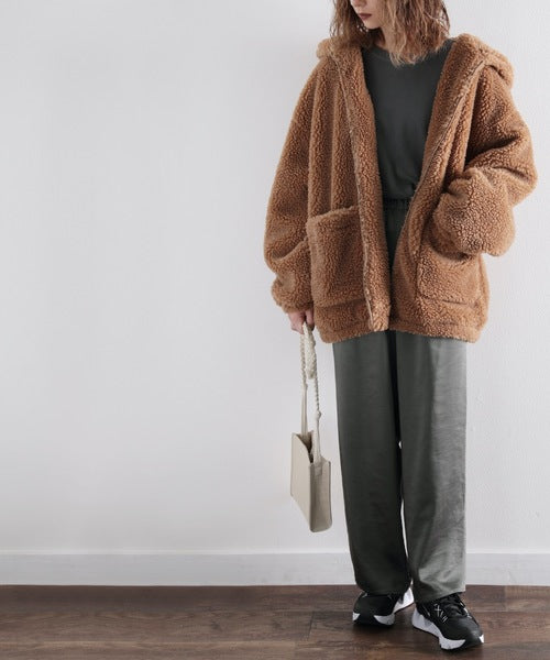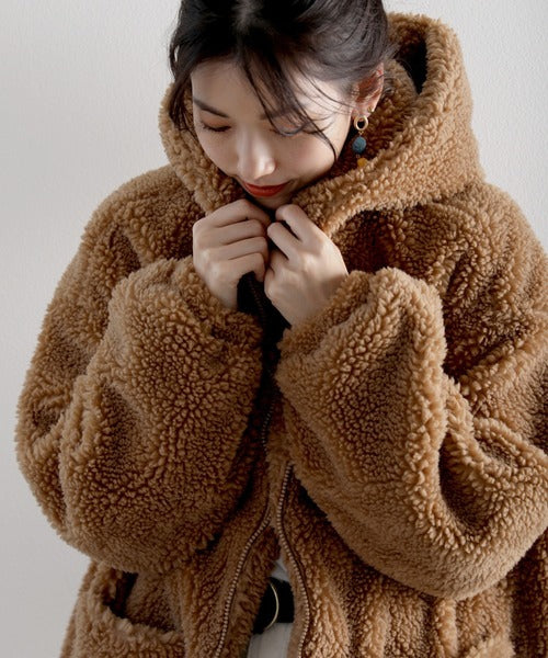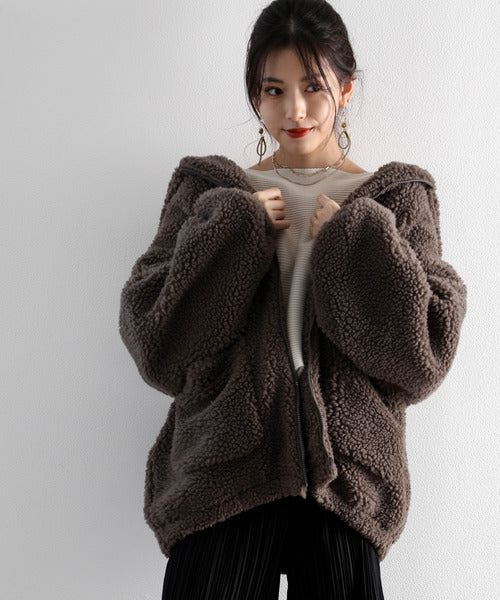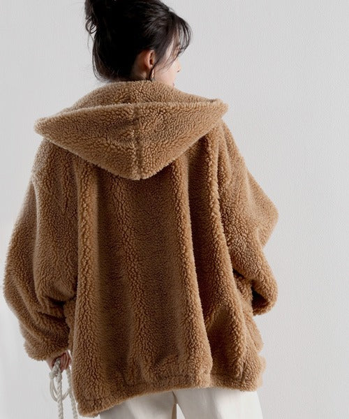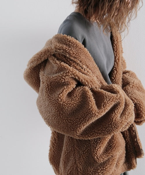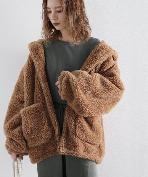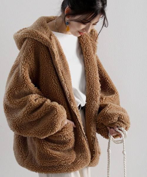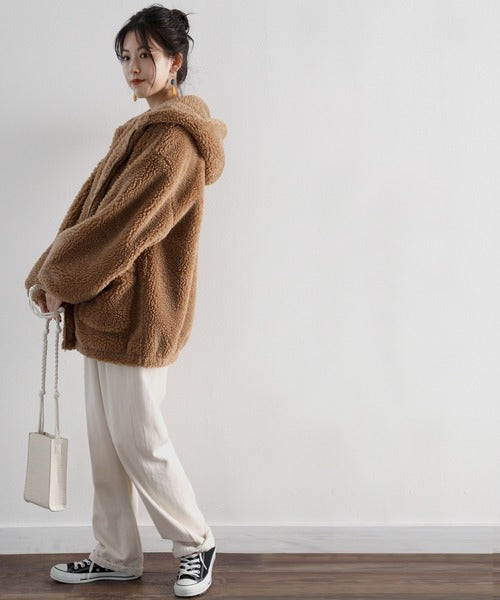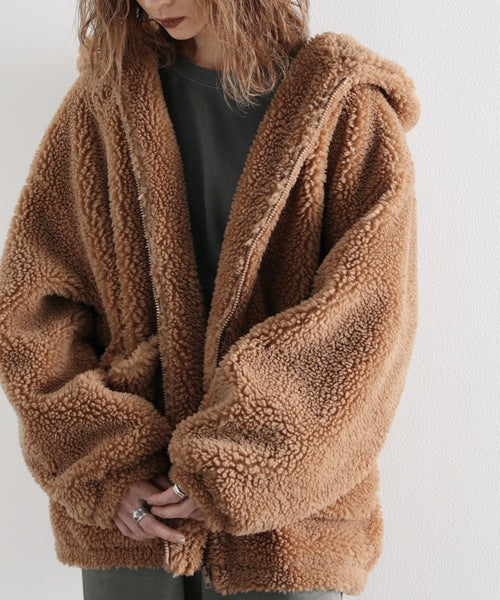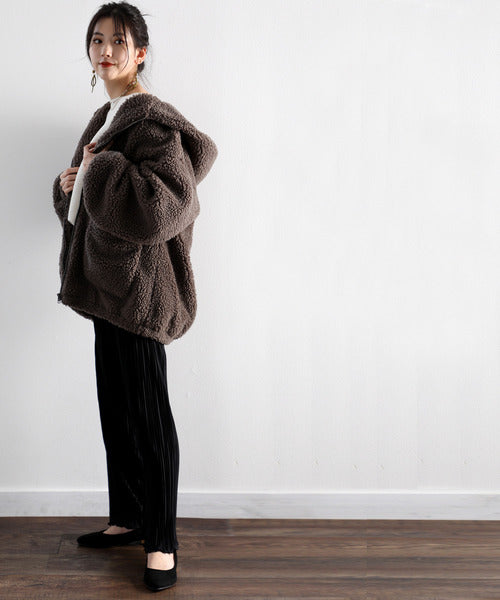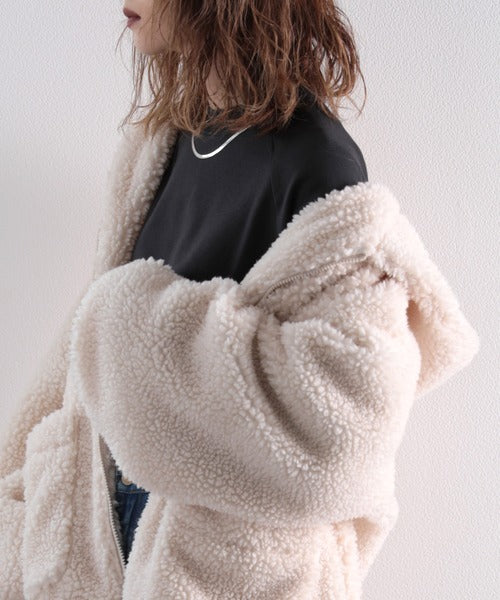 まるでテディベアのようなボア生地をふんだんに使ったビッグシルエットのボアアウター。