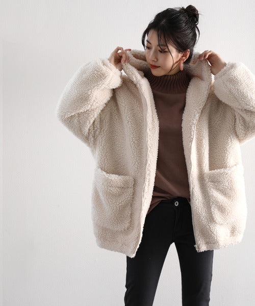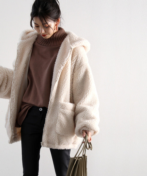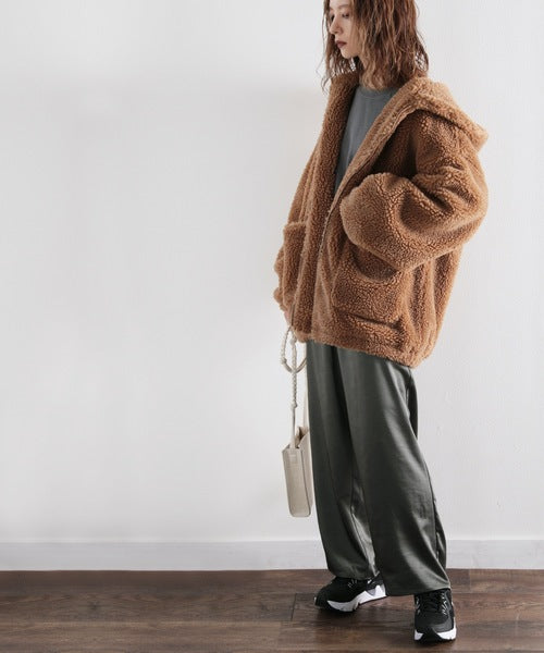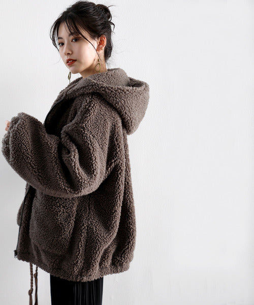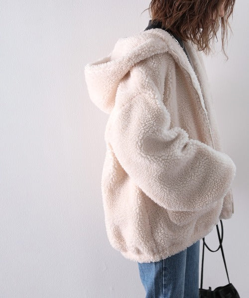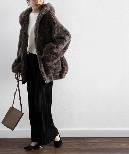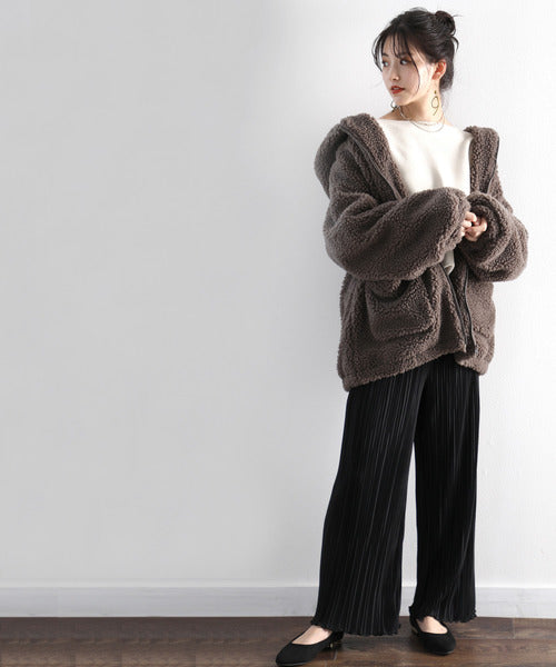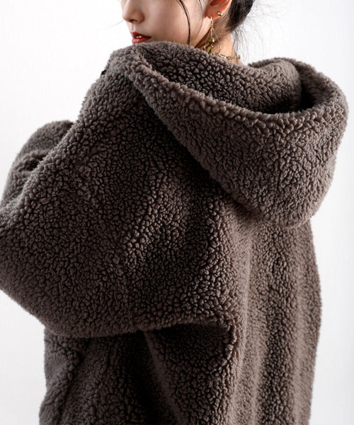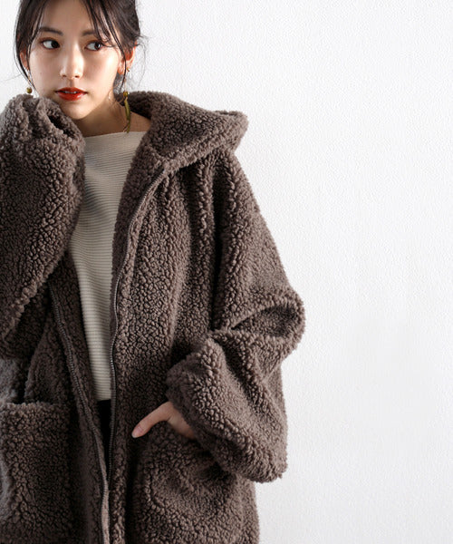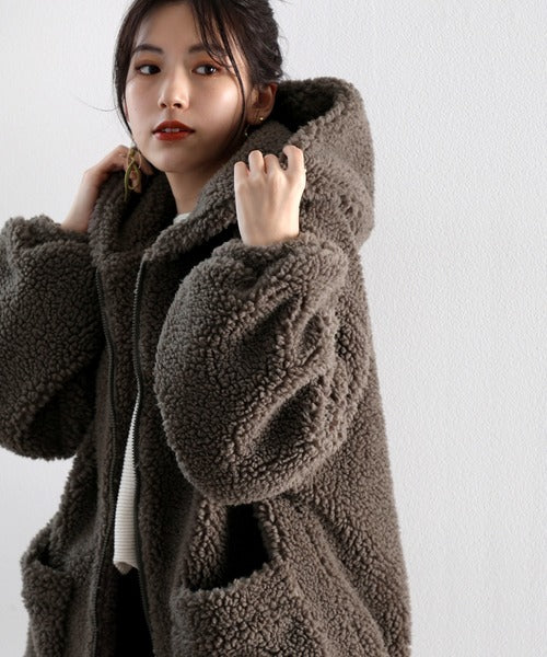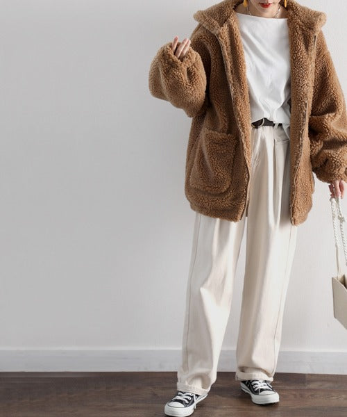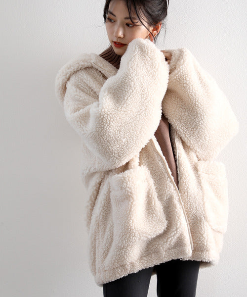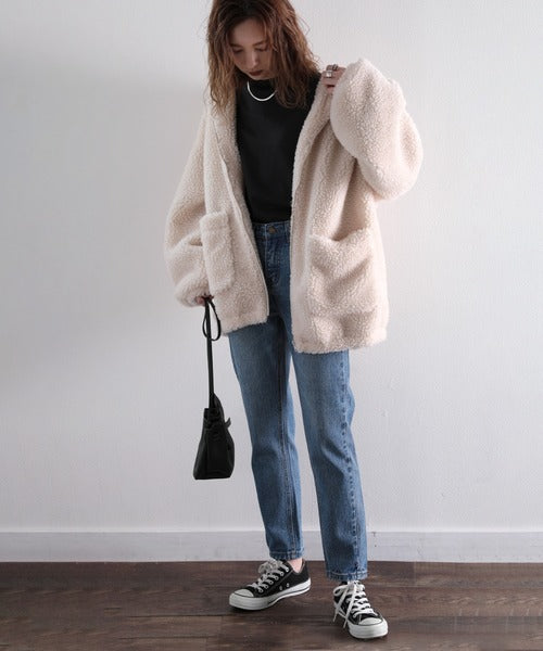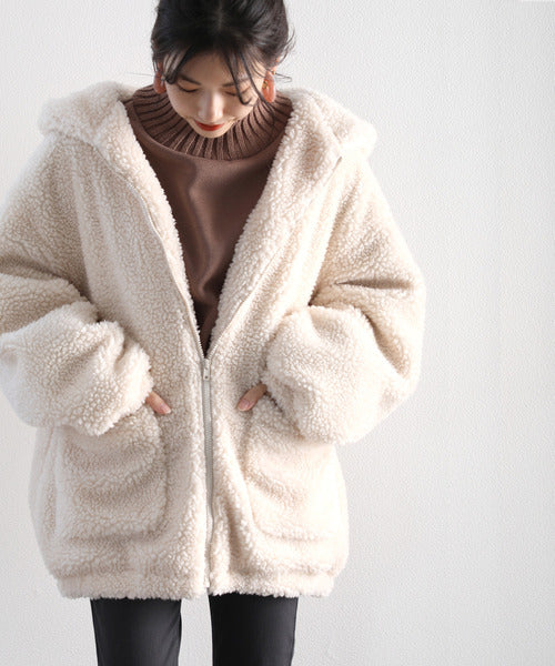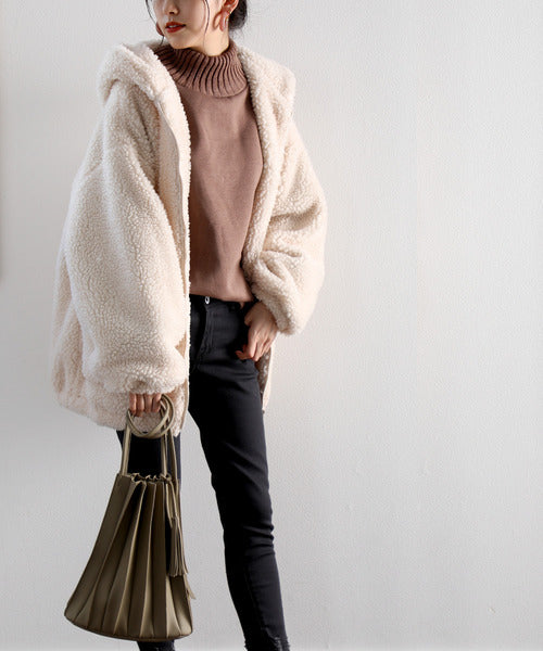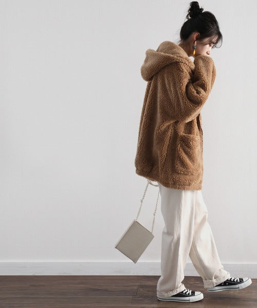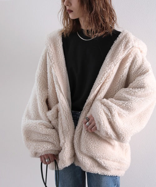 まるでテディベアのようなボア生地をふんだんに使ったビッグシルエットのボアアウター。