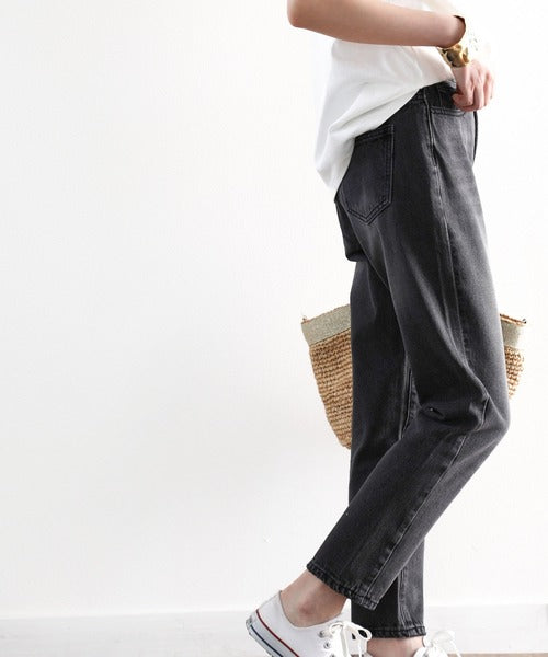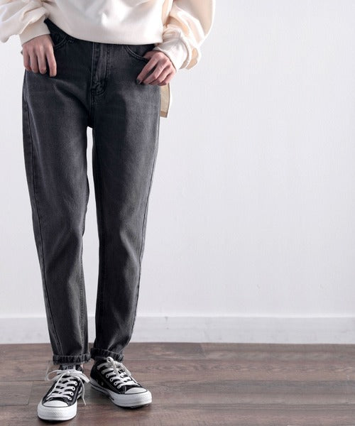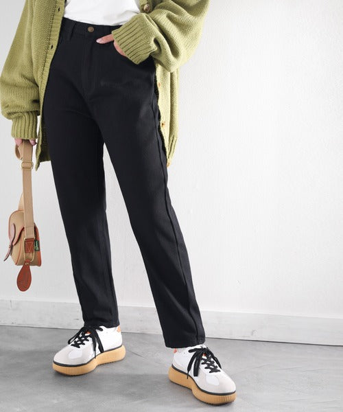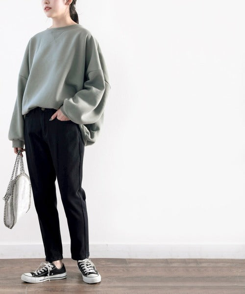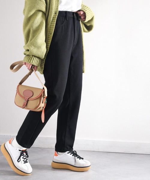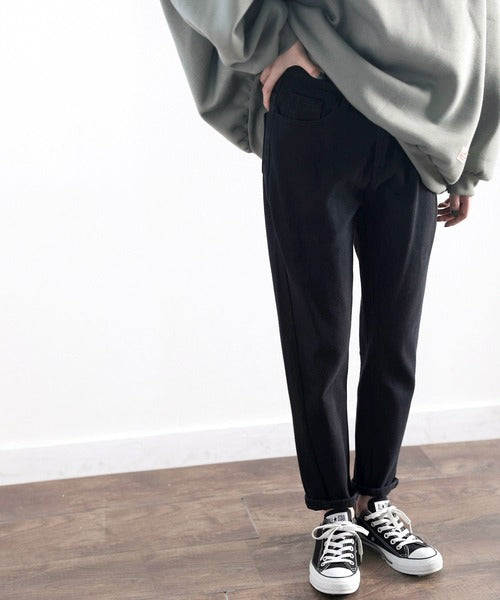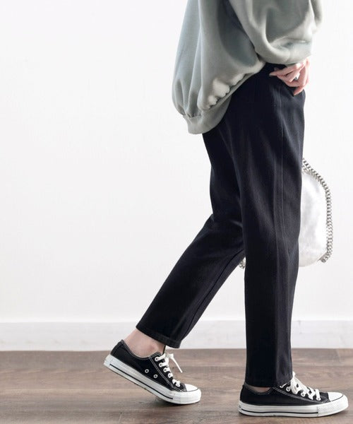コーデに溶け込みやすい、ベーシックなテーパードパンツです。