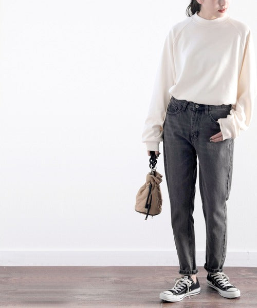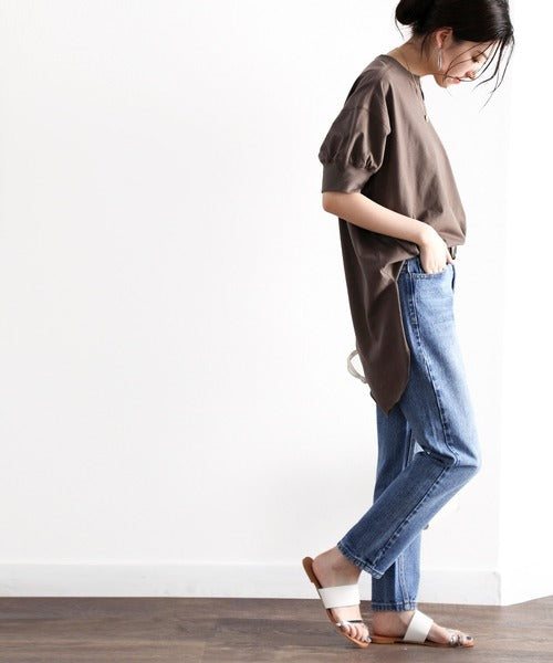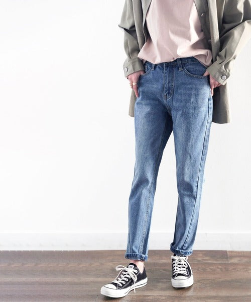 春夏は裾を折り返して足首を見せるとより細見え効果がありつつ、抜け感がでておすすめです。