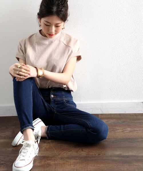すっきりした印象のスキニーなので、ワントーンコーデにしてもメリハリの出る一着です。