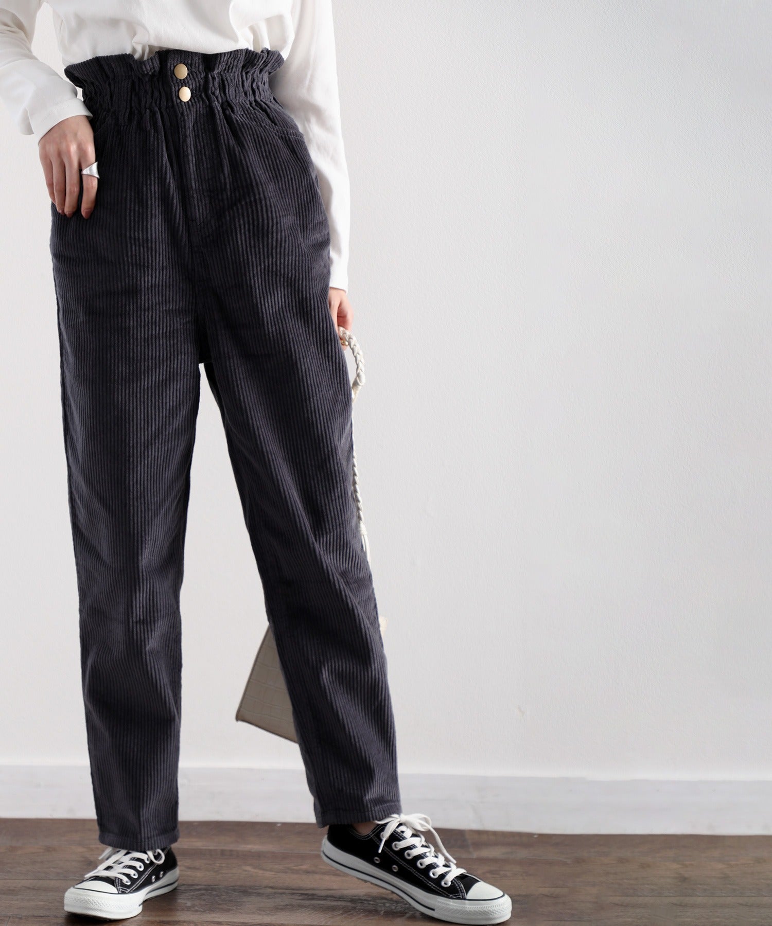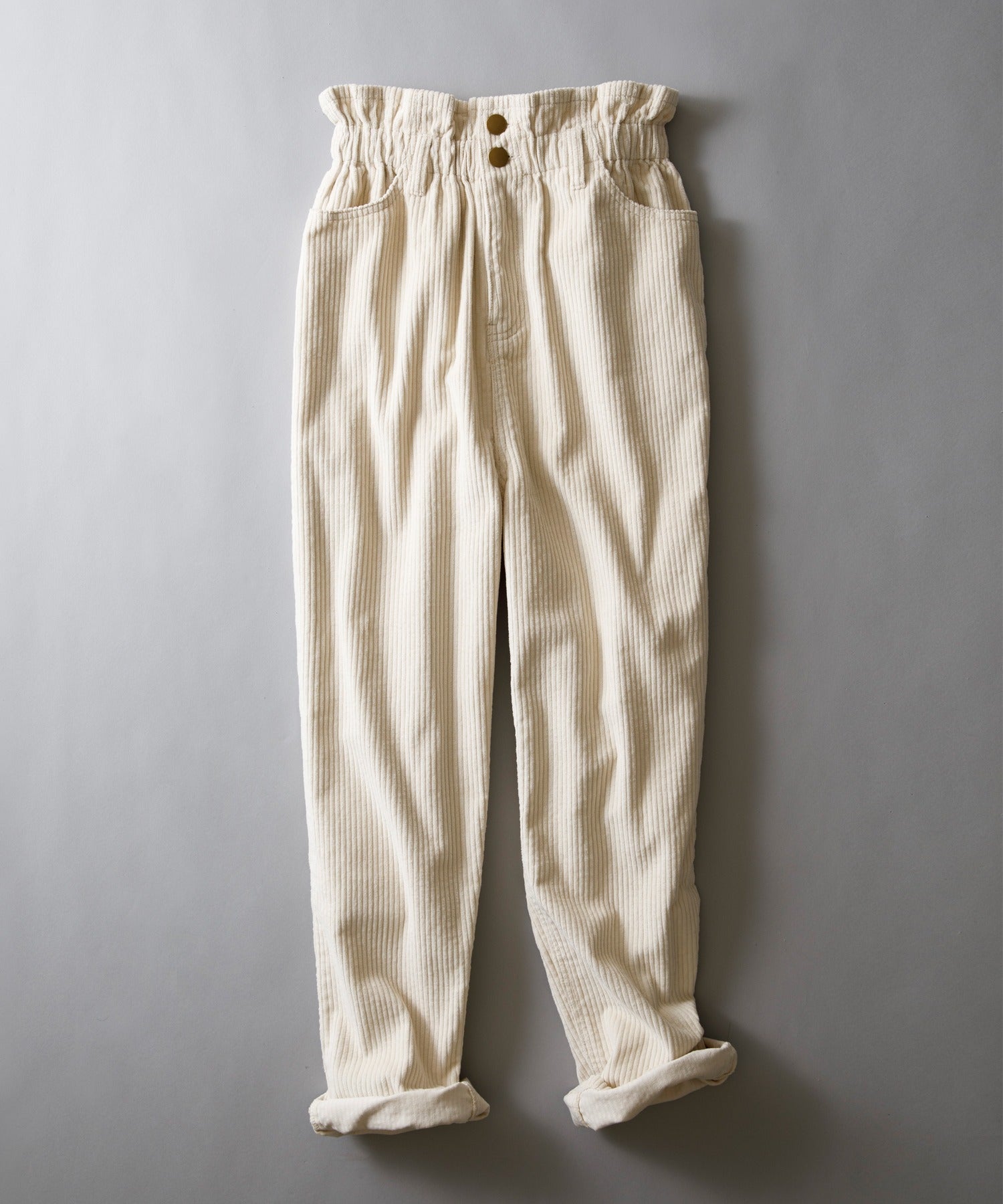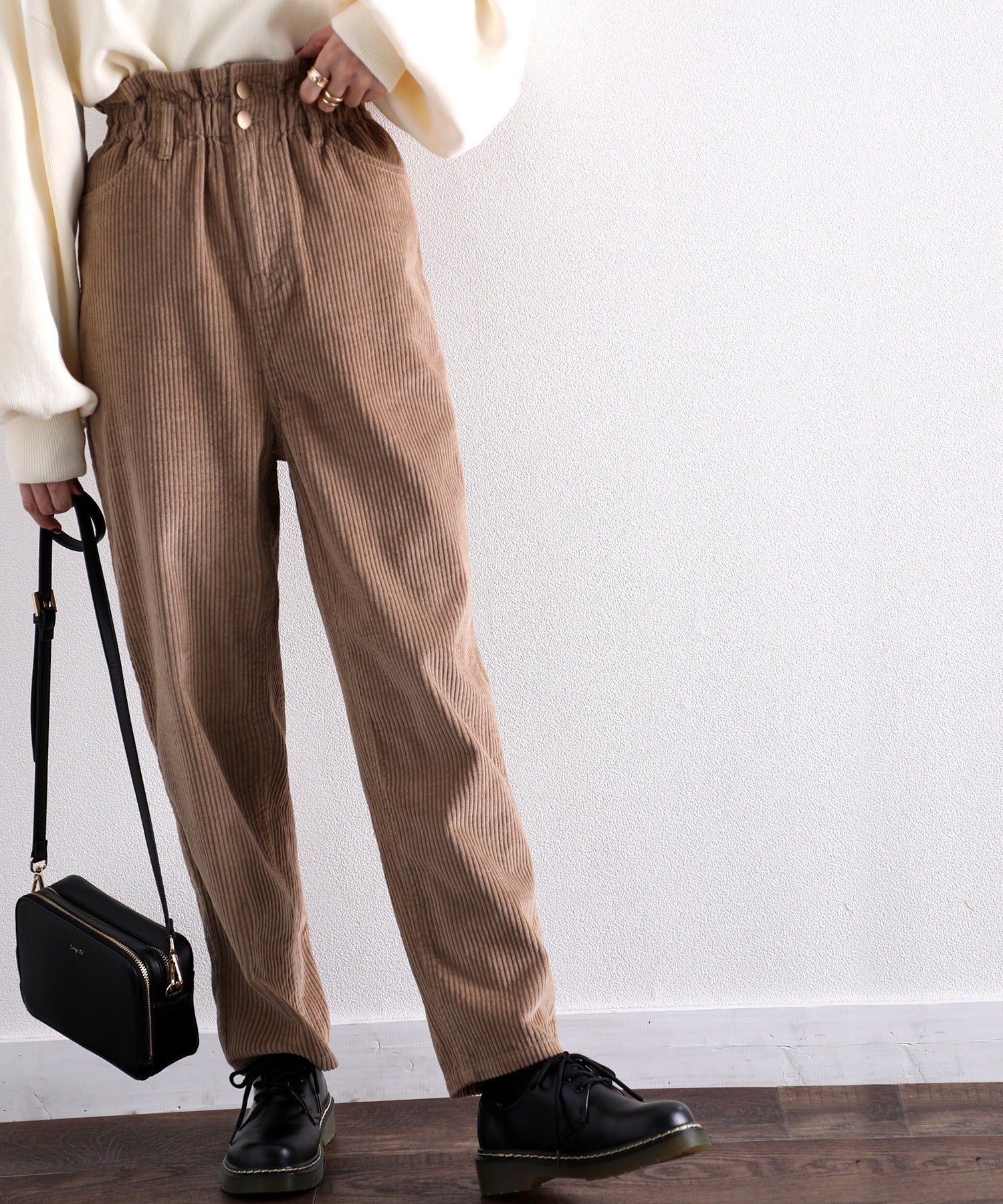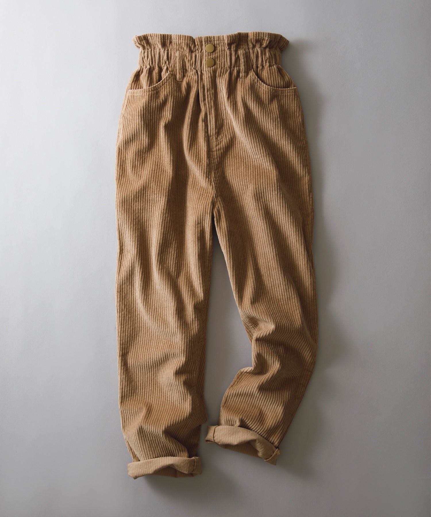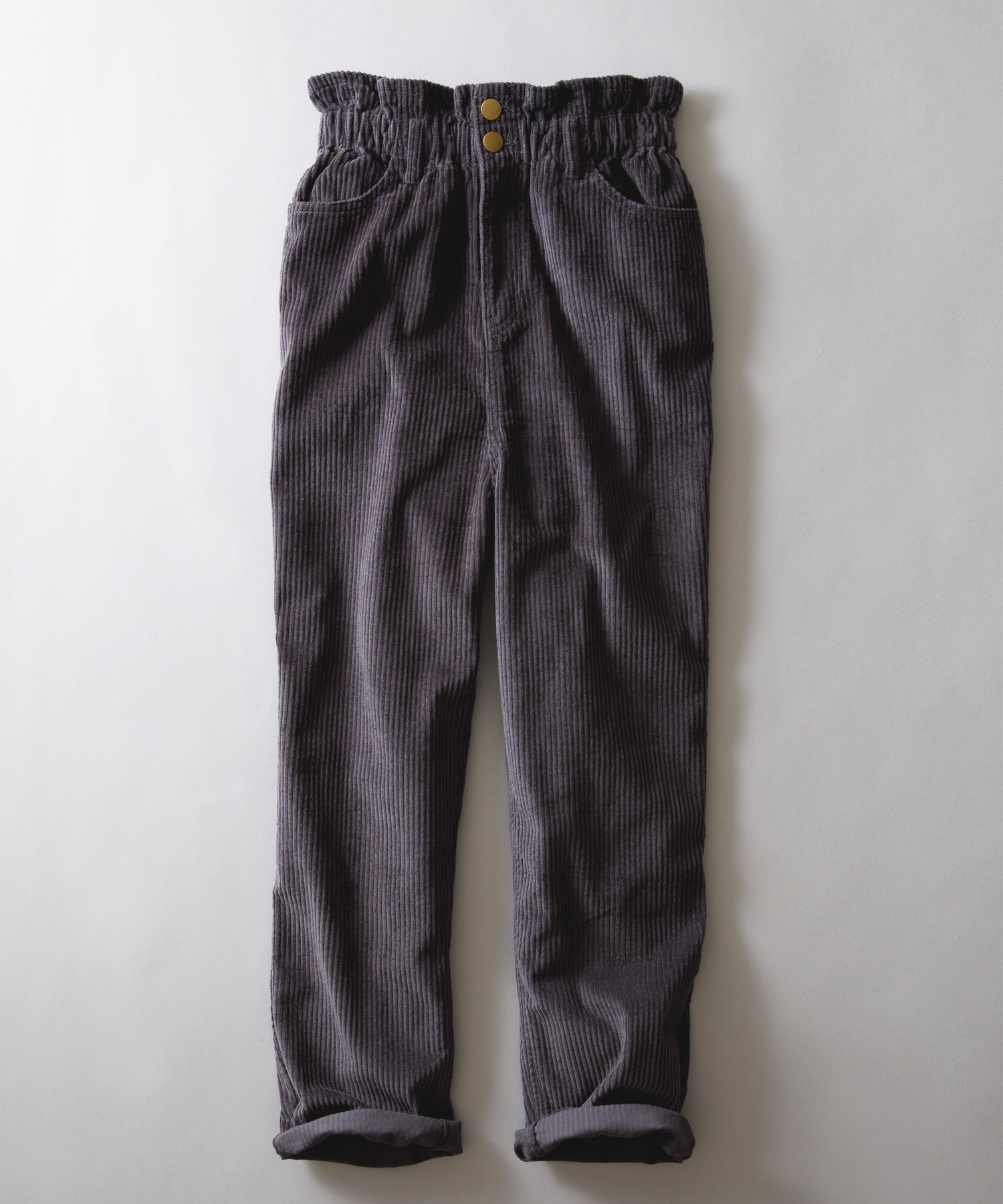 ギャザーウエストコーデュロイ無地ハイウエストテーパードパンツ(フルレングス) elf073