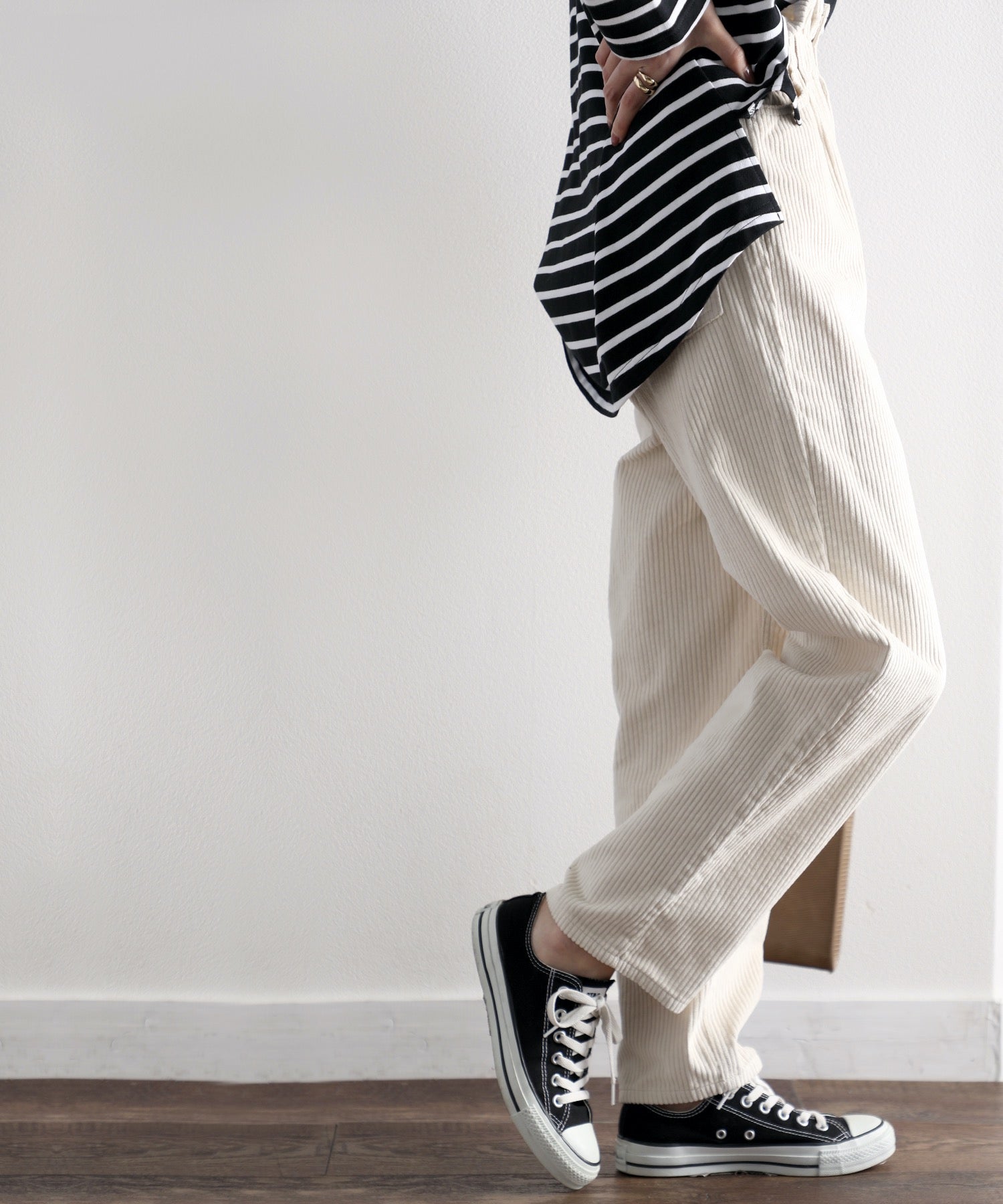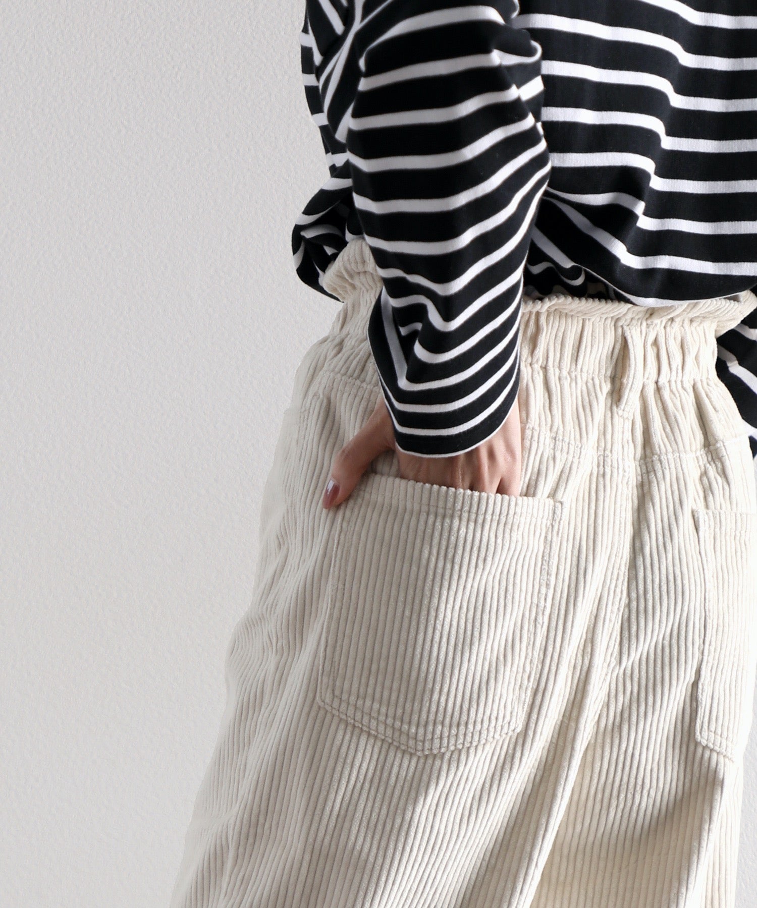 コットン100%で肌にも優しい着心地のコーデュロイ素材パンツ。