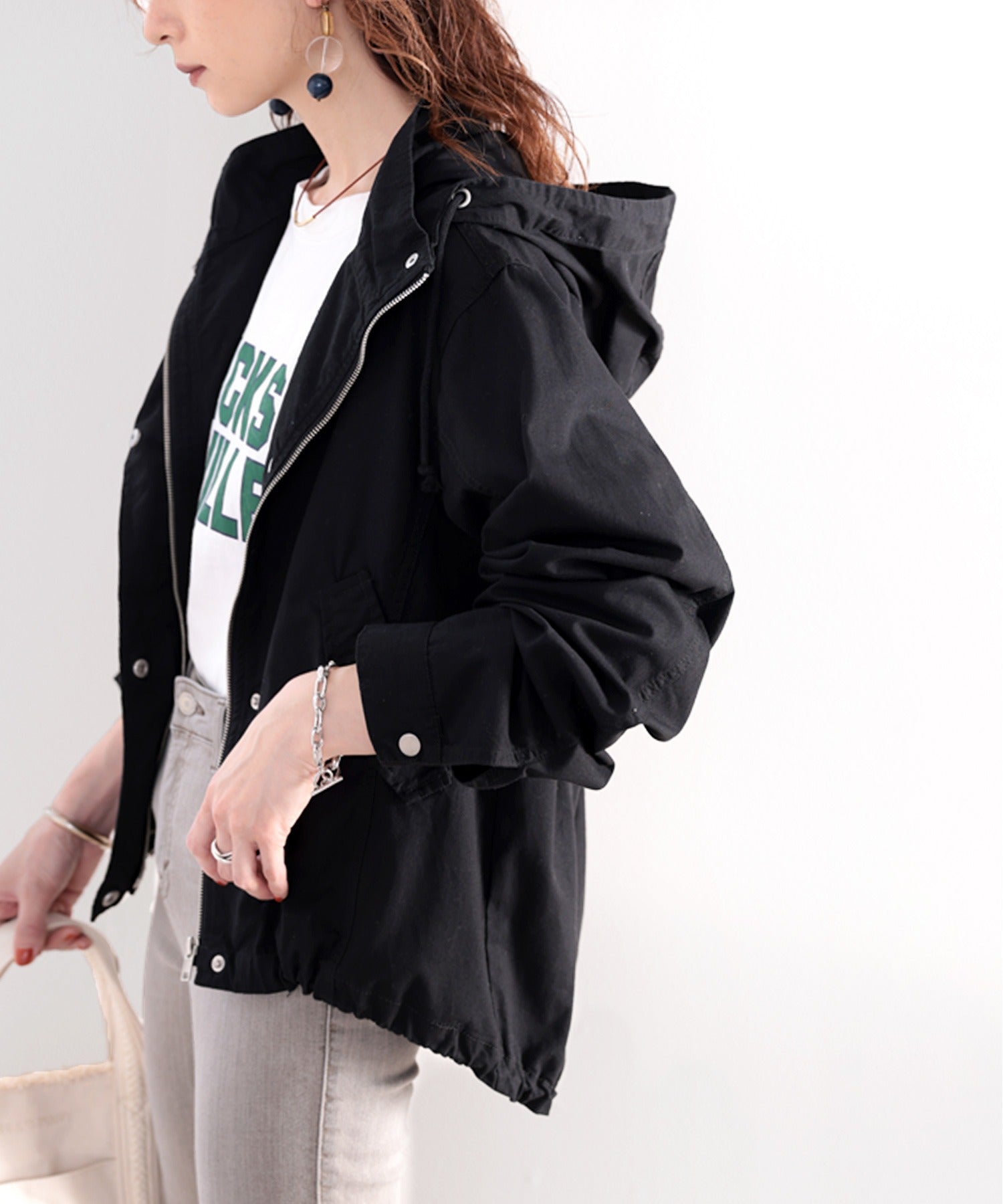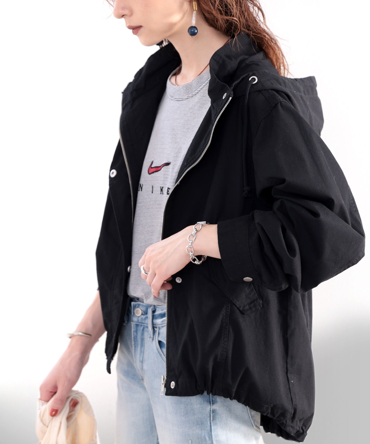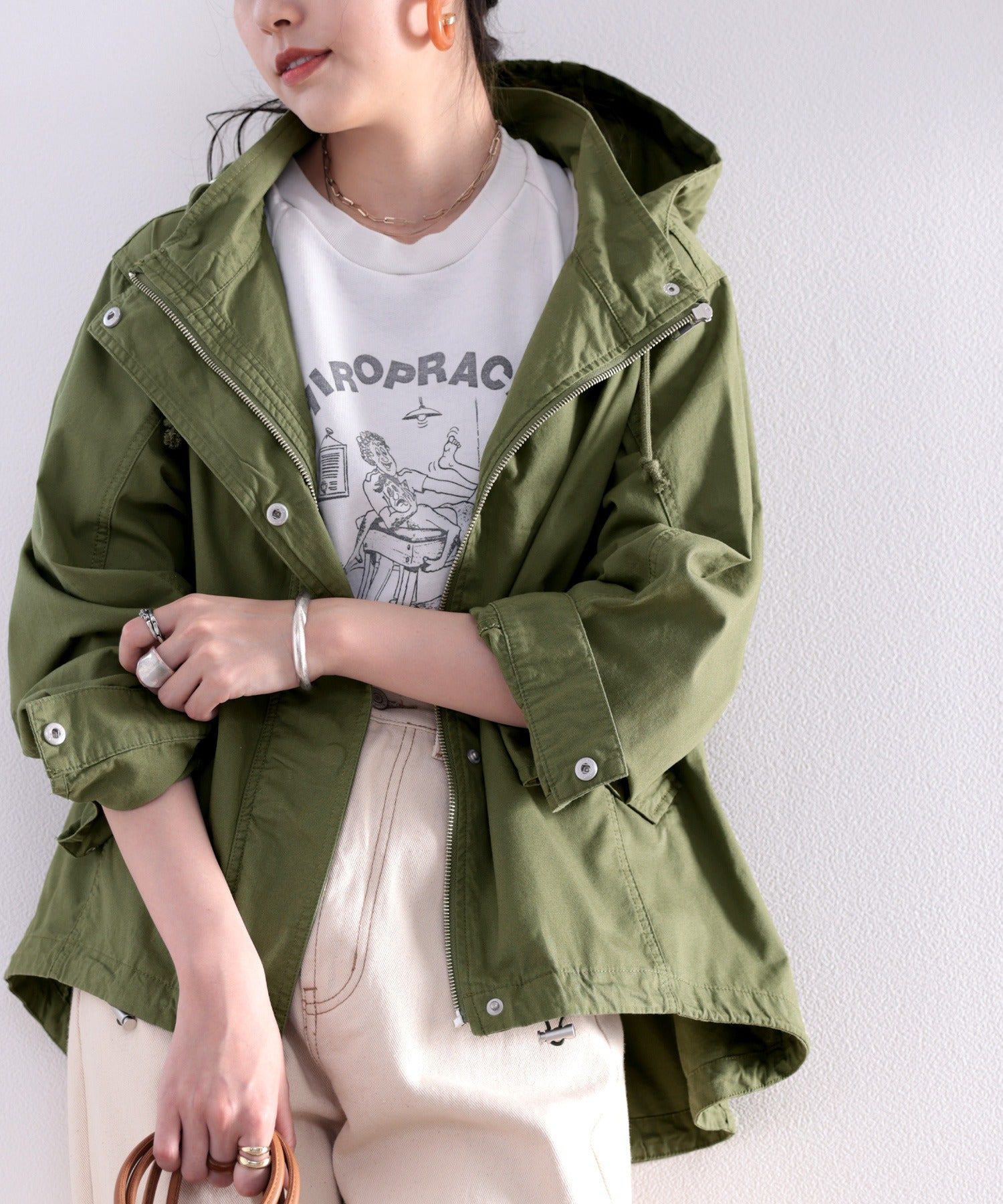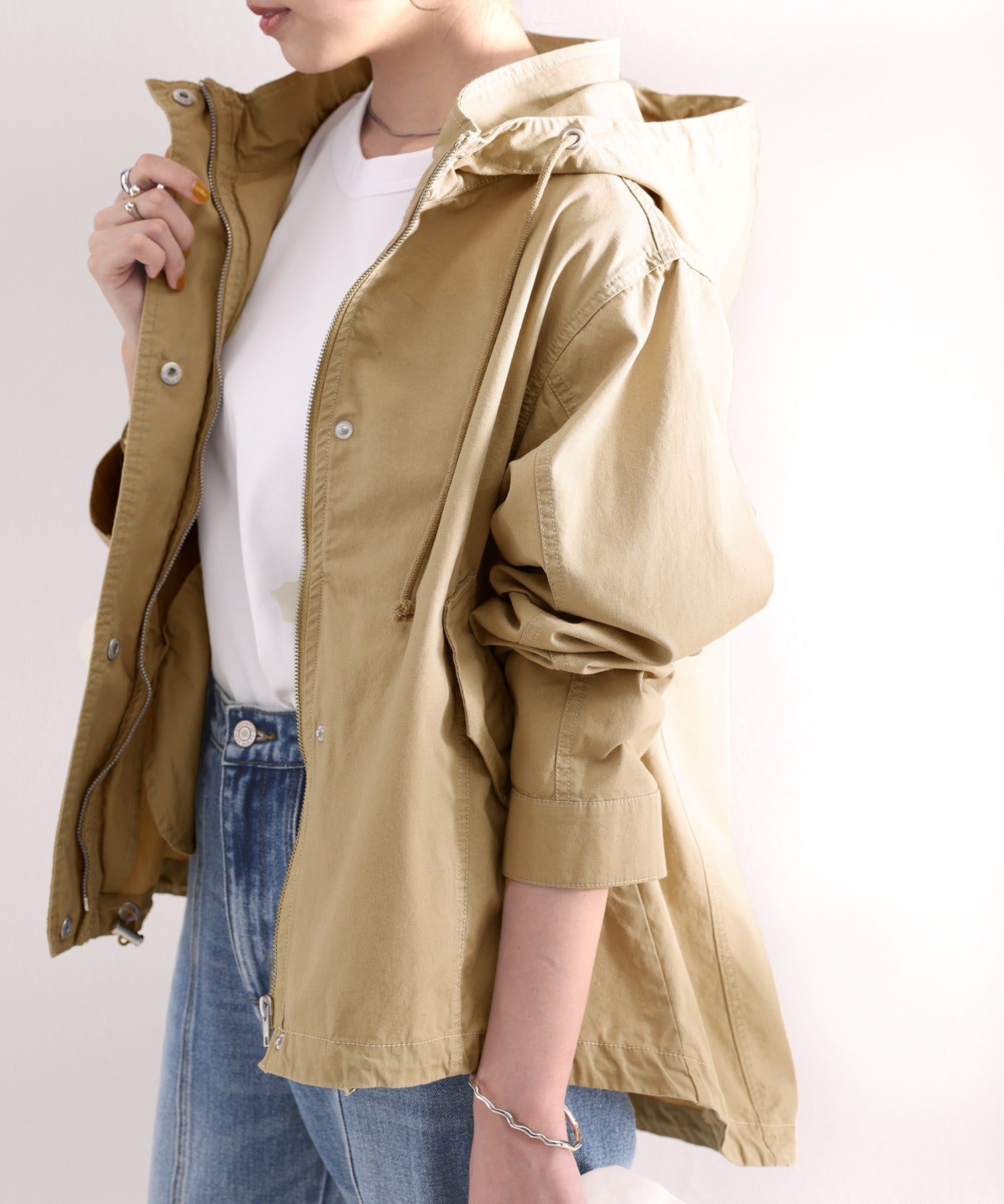 さらっと羽織れる。ラウンドヘムマウンテンパーカー elf074