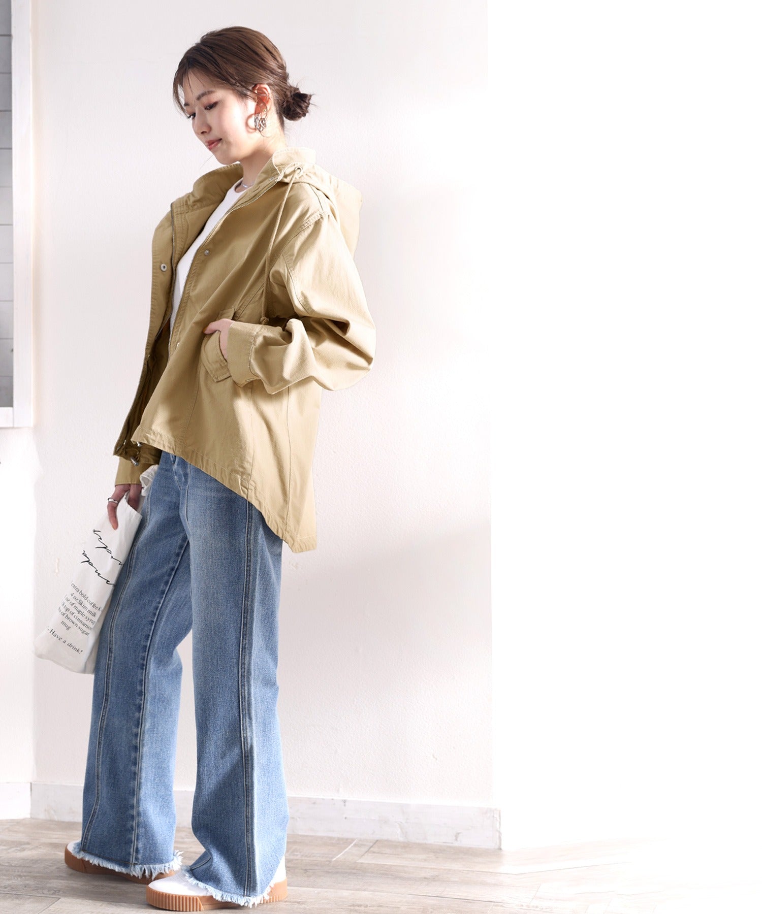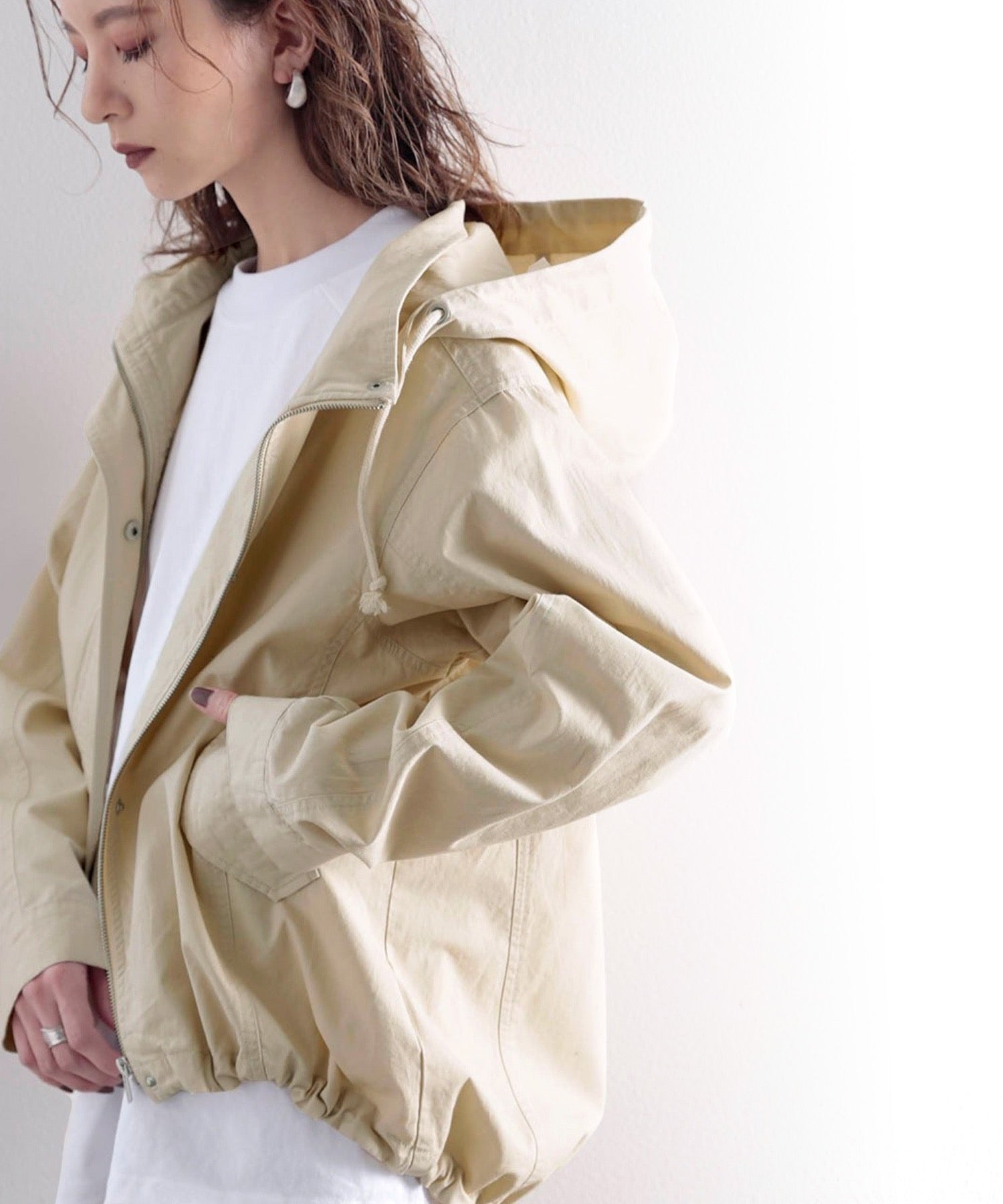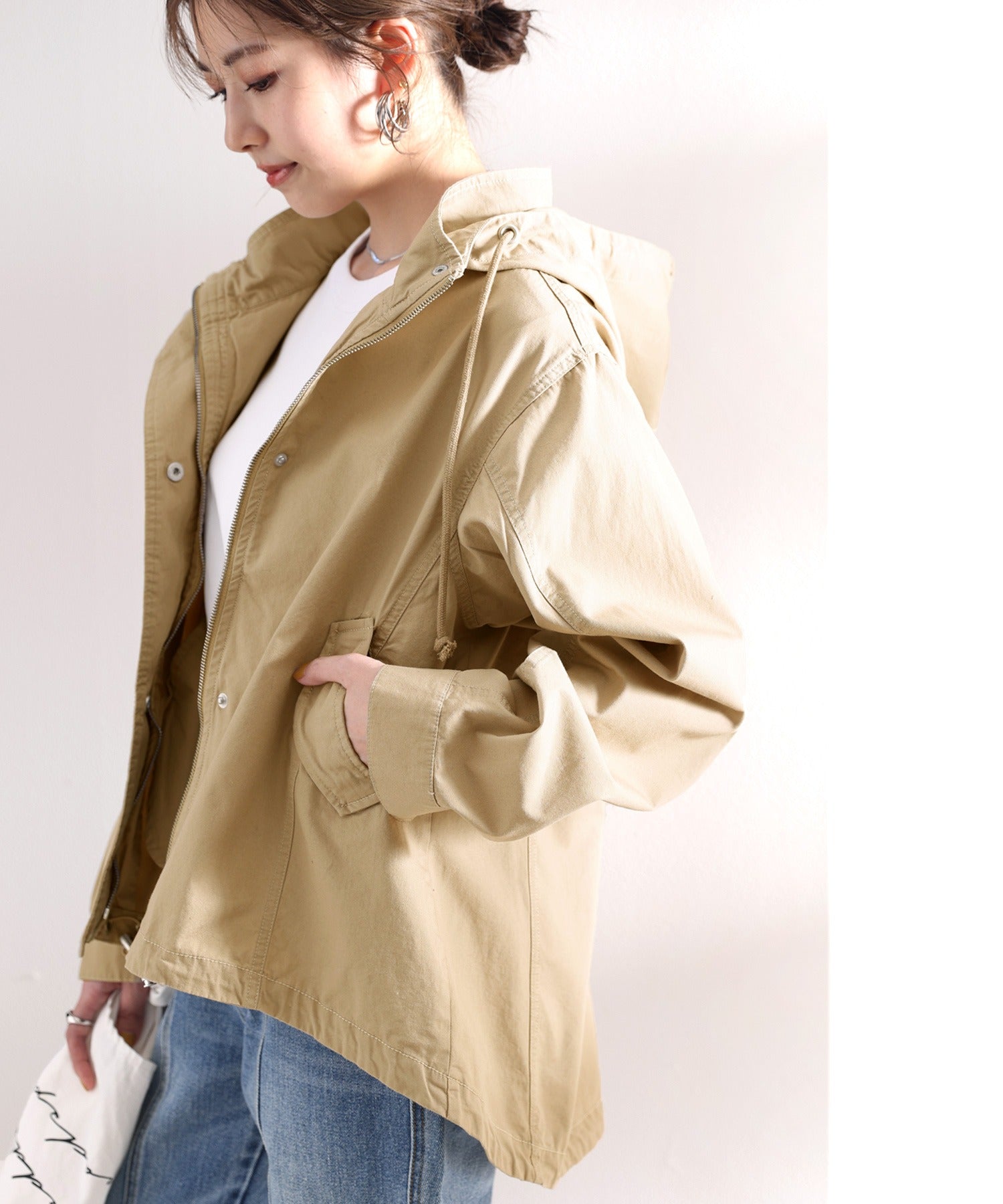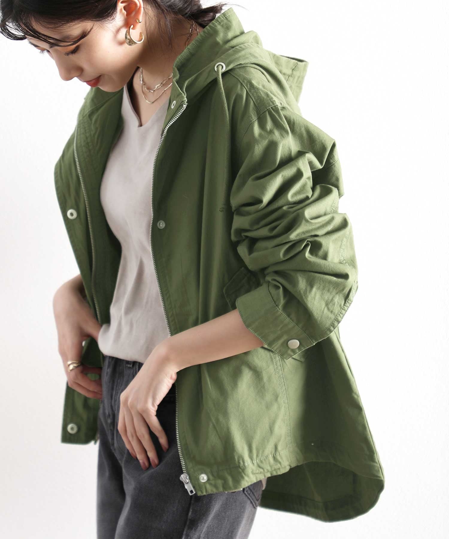 さらっと羽織れる。ラウンドヘムマウンテンパーカー elf074