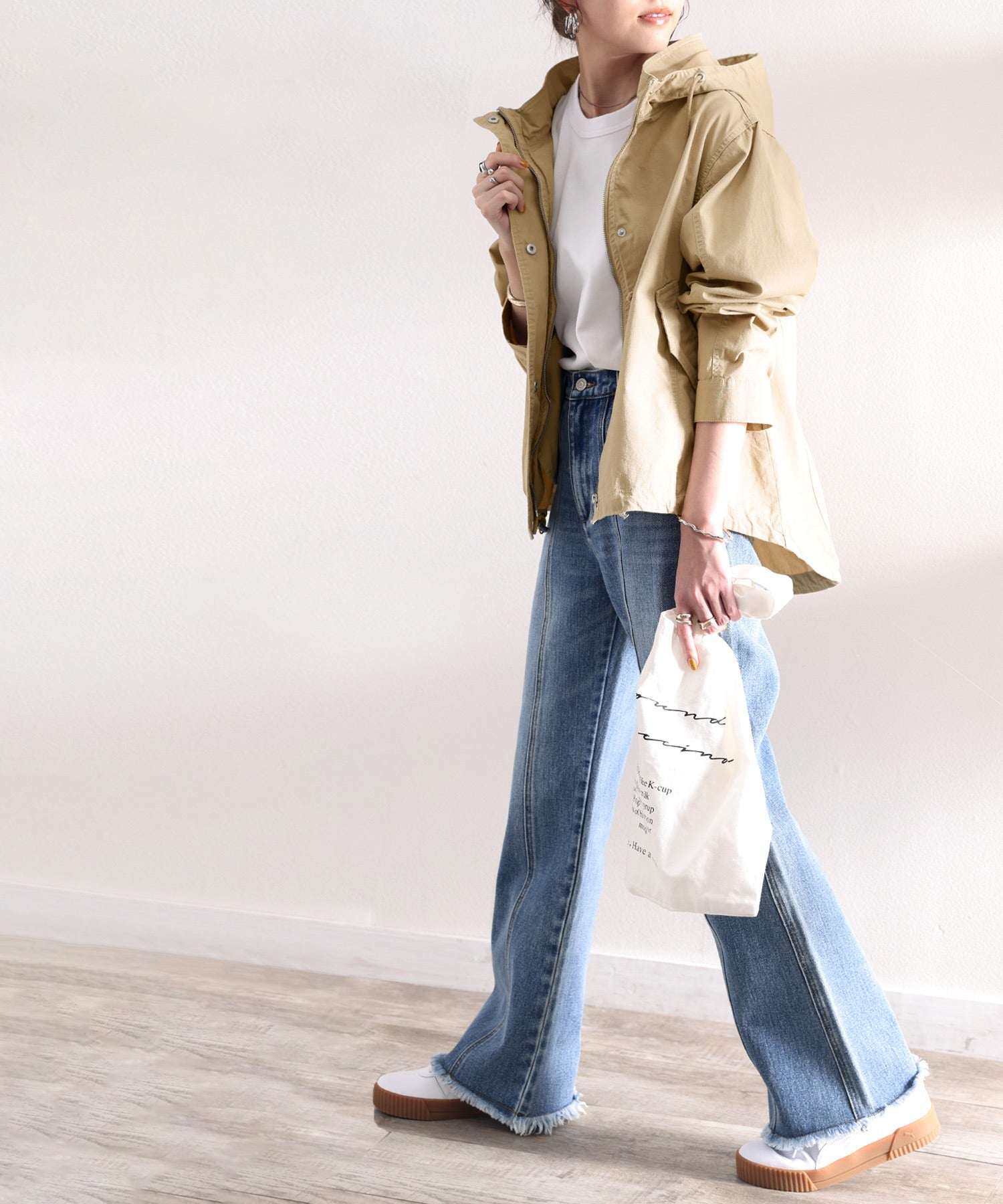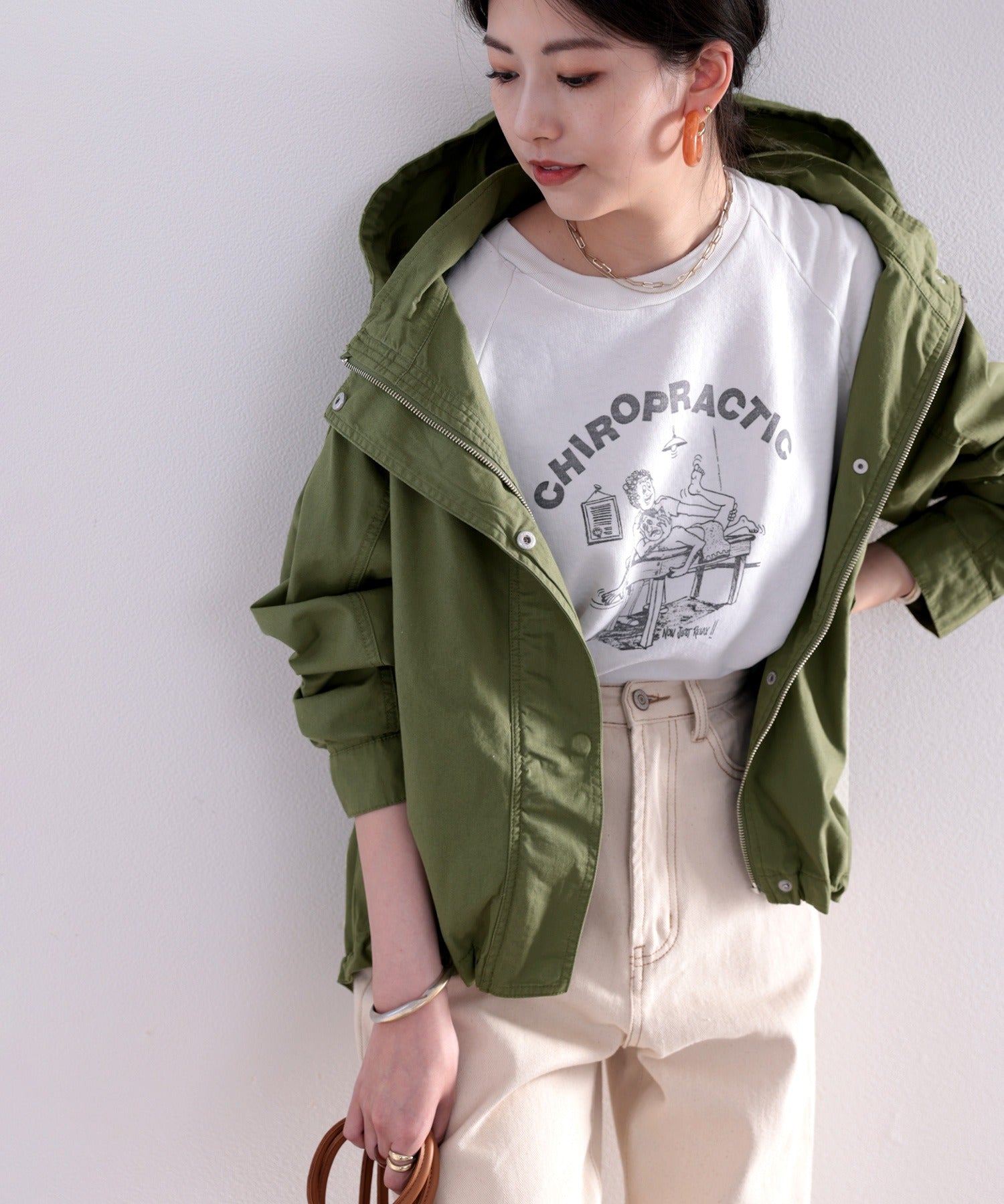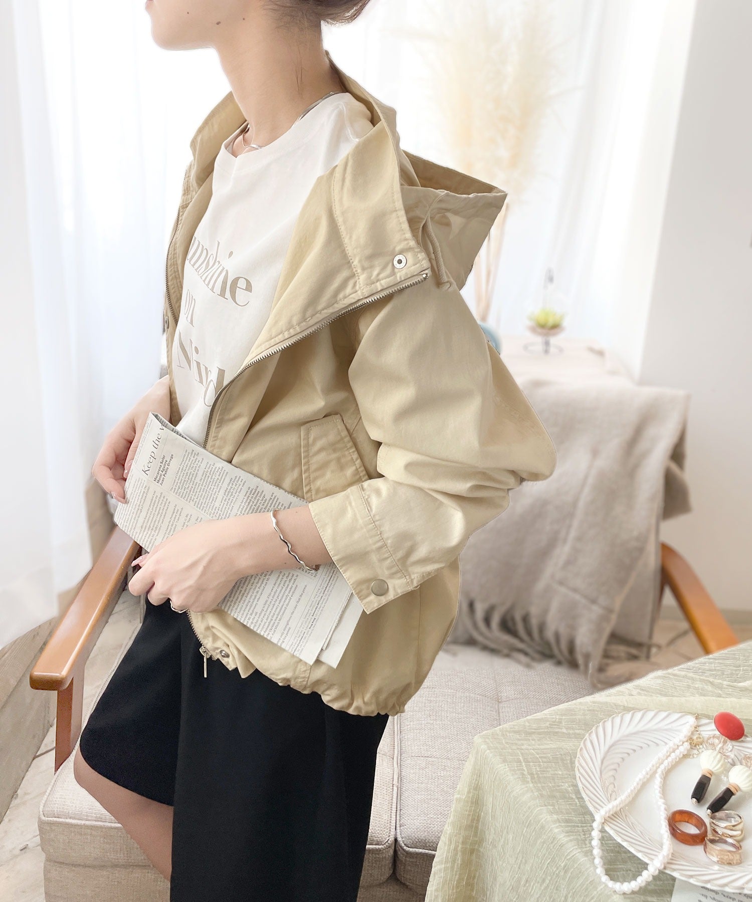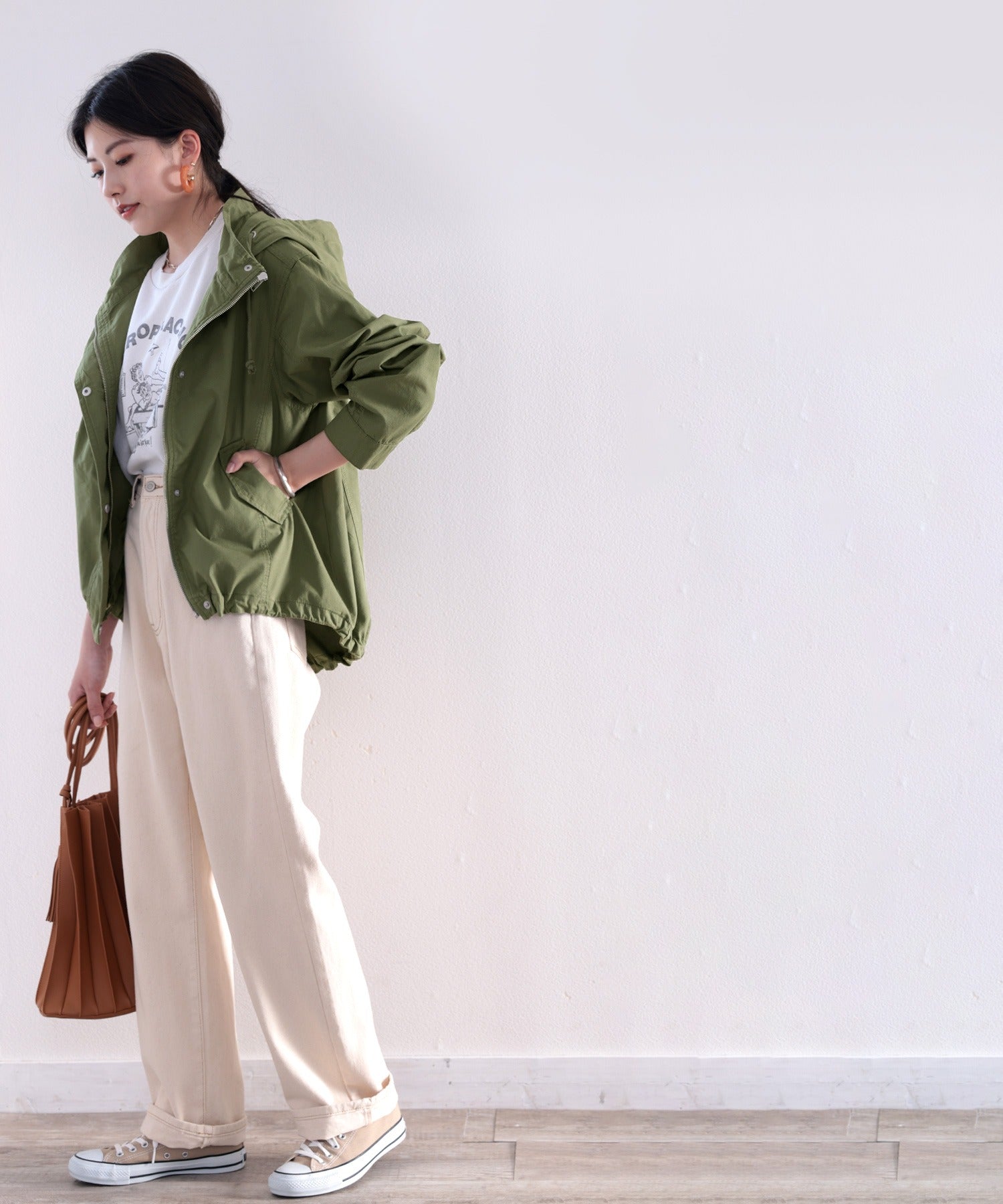 さらっと羽織れる。ラウンドヘムマウンテンパーカー elf074
