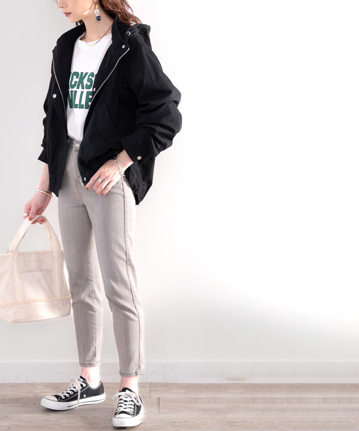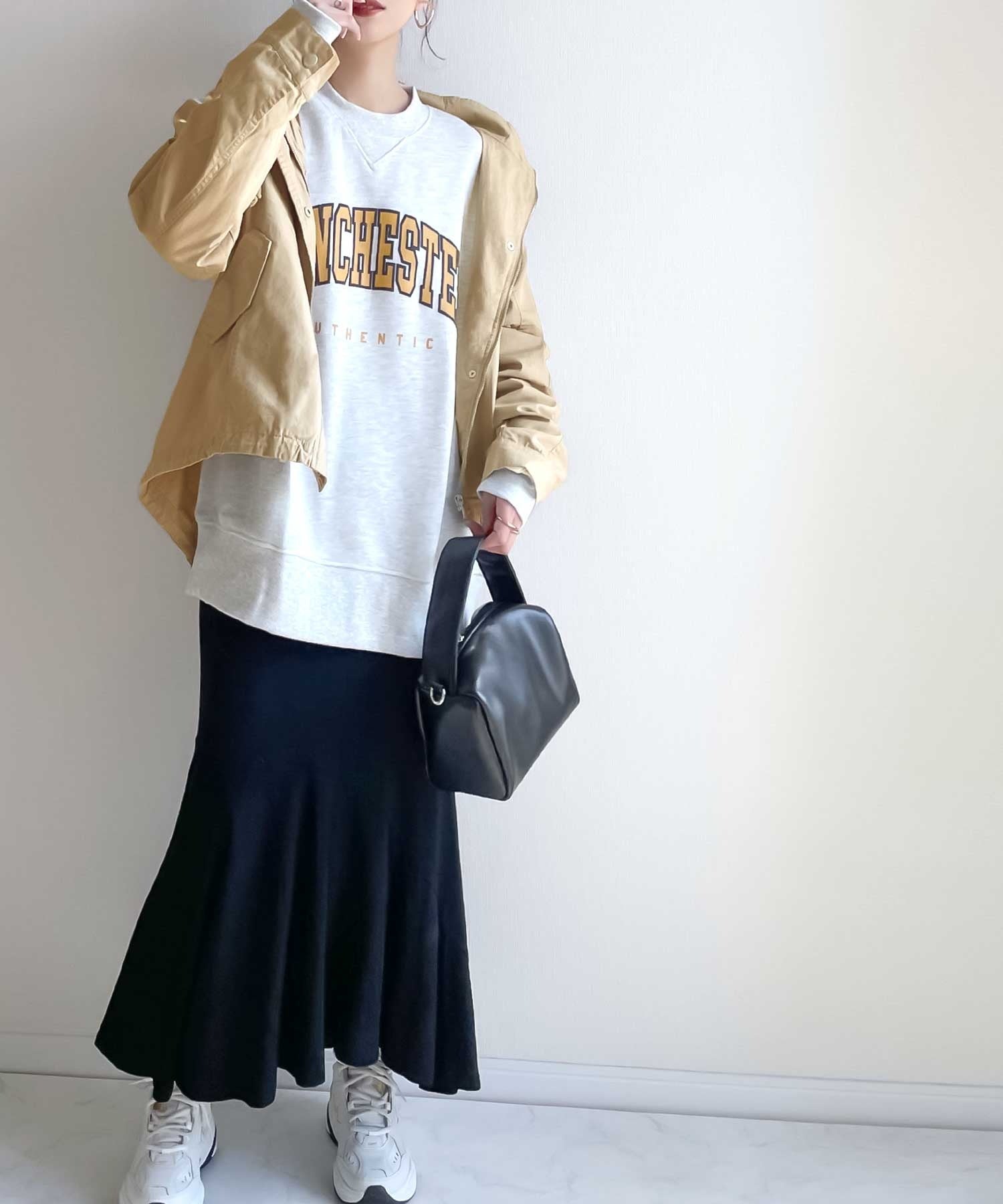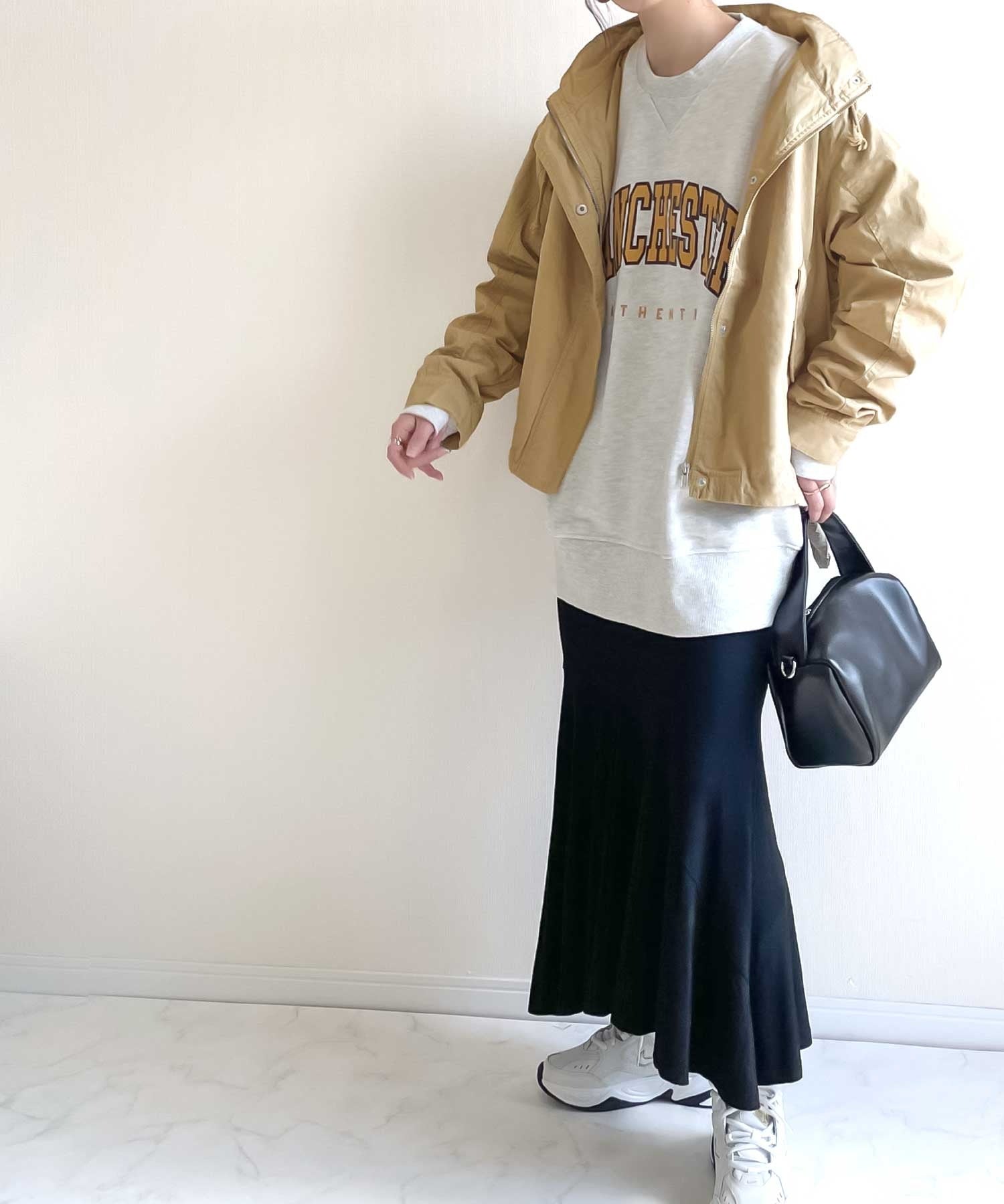 すっきりと見える長すぎない丈感で、どんなボトムスとも合わせやすい。