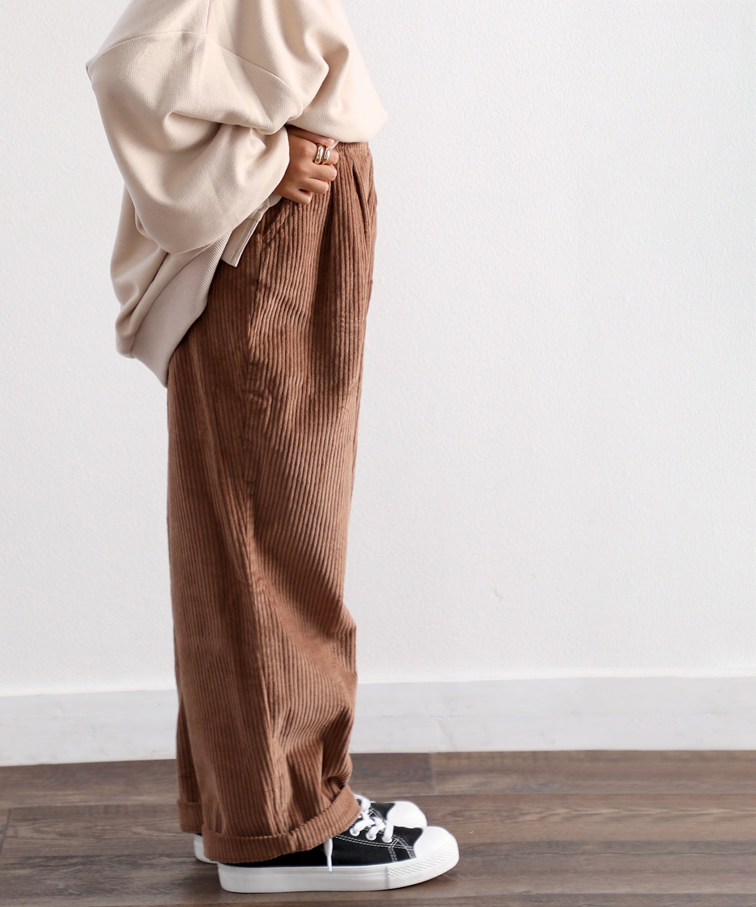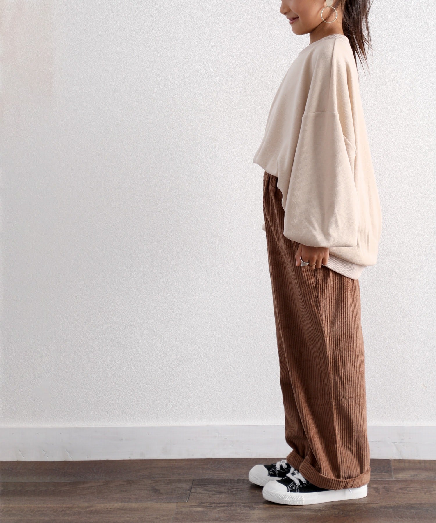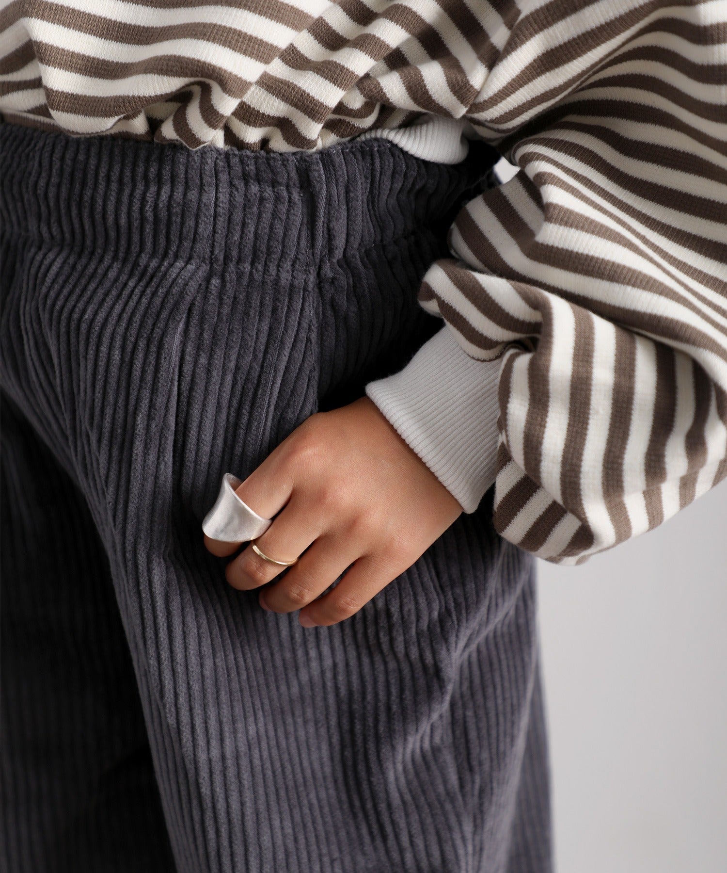 コーデュロイはやや太めのラインでふんわり優しい印象です。