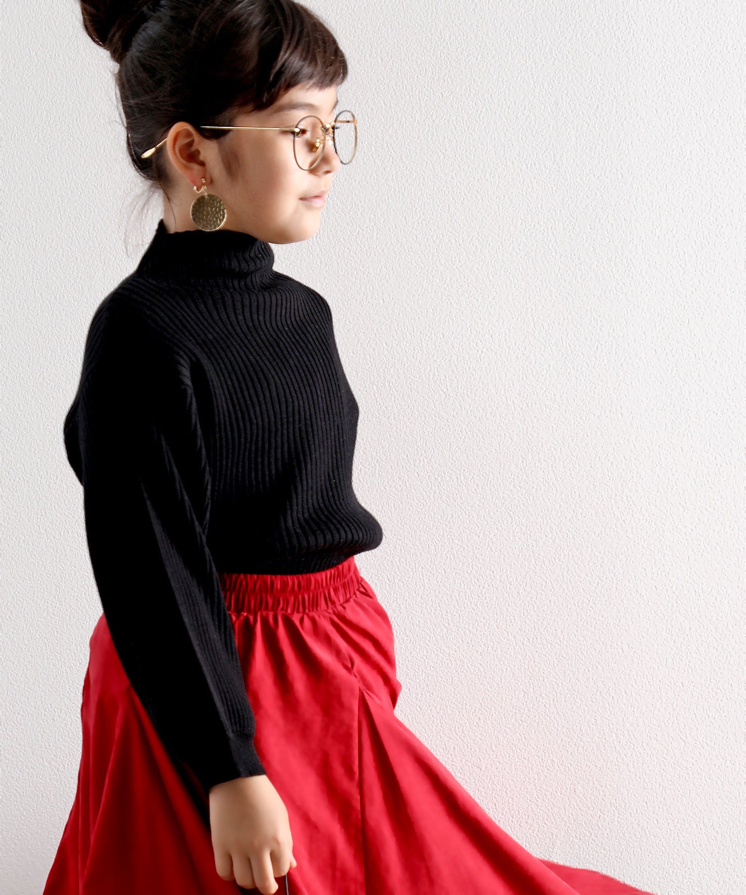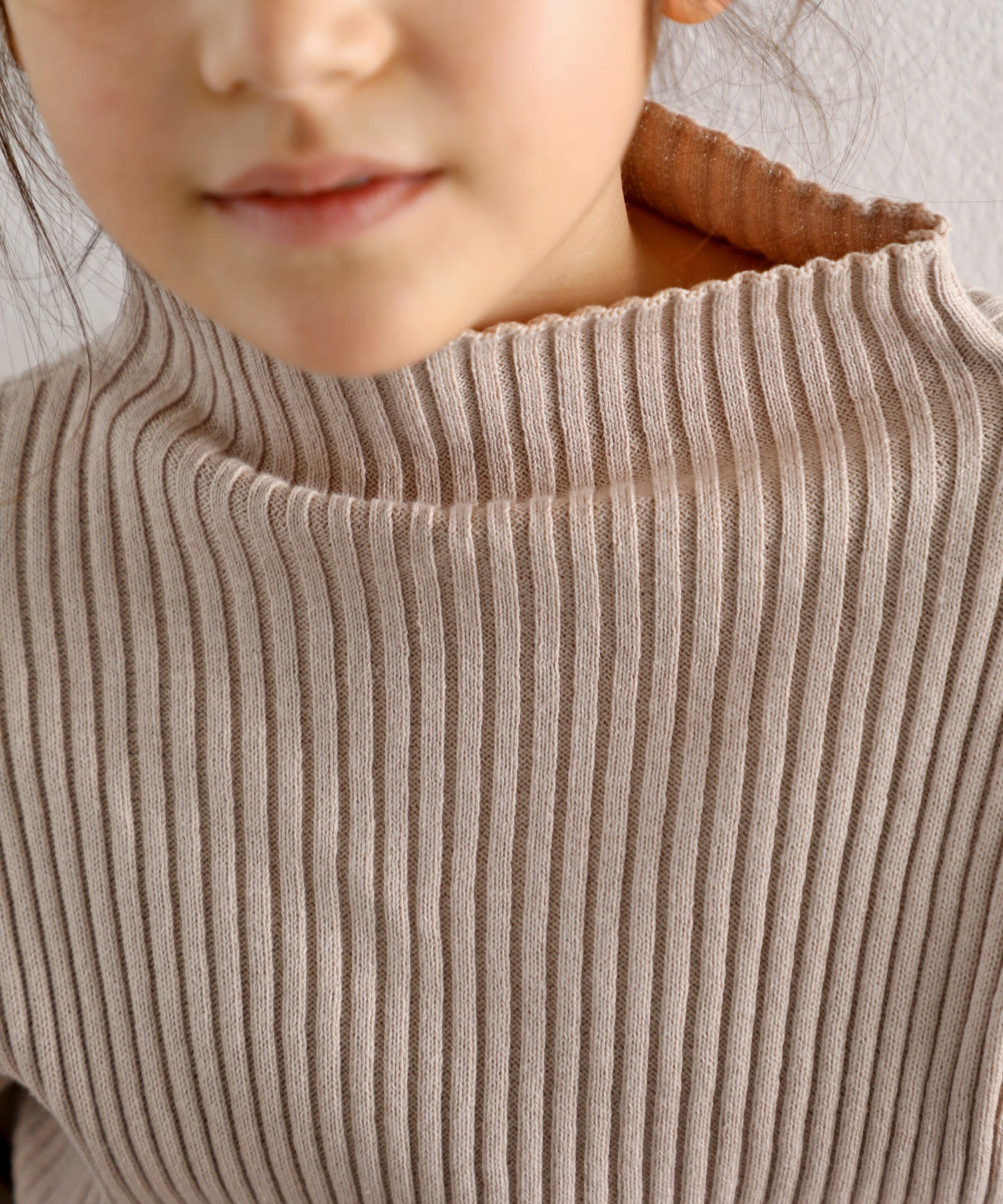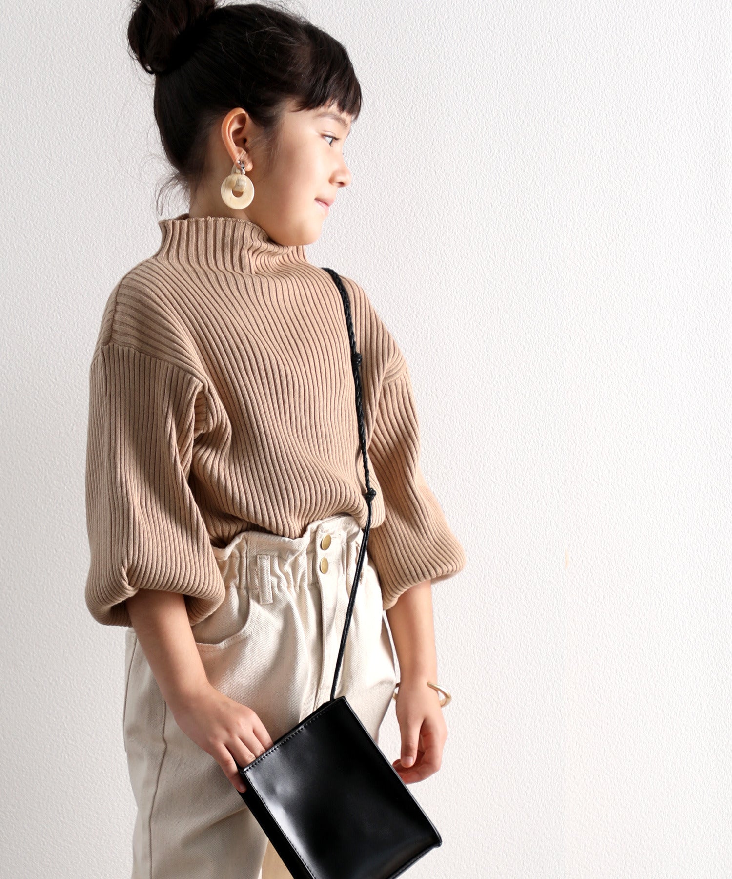 【family+】【親子コーデ】キッズ ワイドスリーブハイネックミドル丈コットンリブニット(長袖) kcl7004