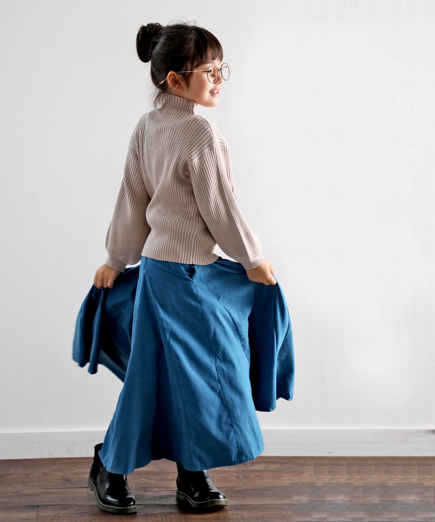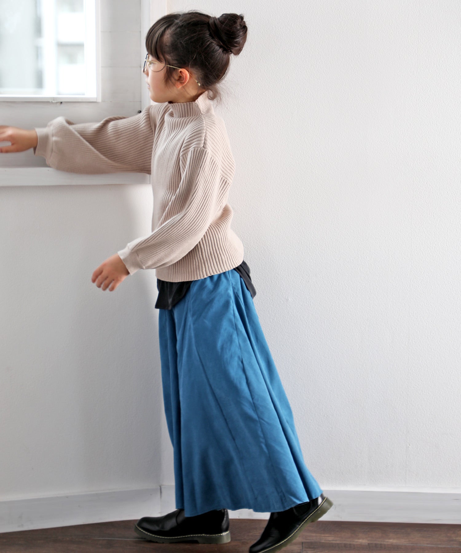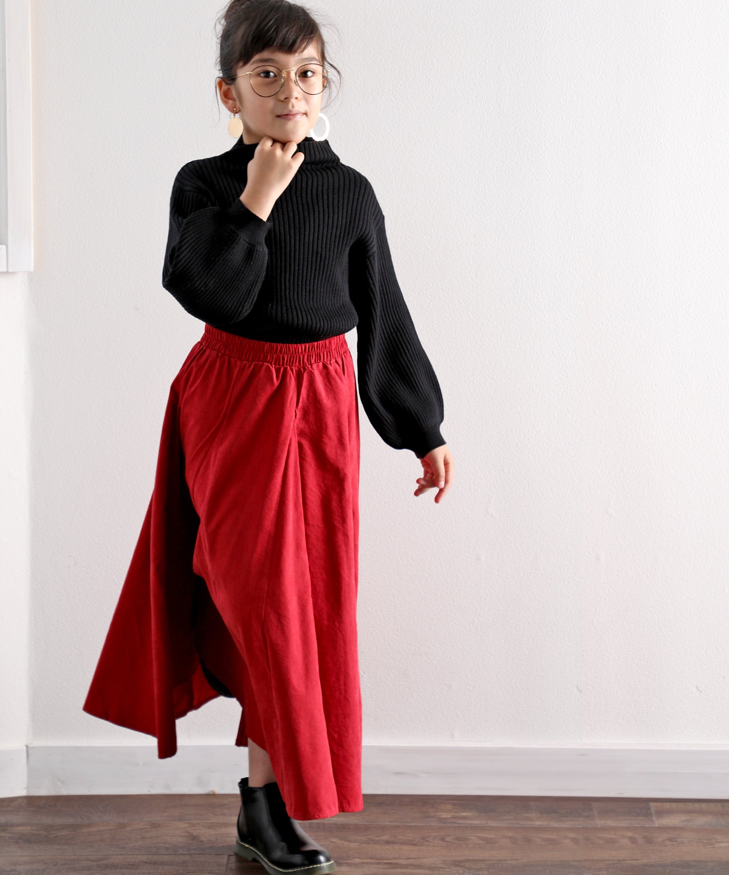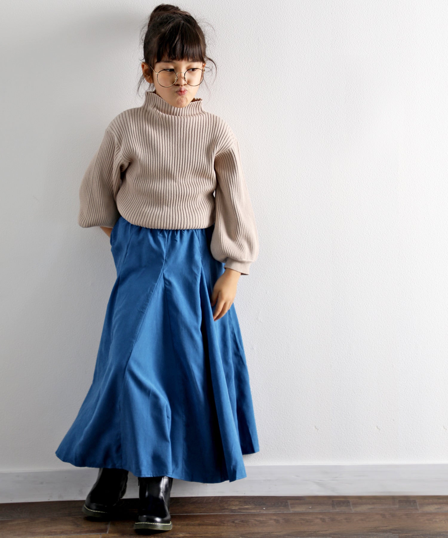 【family+】【親子コーデ】キッズ ワイドスリーブハイネックミドル丈コットンリブニット(長袖) kcl7004