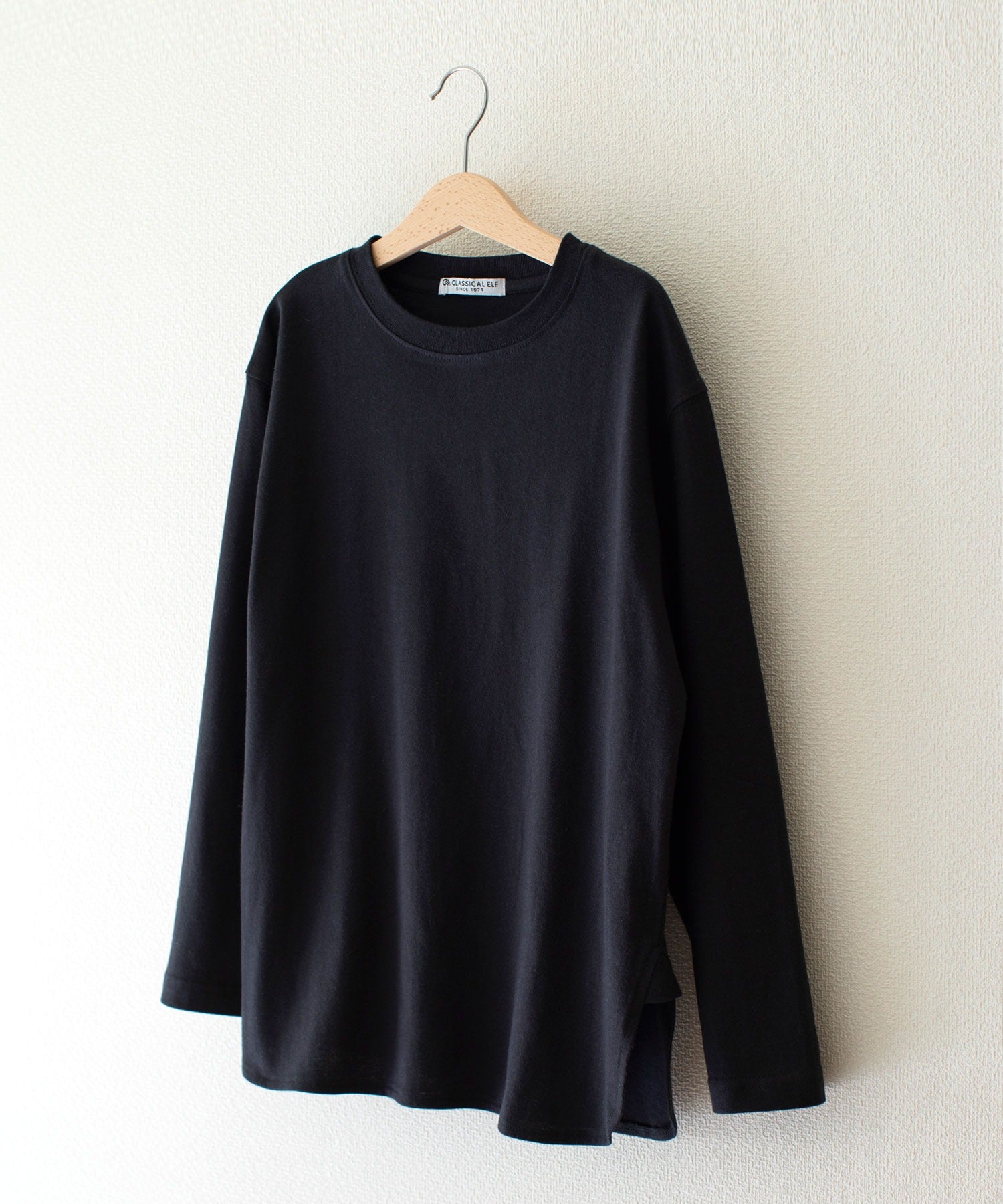 袖はややドルマン気味になっており、シンプルながらもデザイン性の高いロンTです。