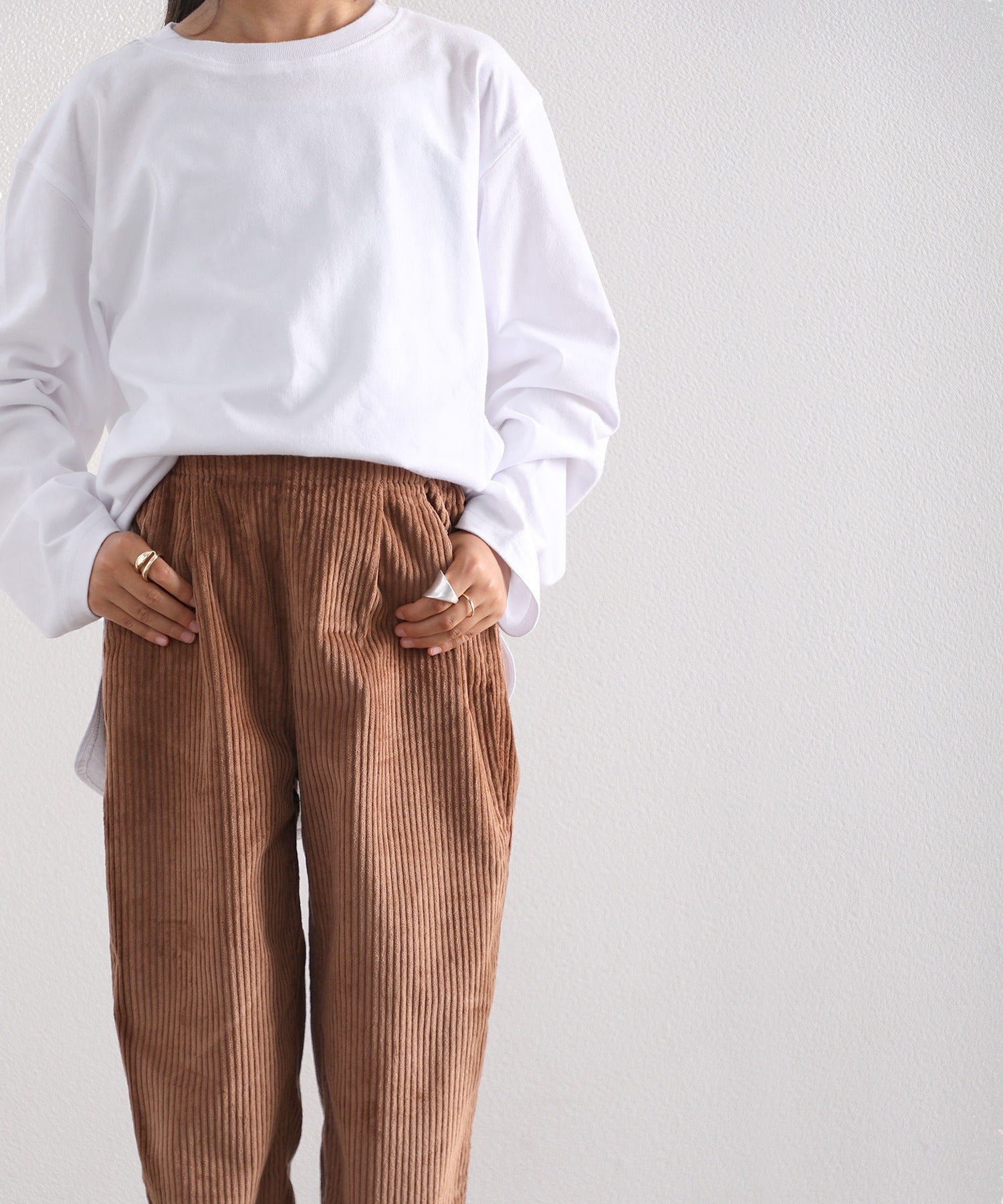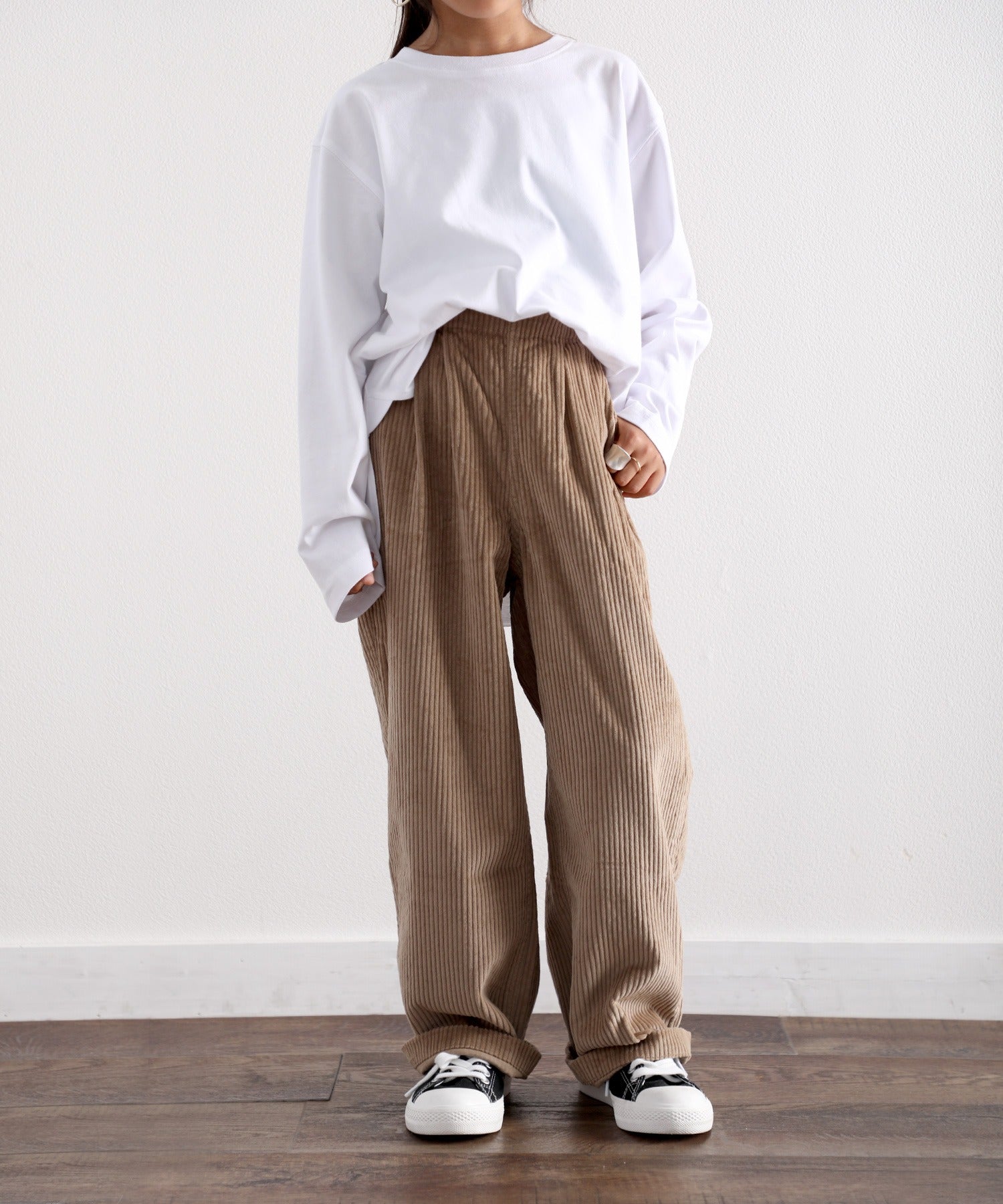 サイドがスッキリして見えるので、ゆるっとしていてももったりした印象になりません。