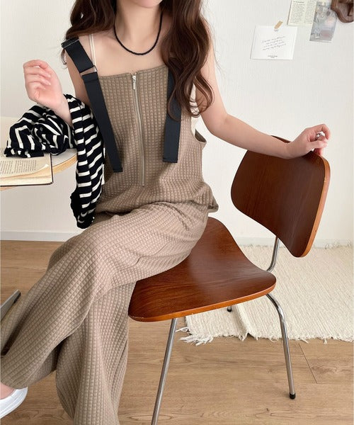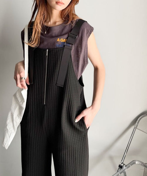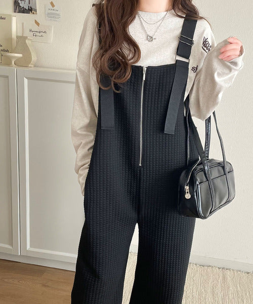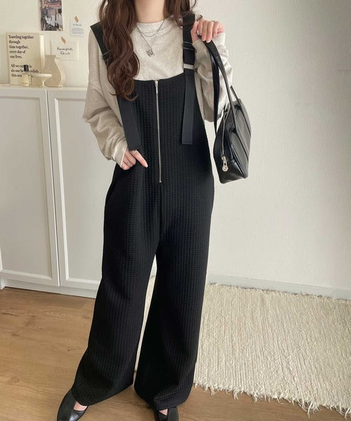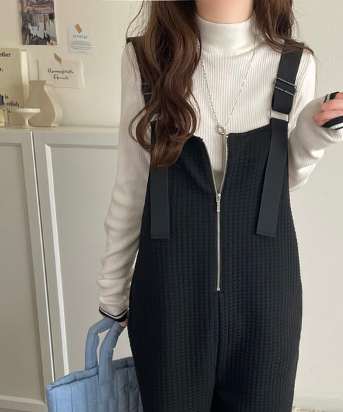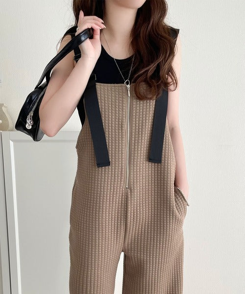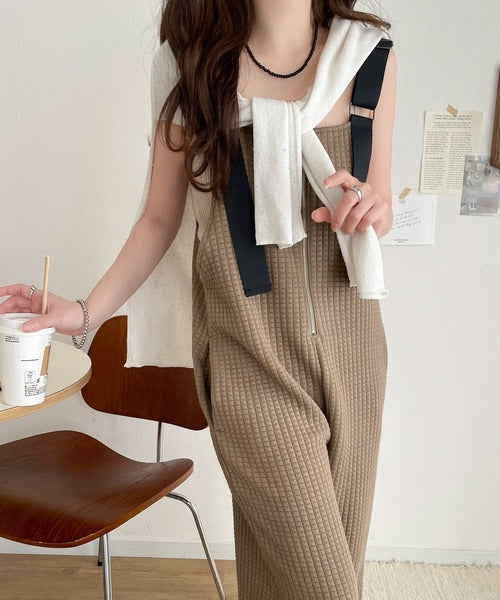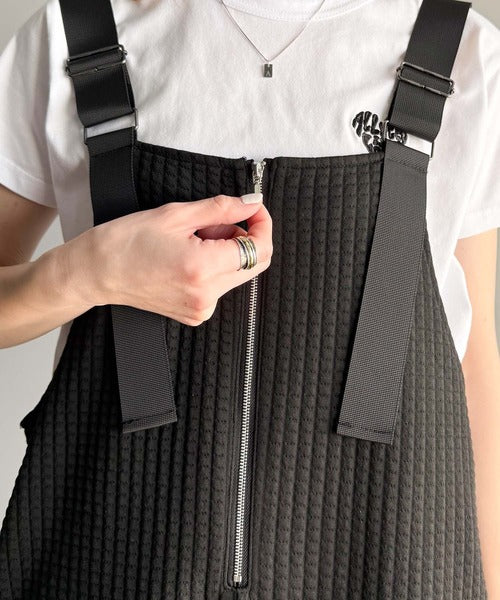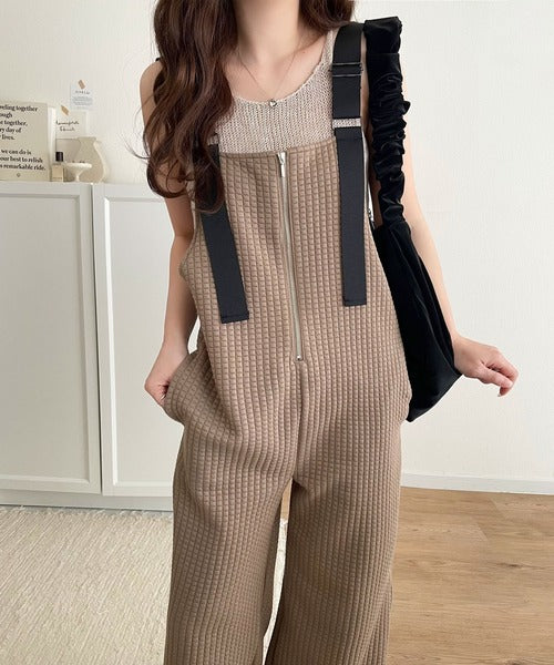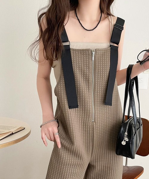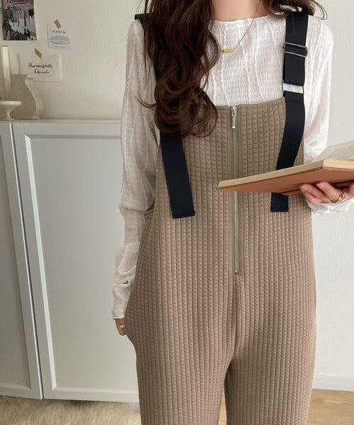 春 夏 のマストハブ!膨れジャガードフロントジップサロペットパンツ ce1010358