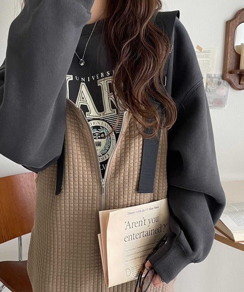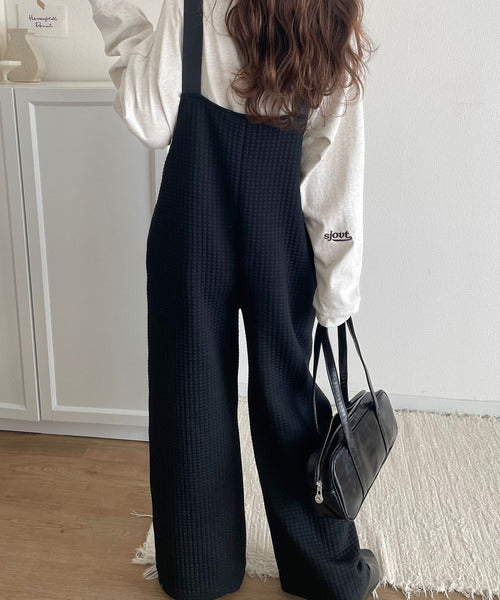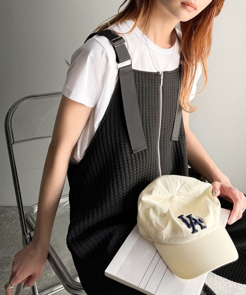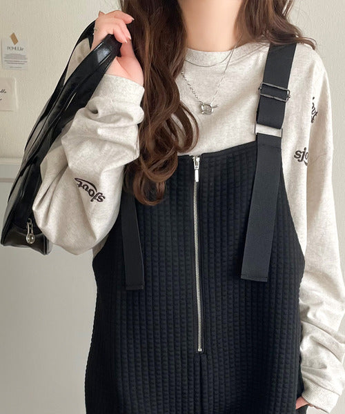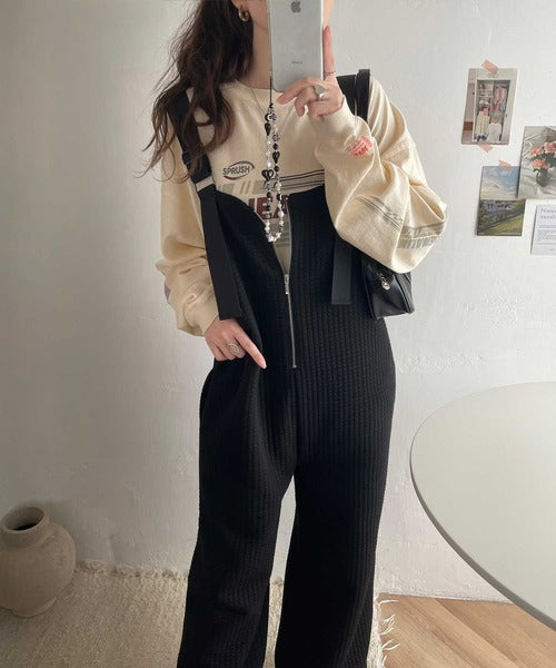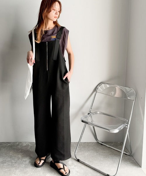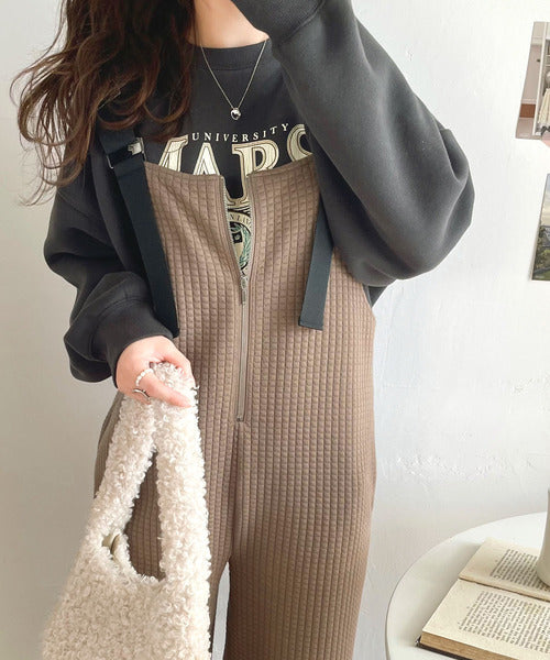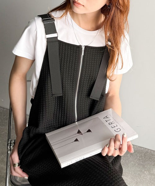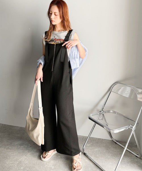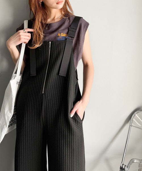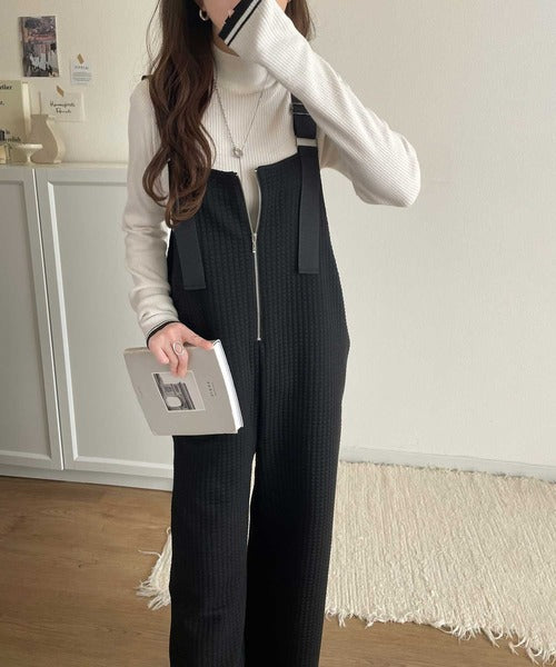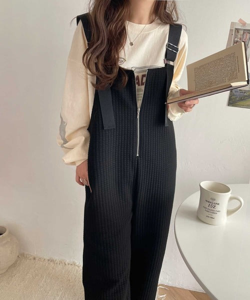 春 夏 のマストハブ!膨れジャガードフロントジップサロペットパンツ ce1010358