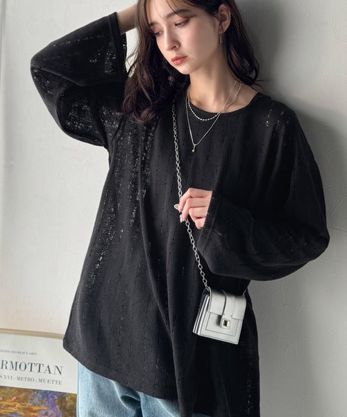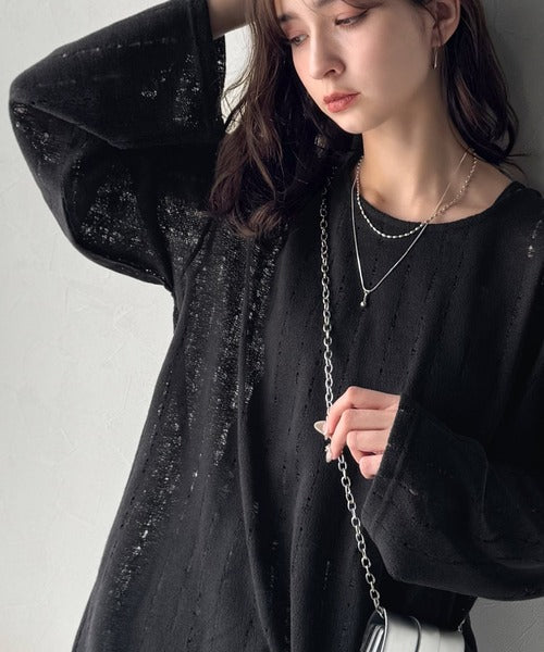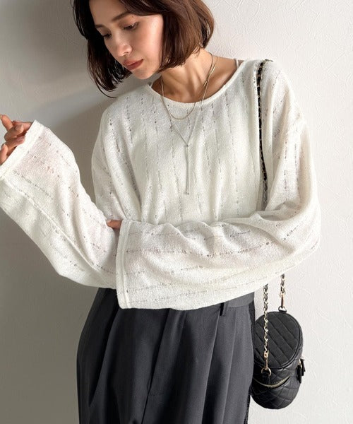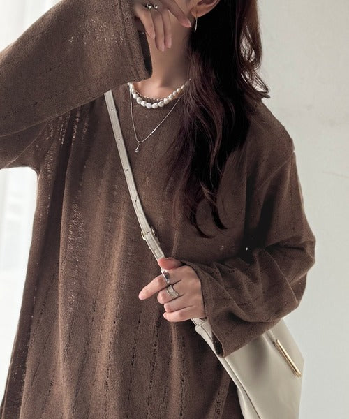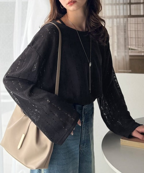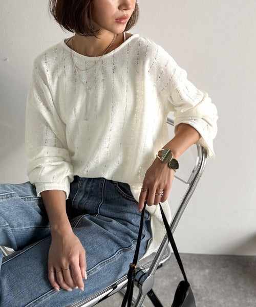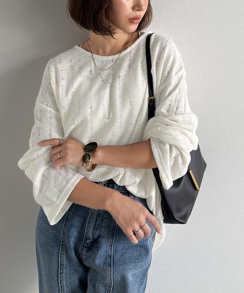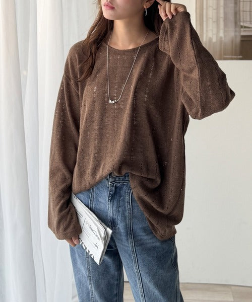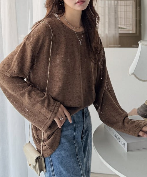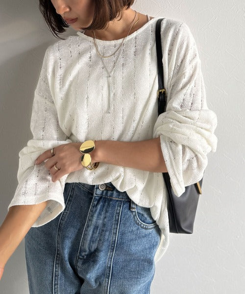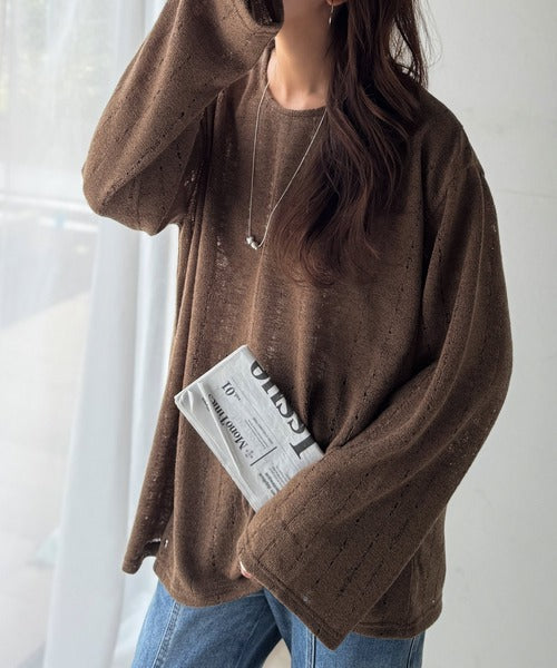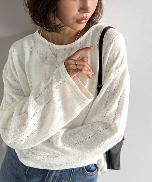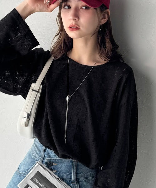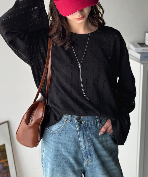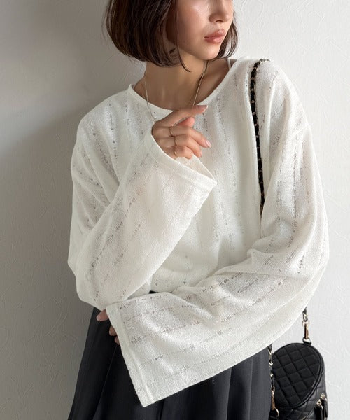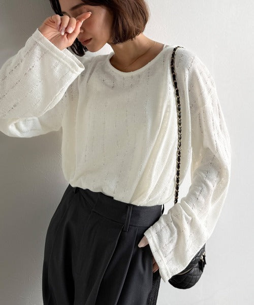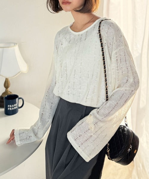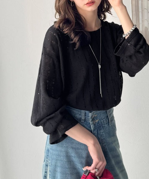 さりげない透け感で魅せる、透かし編みトップス(長袖) ce1010504
